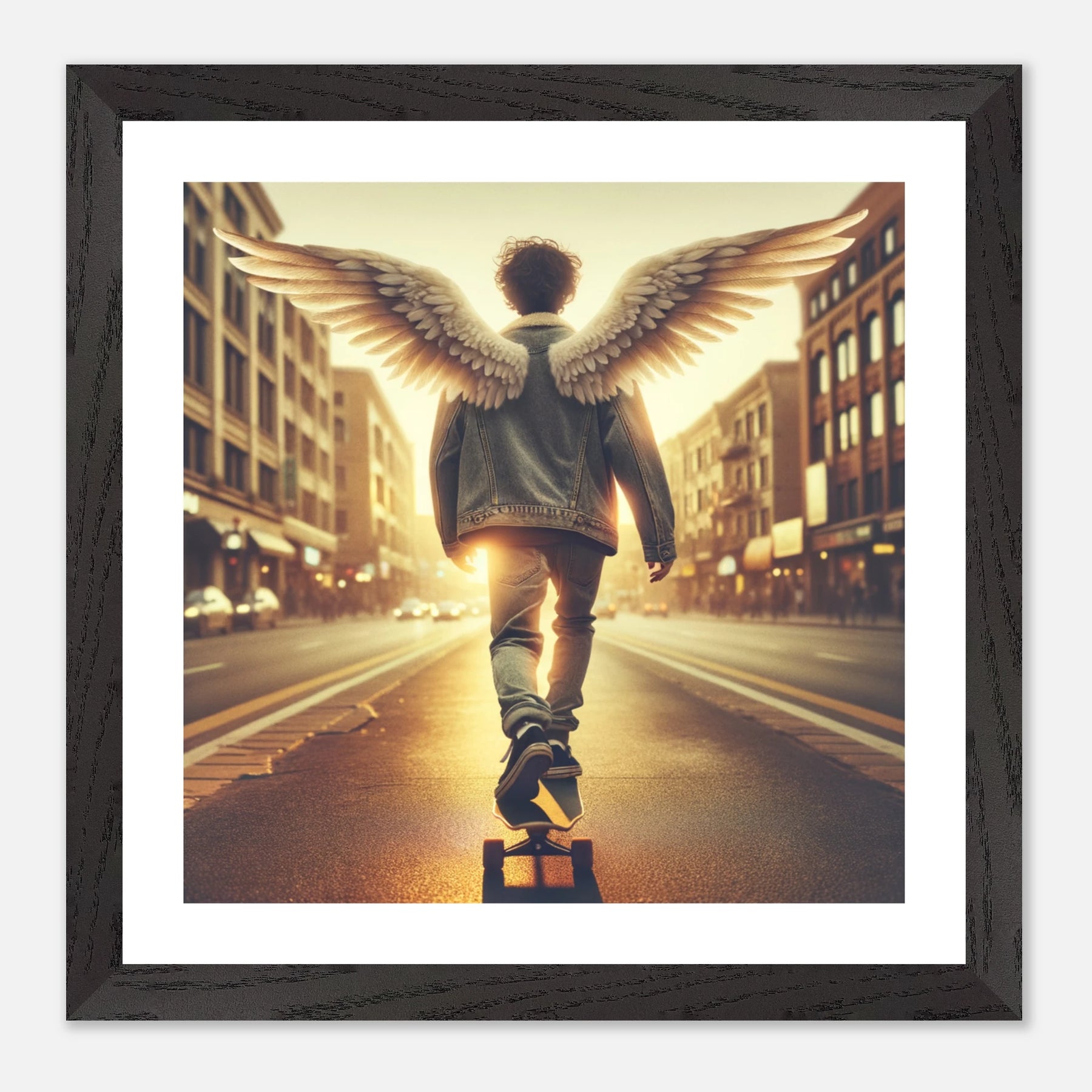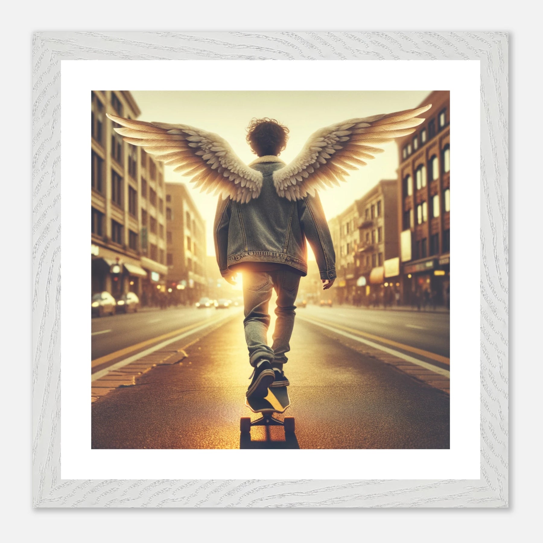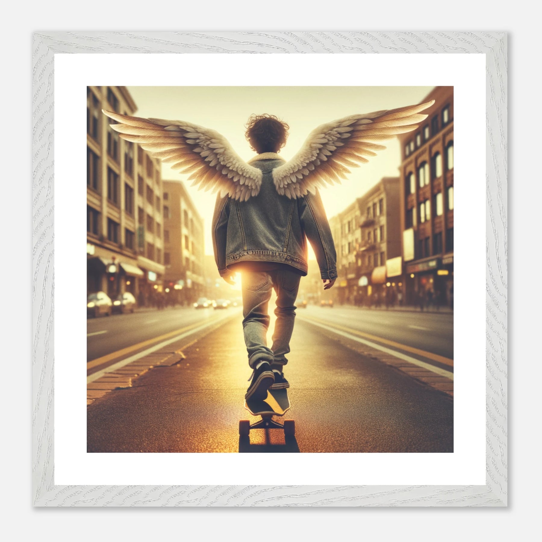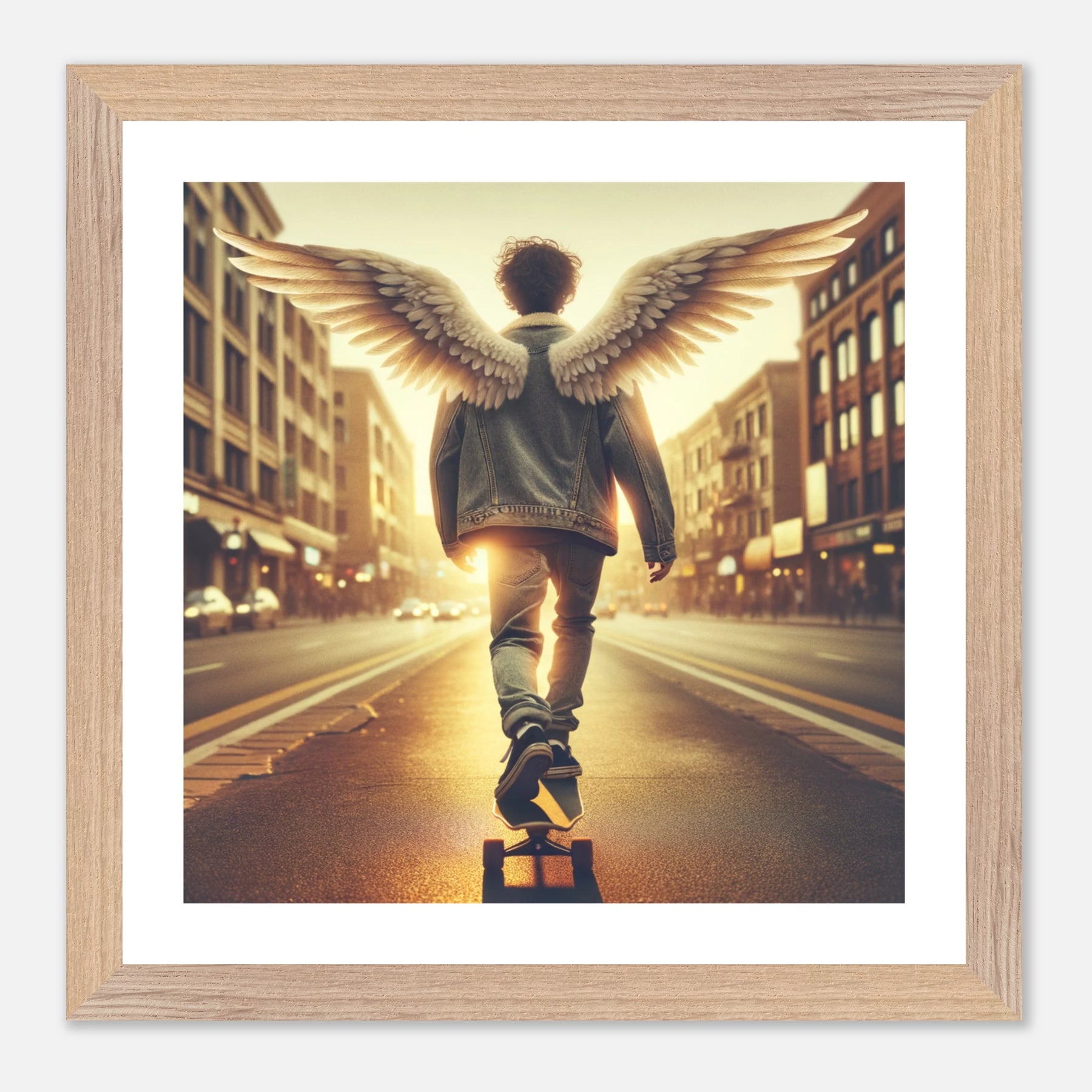 Engel-Skaterkind auf dem Weg ins Jenseits – Golden Hour Guardian Skater Kid Poster, himmlische Reise und Trost