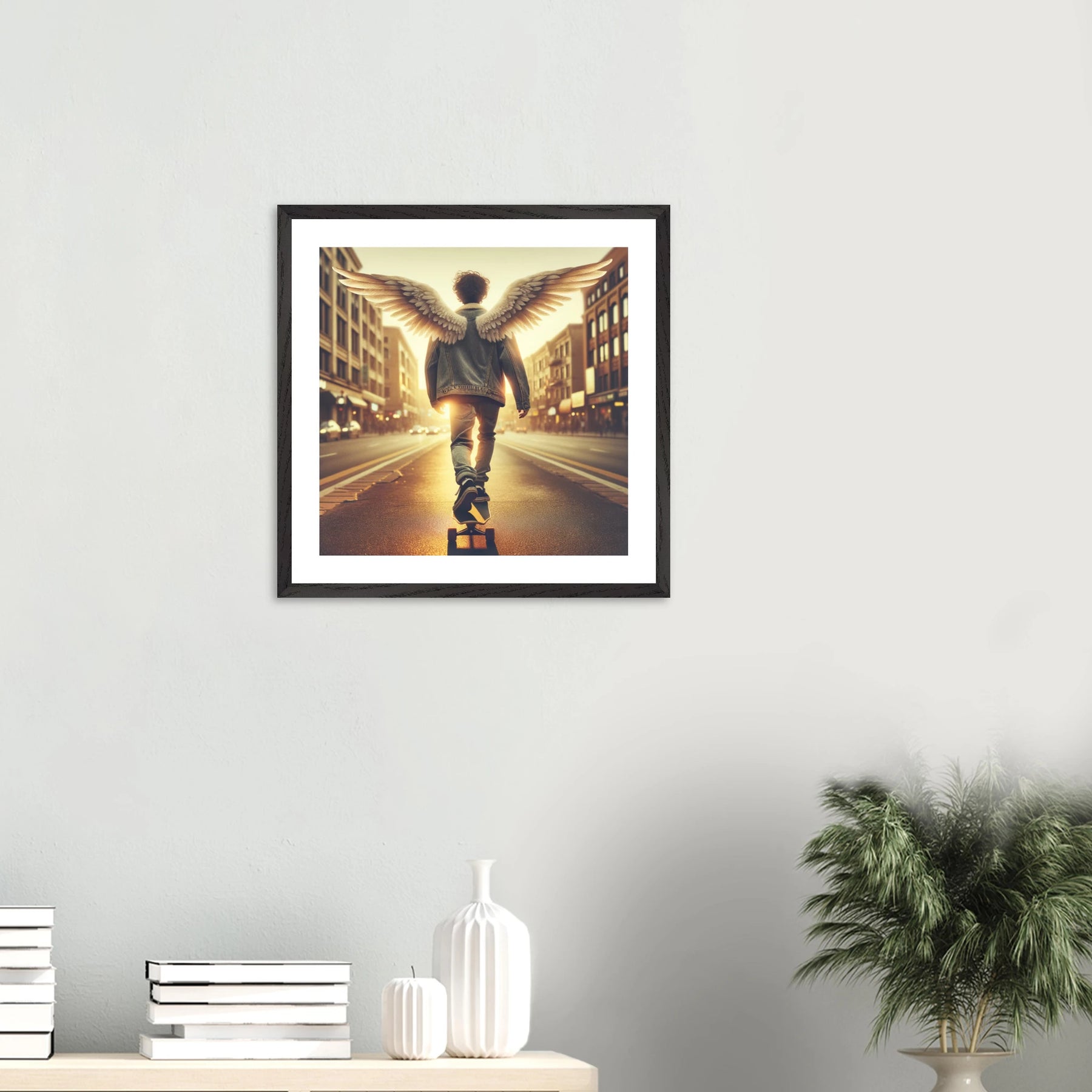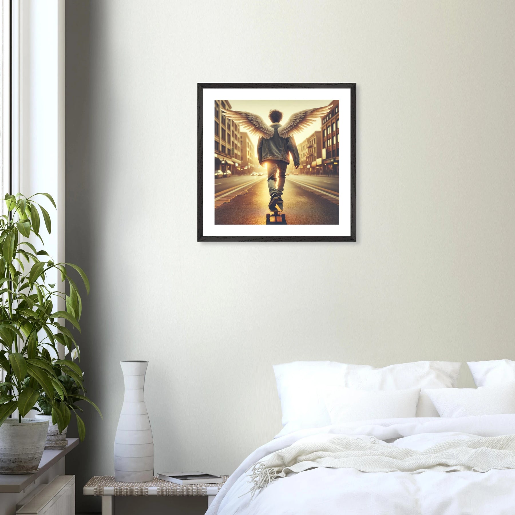 Dieses edle Premium-Poster aus der Urban Angel-Serie bringt urbane Tiefe und moderne Eleganz in deine vier Wände. Der FSC-zertifizierte Holzrahmen und das matte Kunstdruckpapier sorgen gemeinsam für eine hochwertige, langlebige Präsentation deines Motivs.