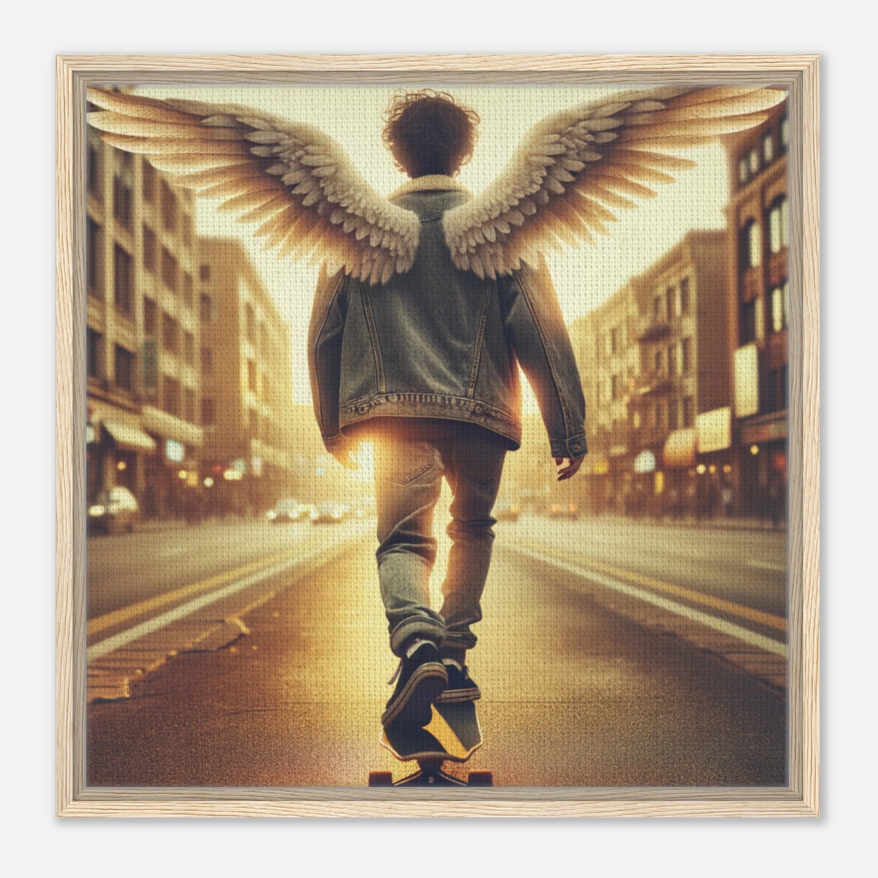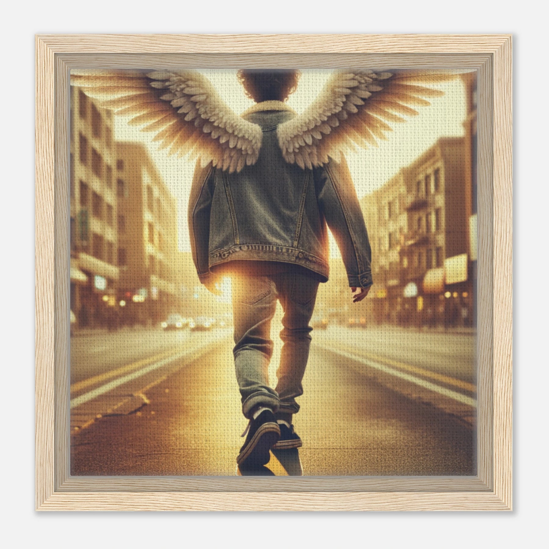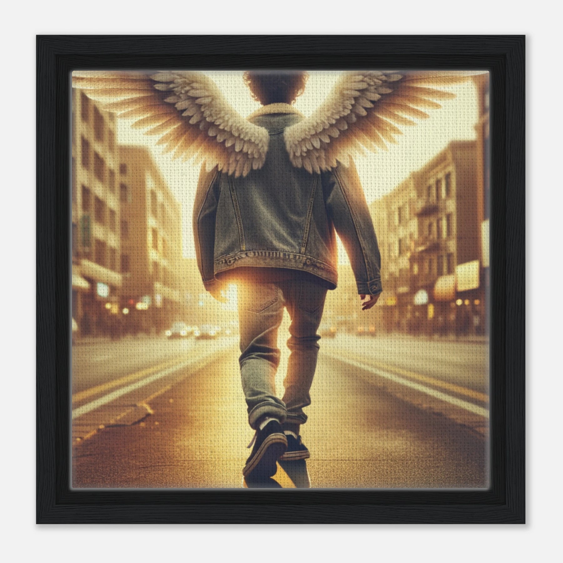 Diese gerahmte Leinwand zeigt einen Engel aus der Urban Angel-Serie – kraftvoll, ästhetisch und voller Tiefe. Die strukturierte Oberfläche bringt das Motiv besonders lebendig zur Geltung, der hochwertige Rahmen sorgt für eine elegante Galerie-Optik.
