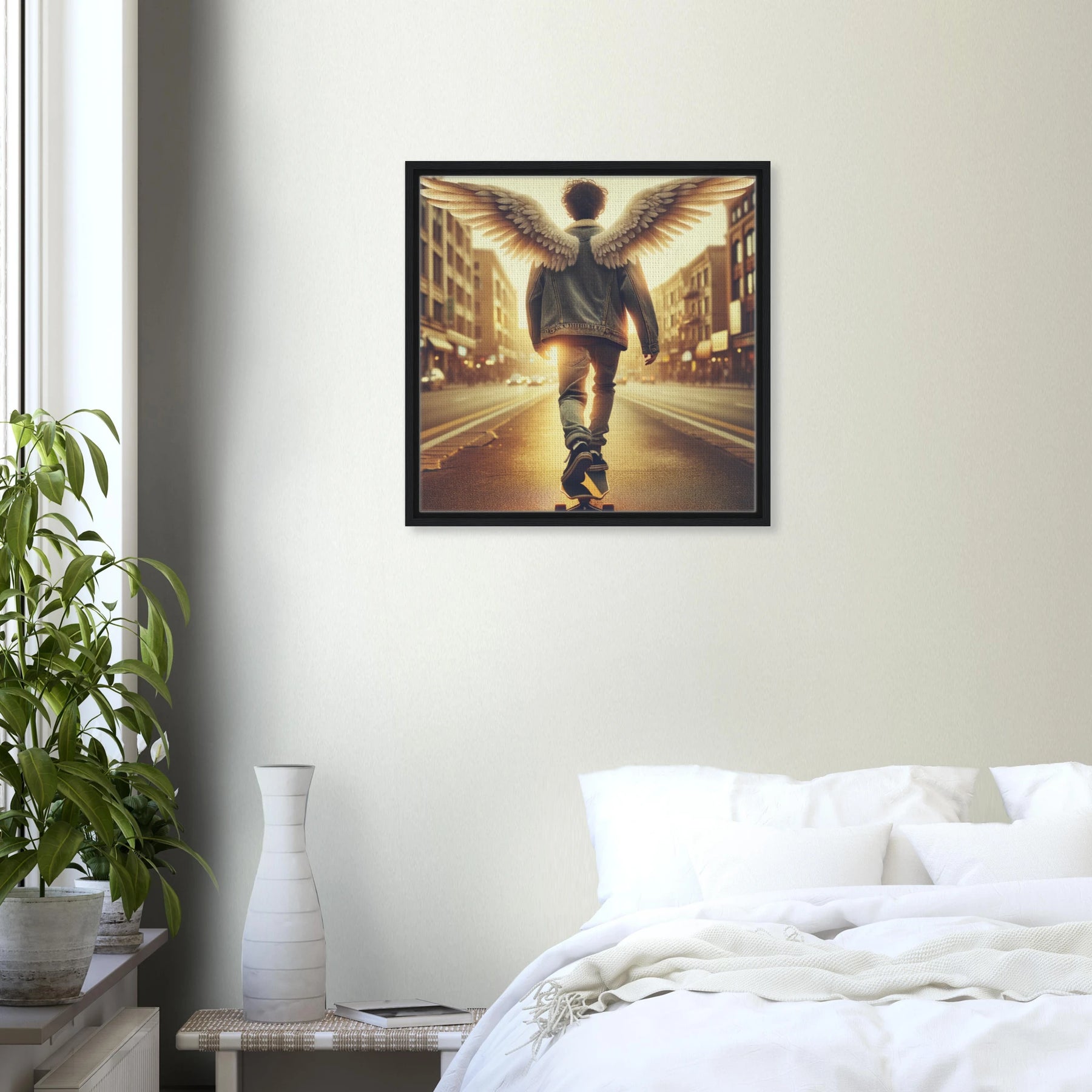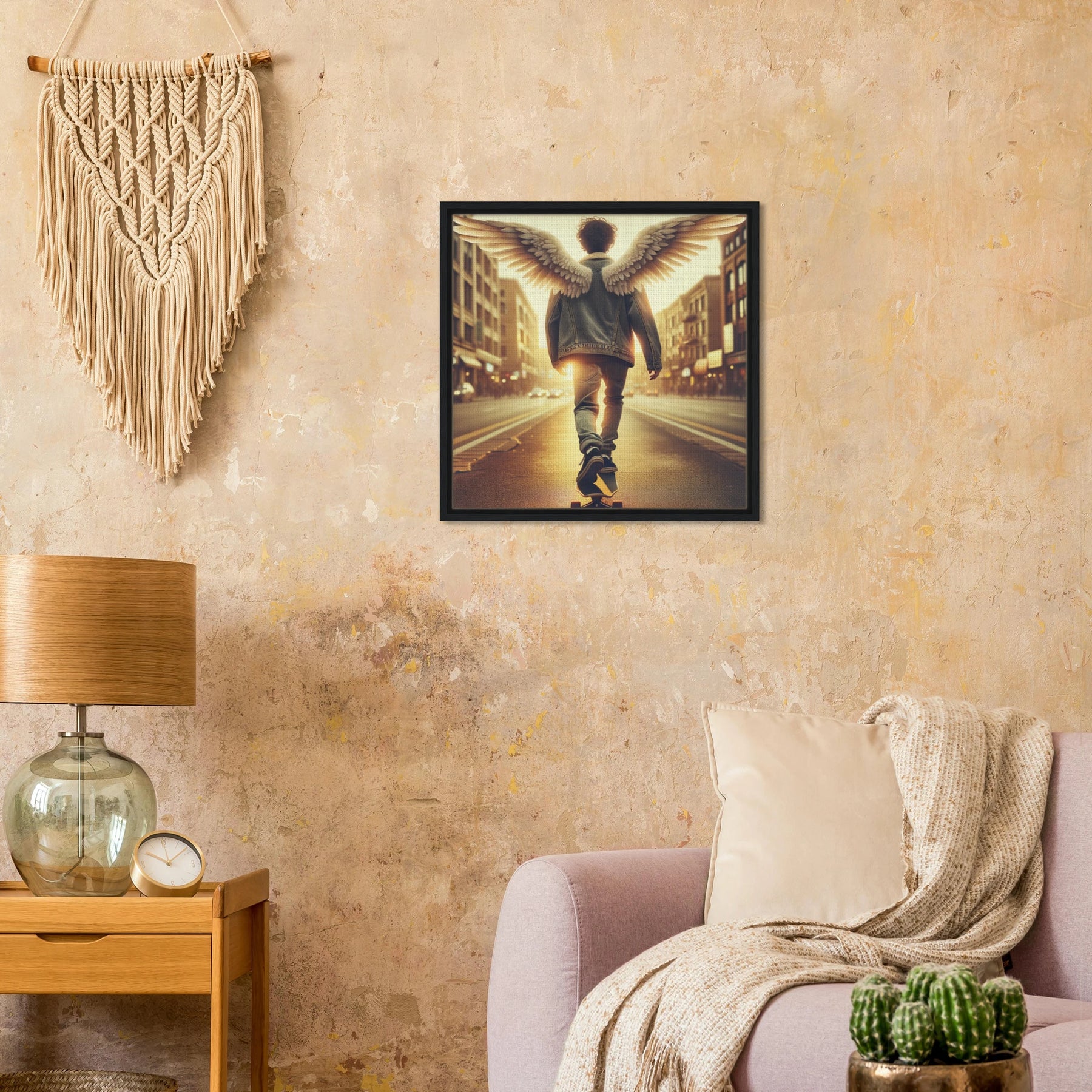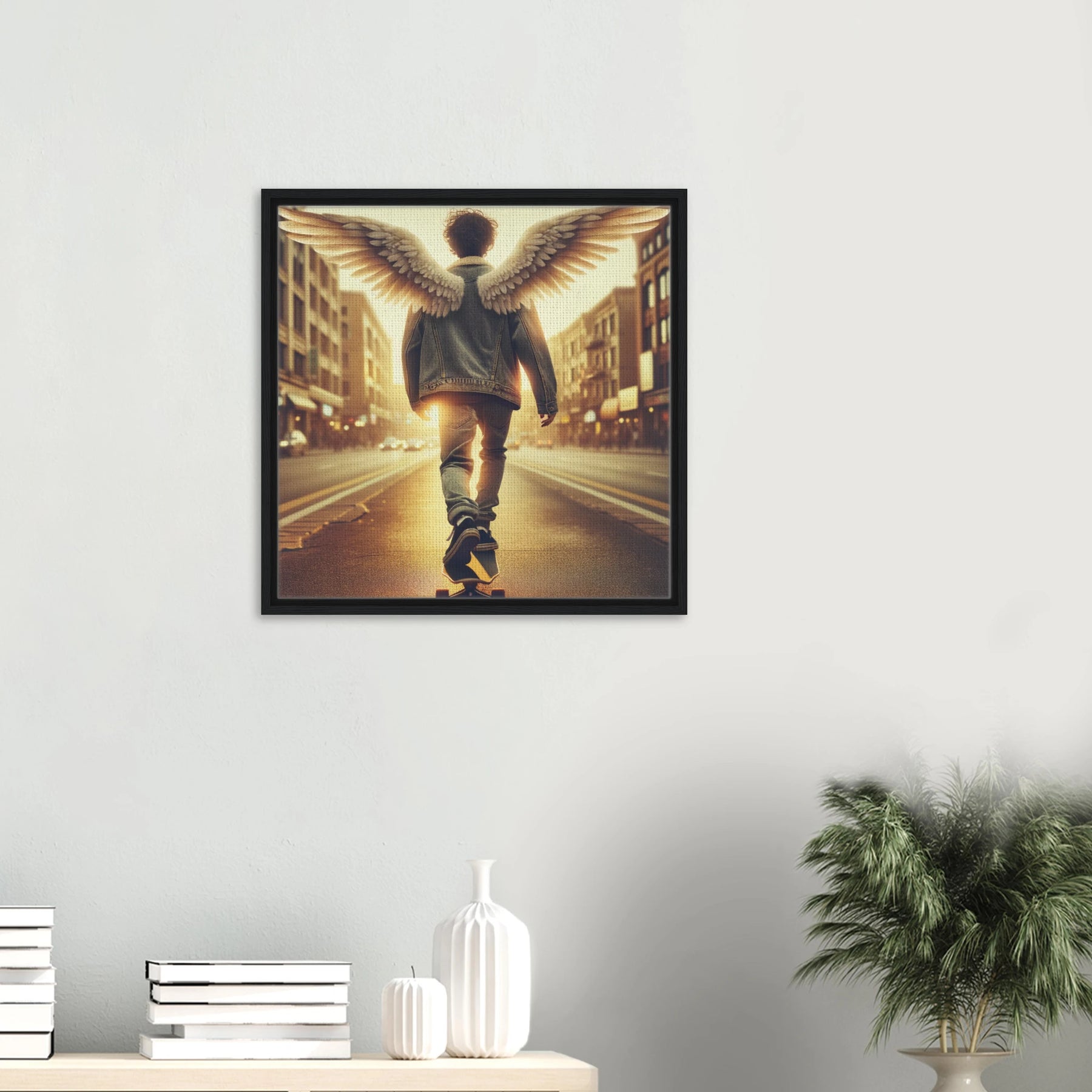 Diese gerahmte Leinwand zeigt einen Engel aus der Urban Angel-Serie – kraftvoll, ästhetisch und voller Tiefe. Die strukturierte Oberfläche bringt das Motiv besonders lebendig zur Geltung, der hochwertige Rahmen sorgt für eine elegante Galerie-Optik.