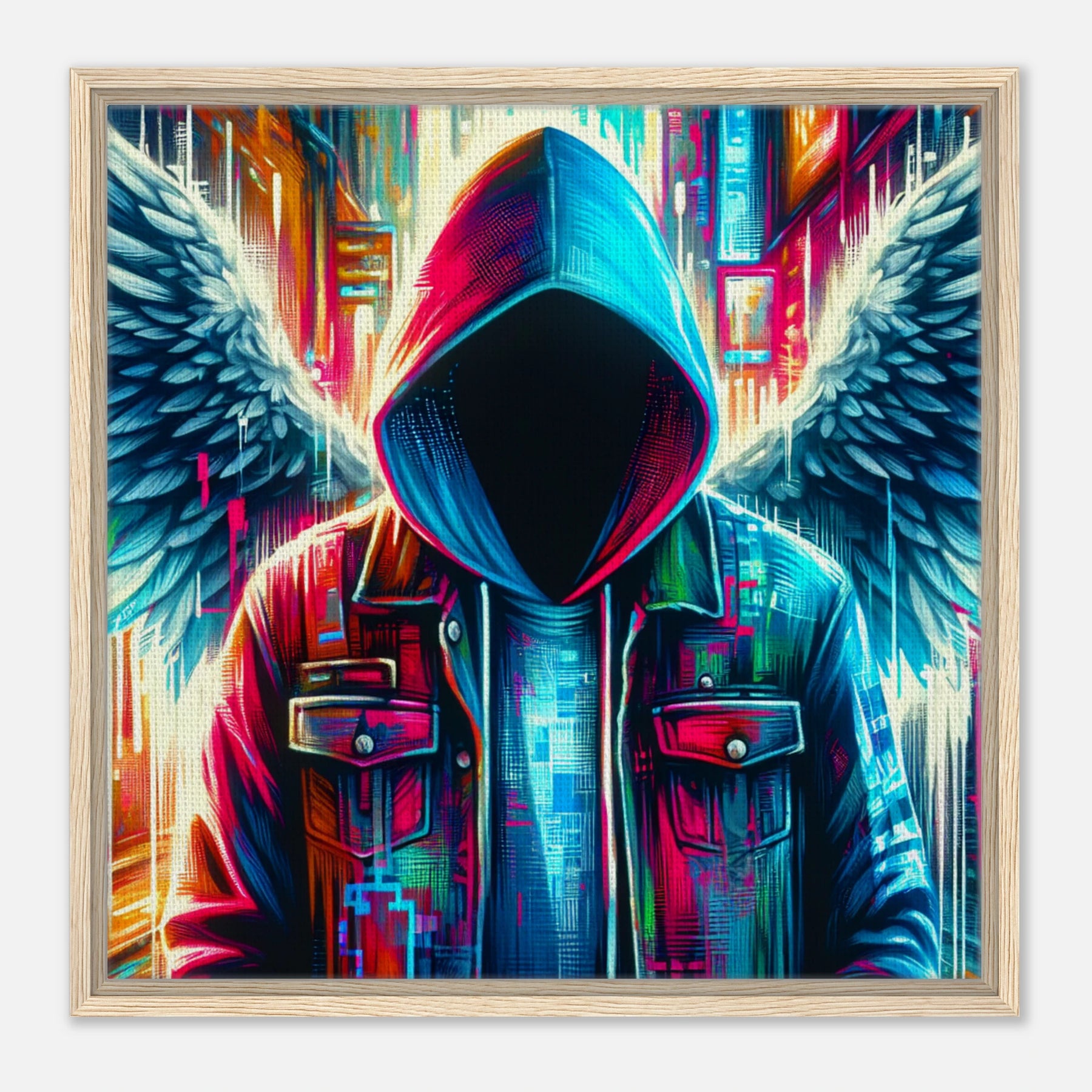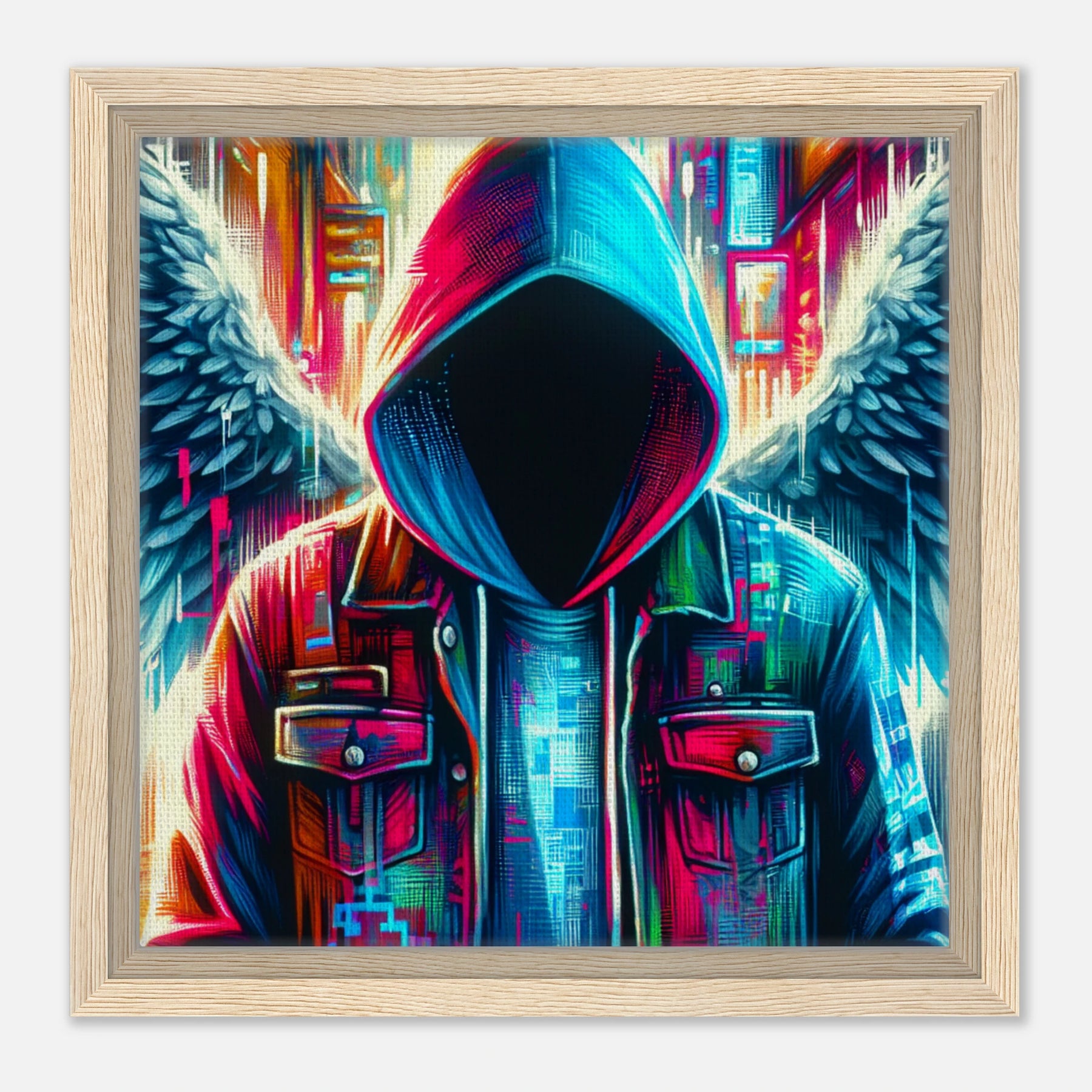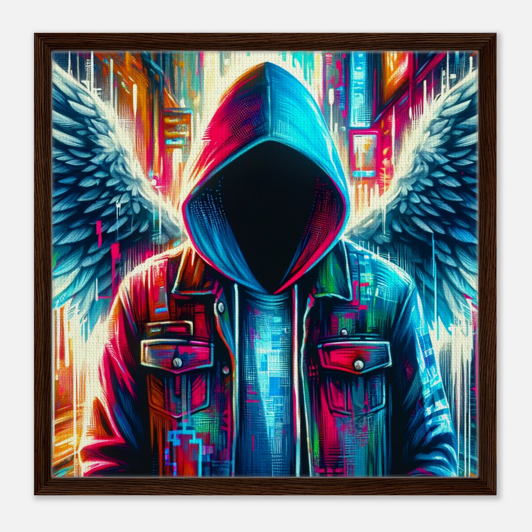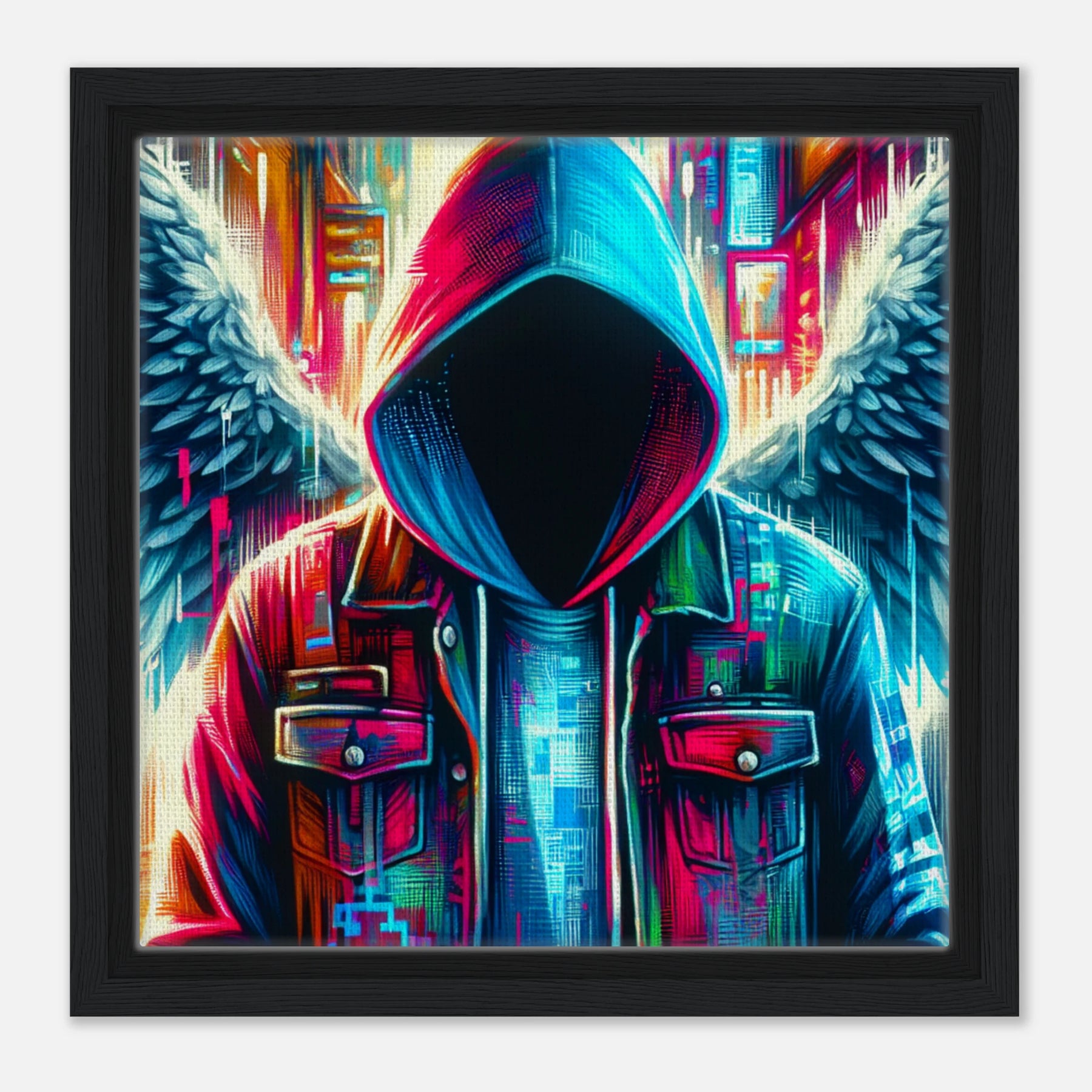 Diese gerahmte Leinwand zeigt einen Engel aus der Urban Angel-Serie – kraftvoll, ästhetisch und voller Tiefe. Die strukturierte Oberfläche bringt das Motiv besonders lebendig zur Geltung, der hochwertige Rahmen sorgt für eine elegante Galerie-Optik.
