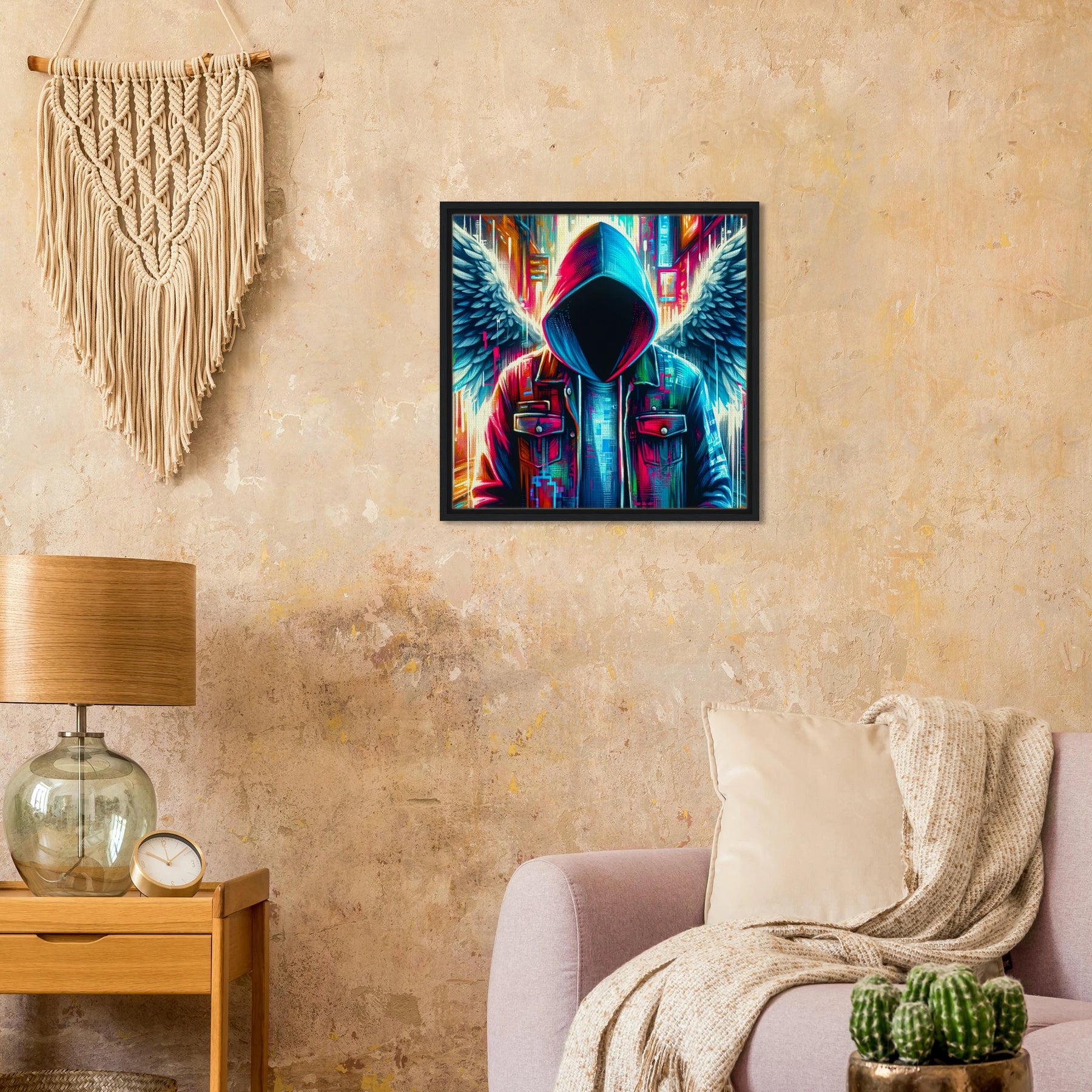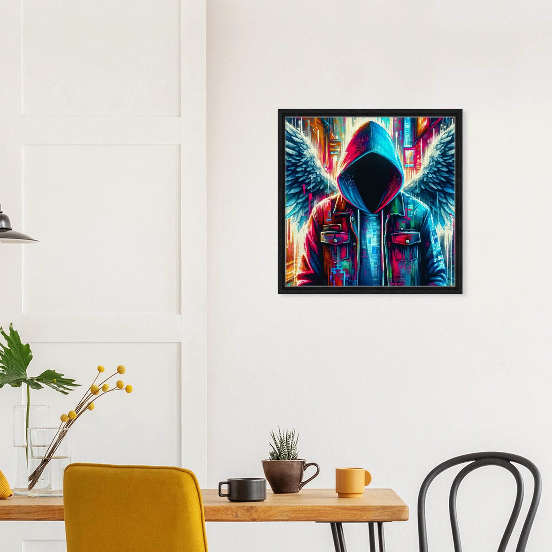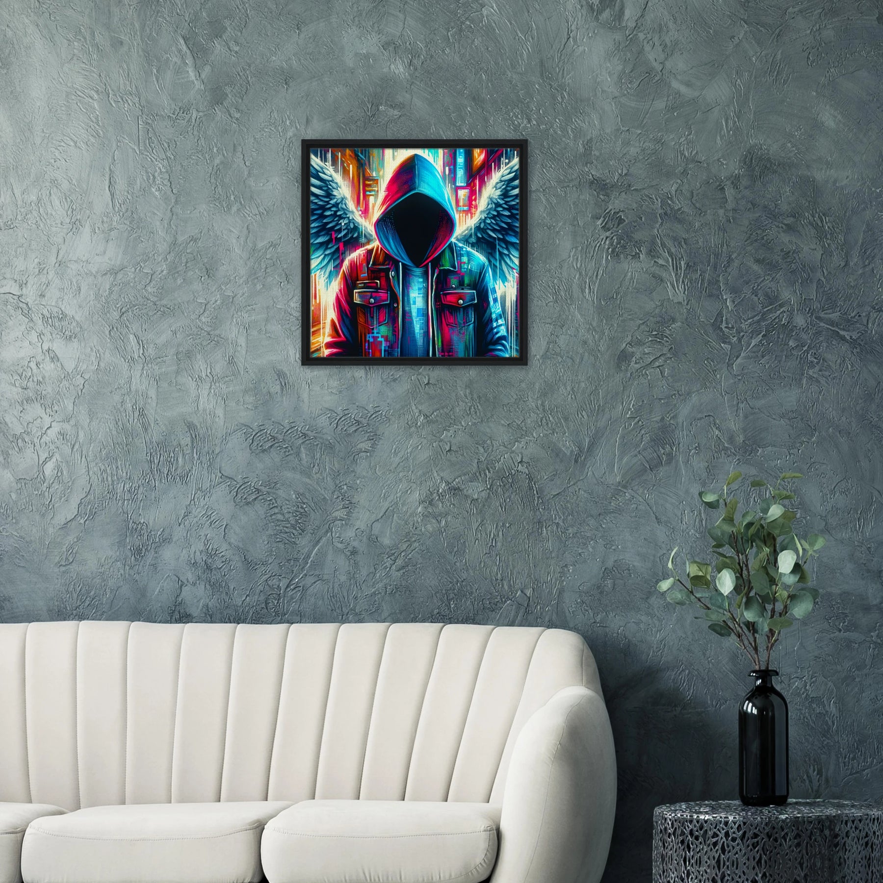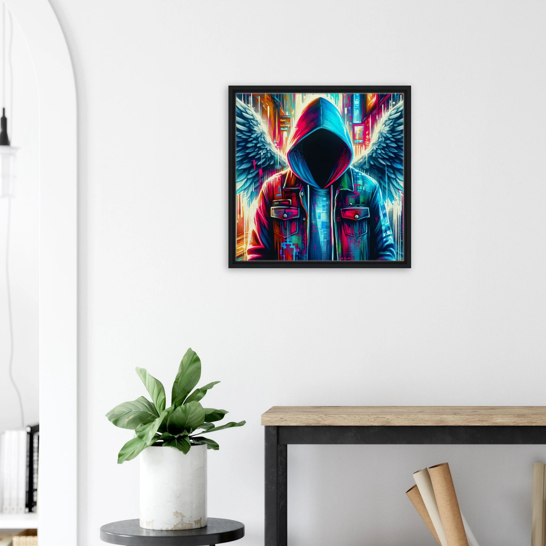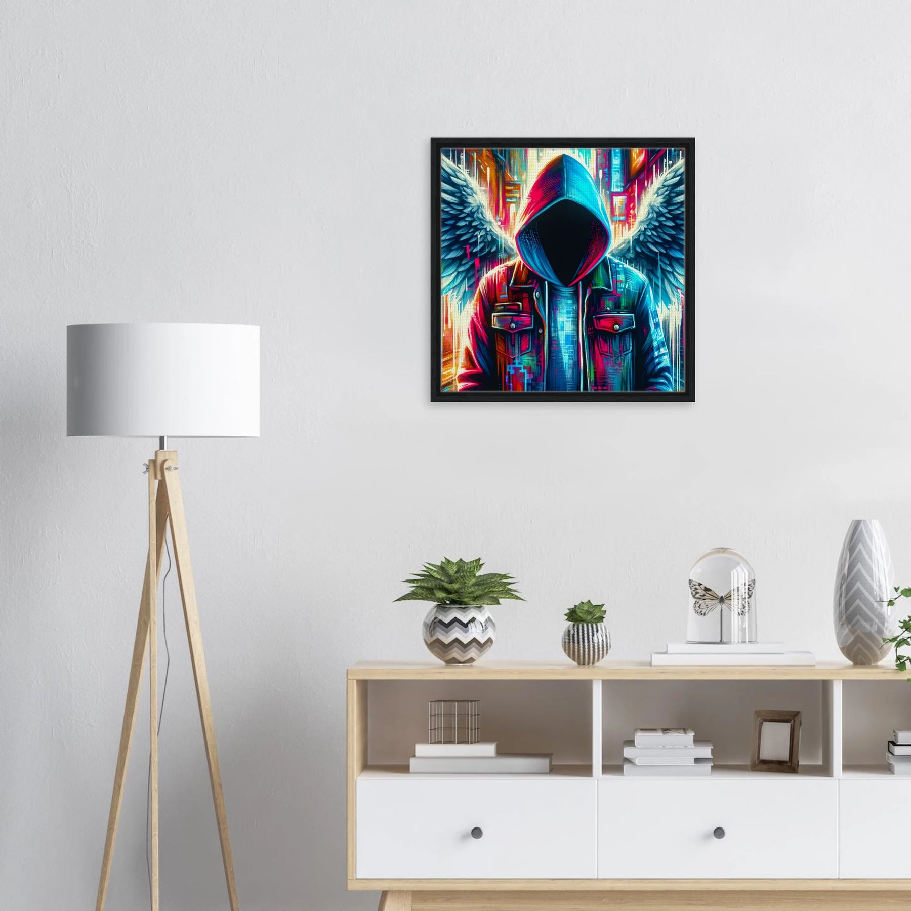 Diese gerahmte Leinwand zeigt einen Engel aus der Urban Angel-Serie – kraftvoll, ästhetisch und voller Tiefe. Die strukturierte Oberfläche bringt das Motiv besonders lebendig zur Geltung, der hochwertige Rahmen sorgt für eine elegante Galerie-Optik.