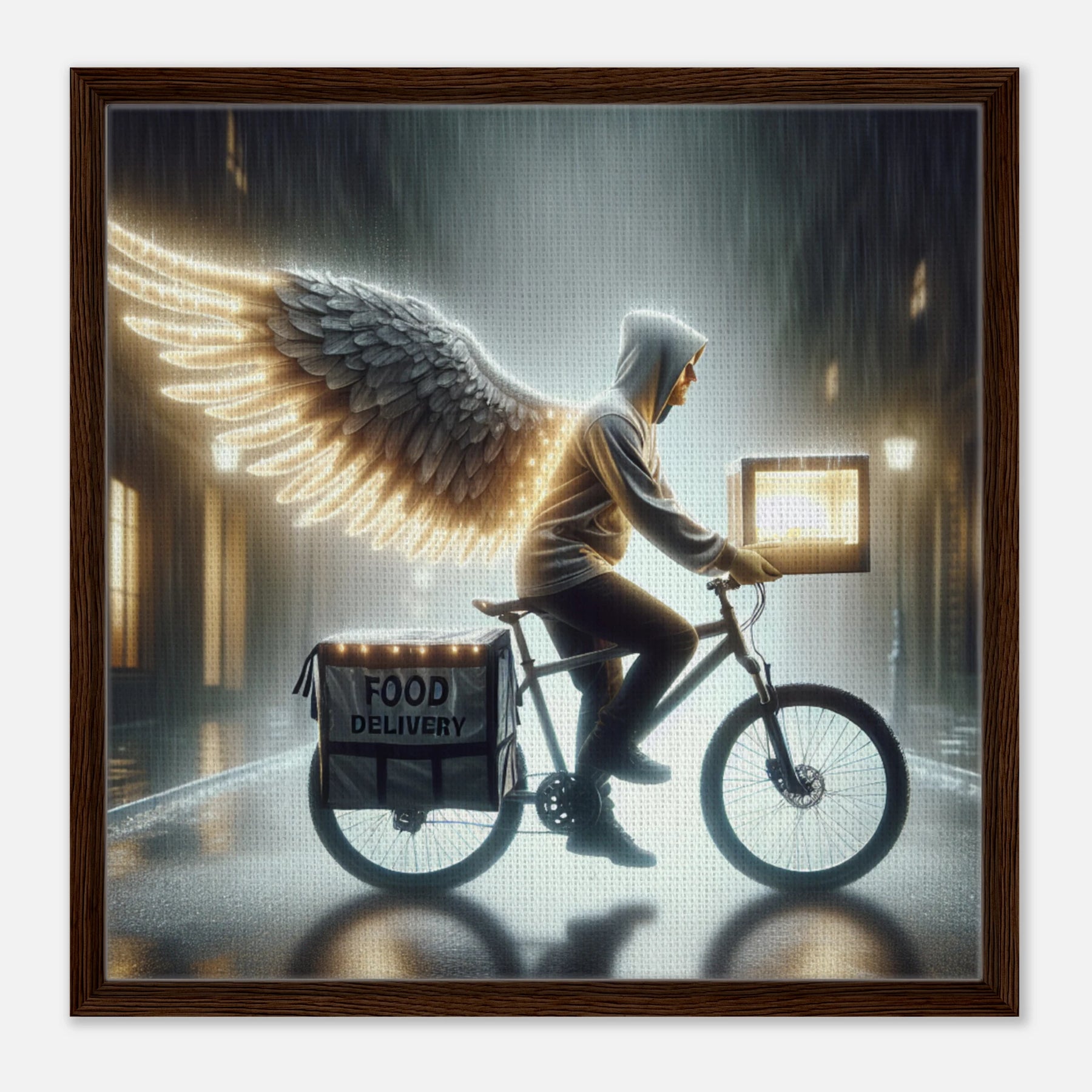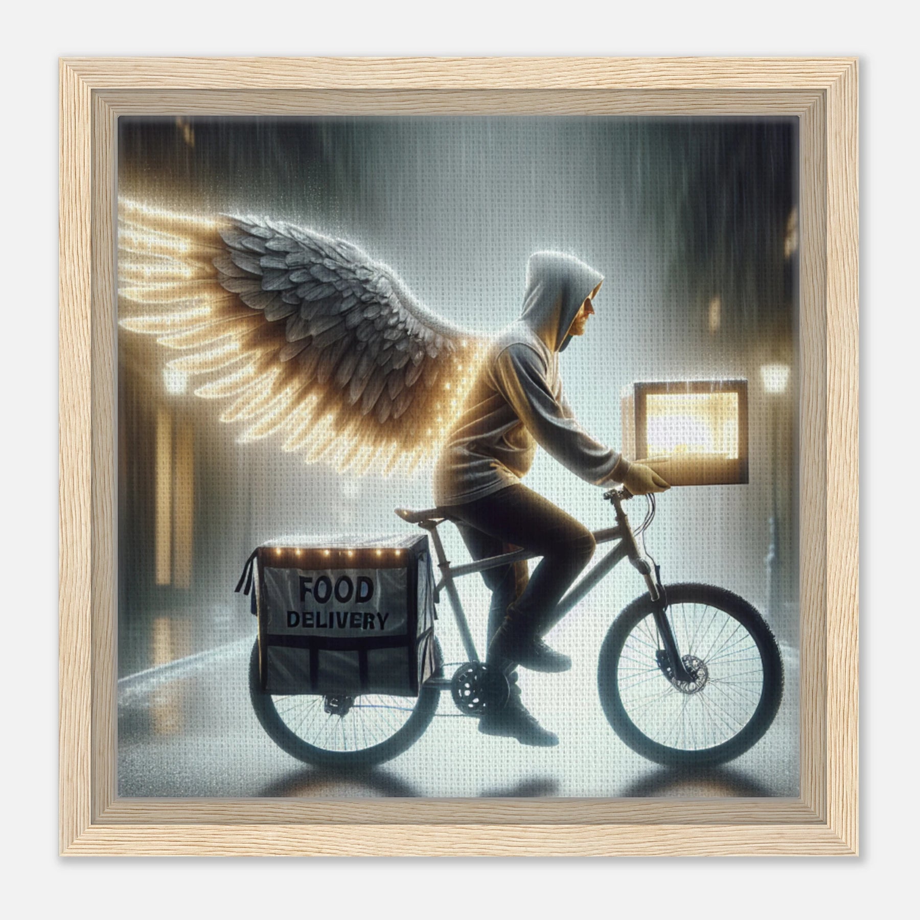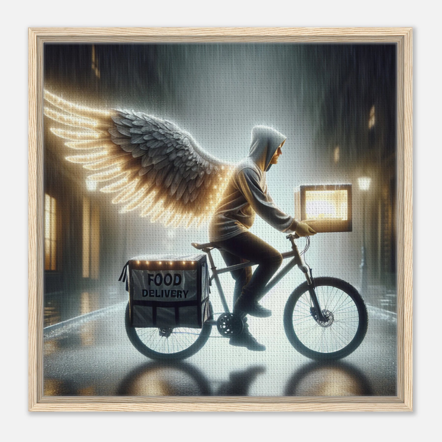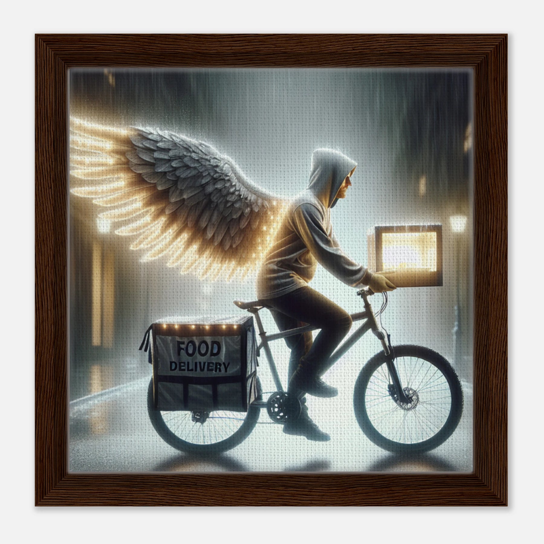Lieferheld mit Engelsflügeln – Soul Delivery Kunstwerk auf Leinwand, Symbol für Mitgefühl und urbane Rettung