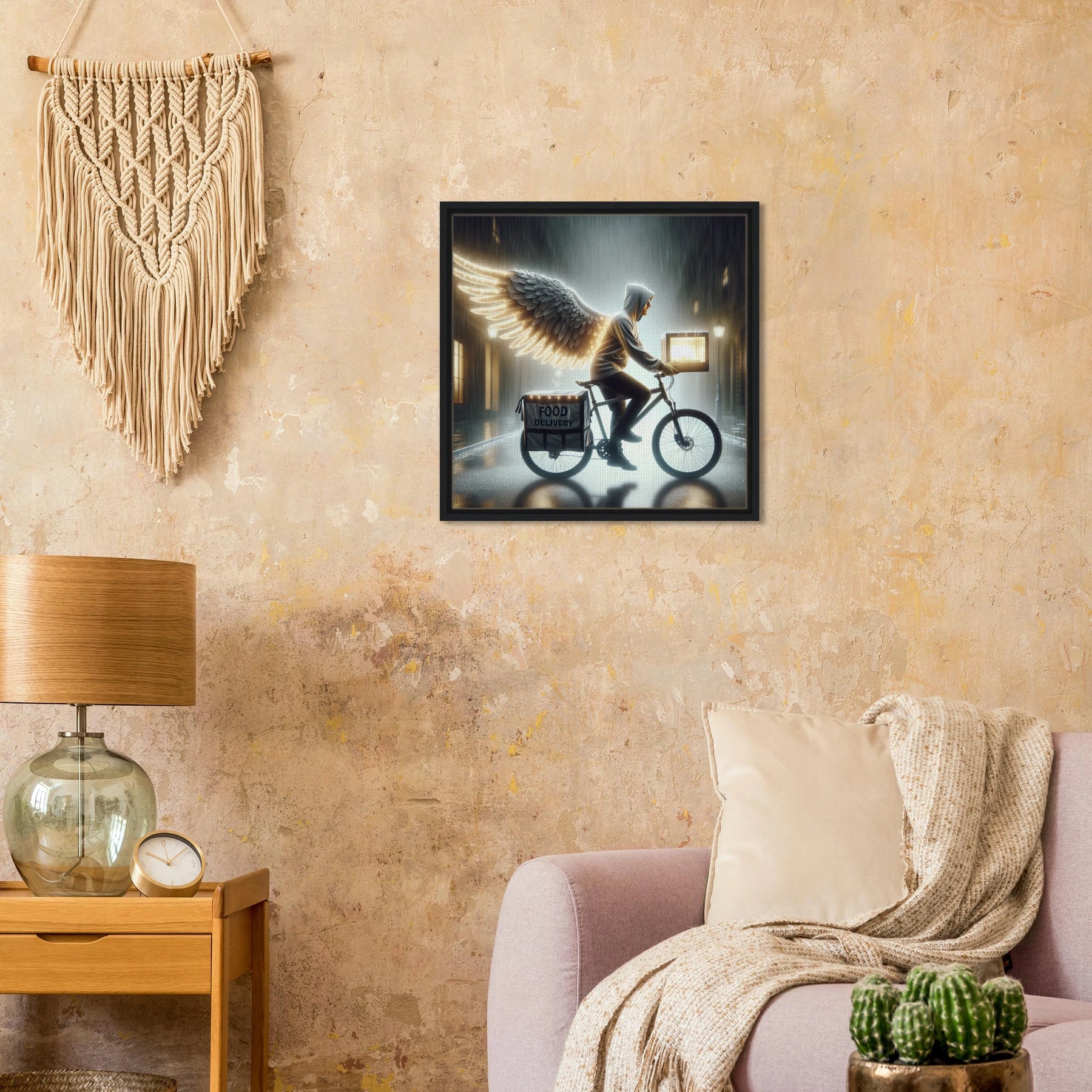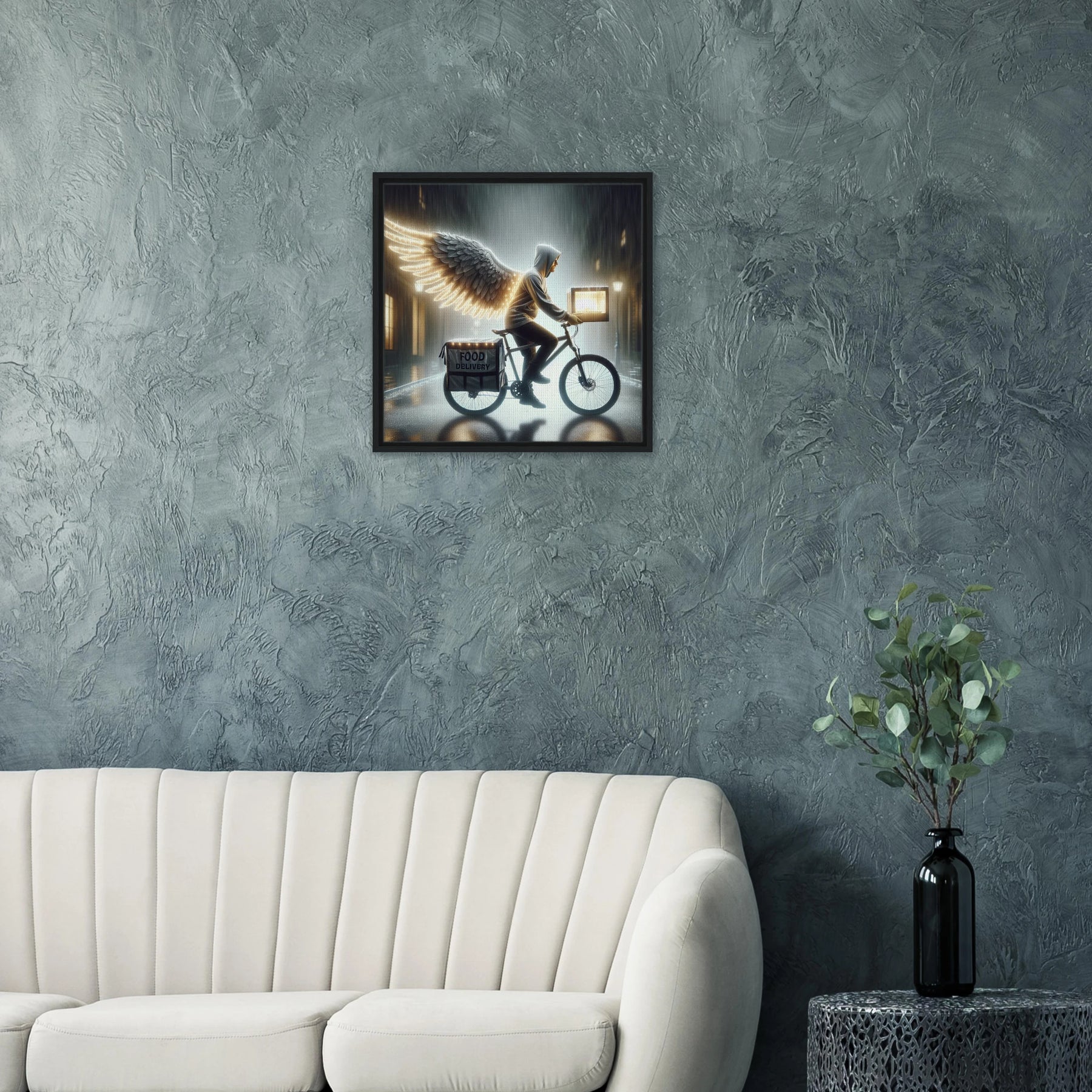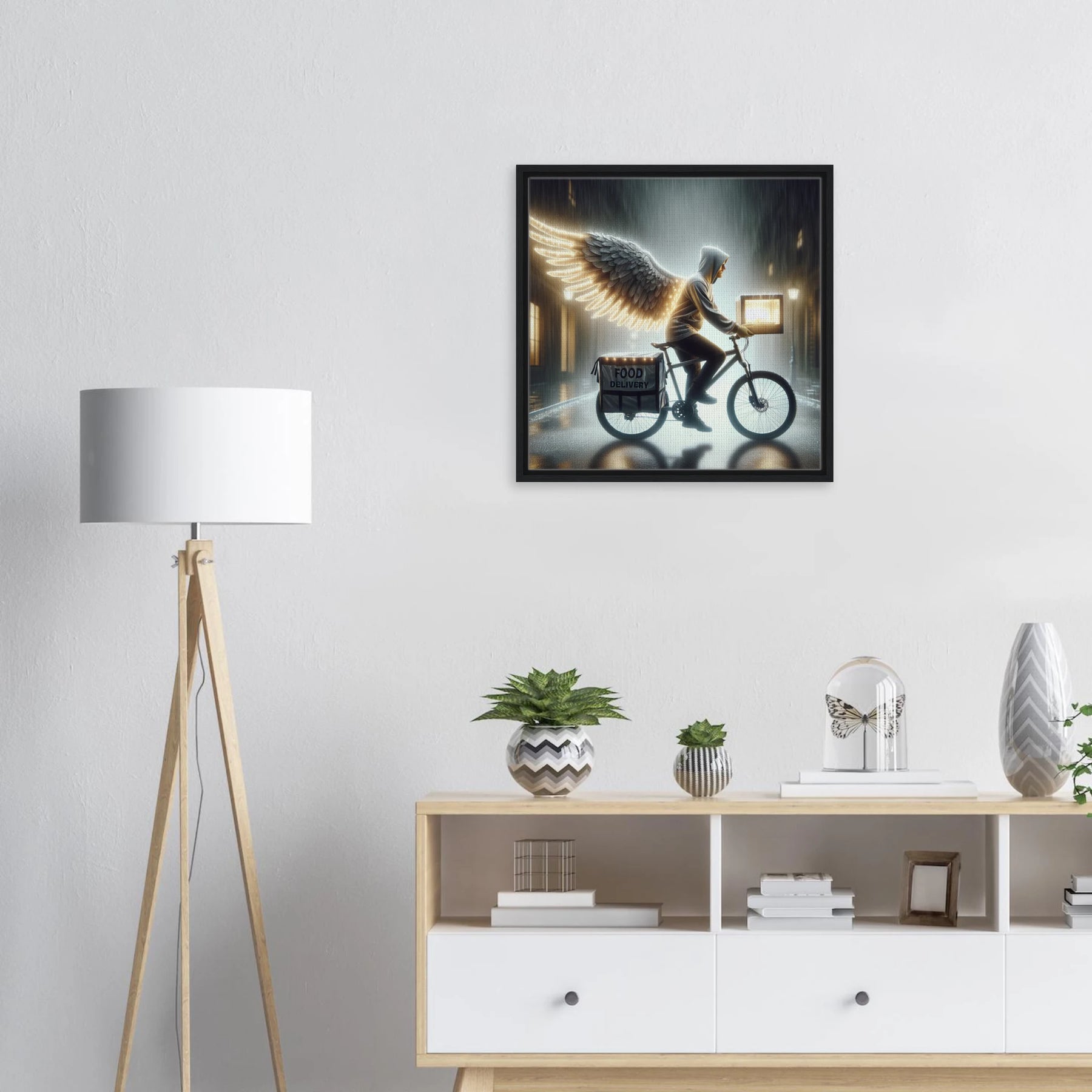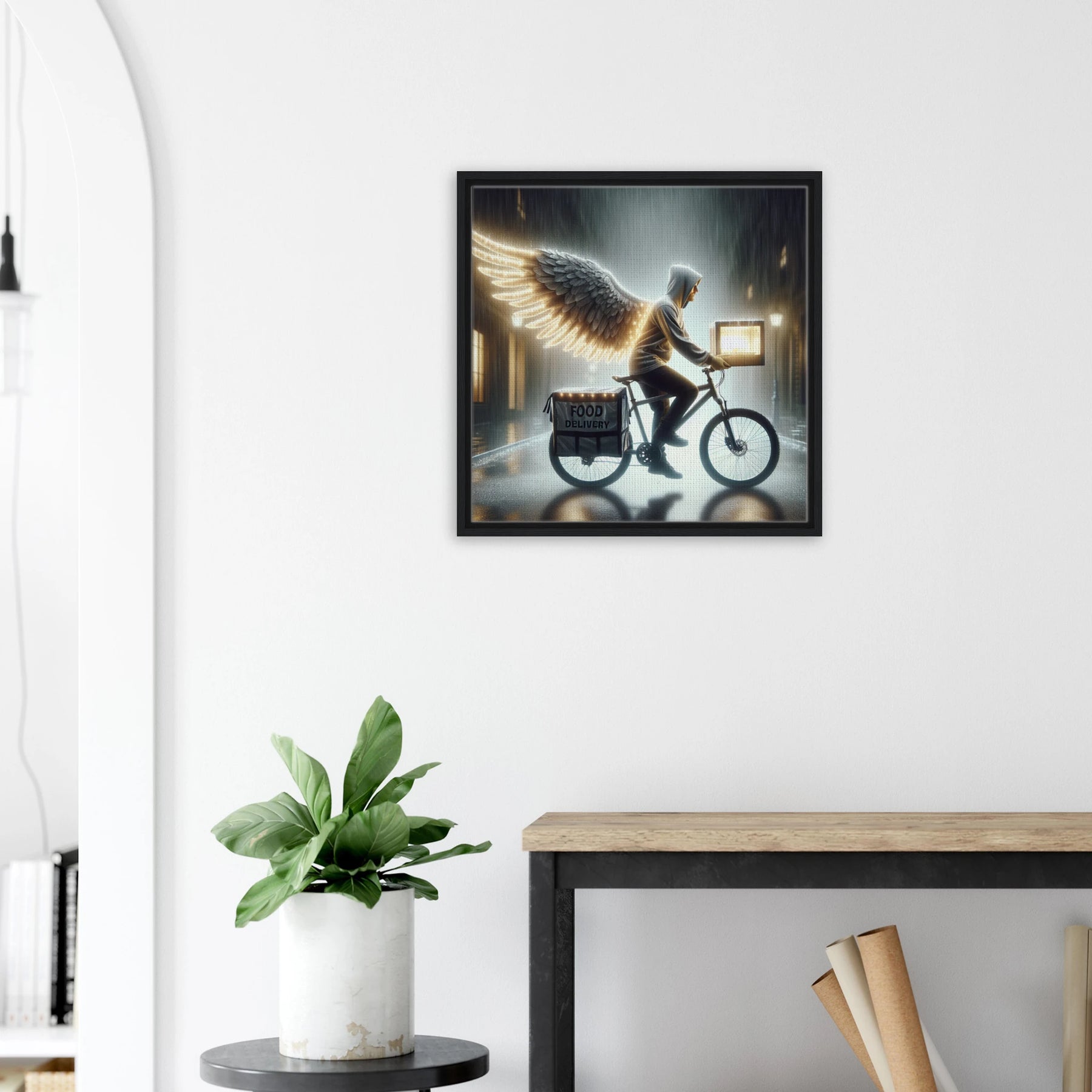 Lieferheld mit Engelsflügeln – Soul Delivery Kunstwerk auf Leinwand, Symbol für Mitgefühl und urbane Rettung