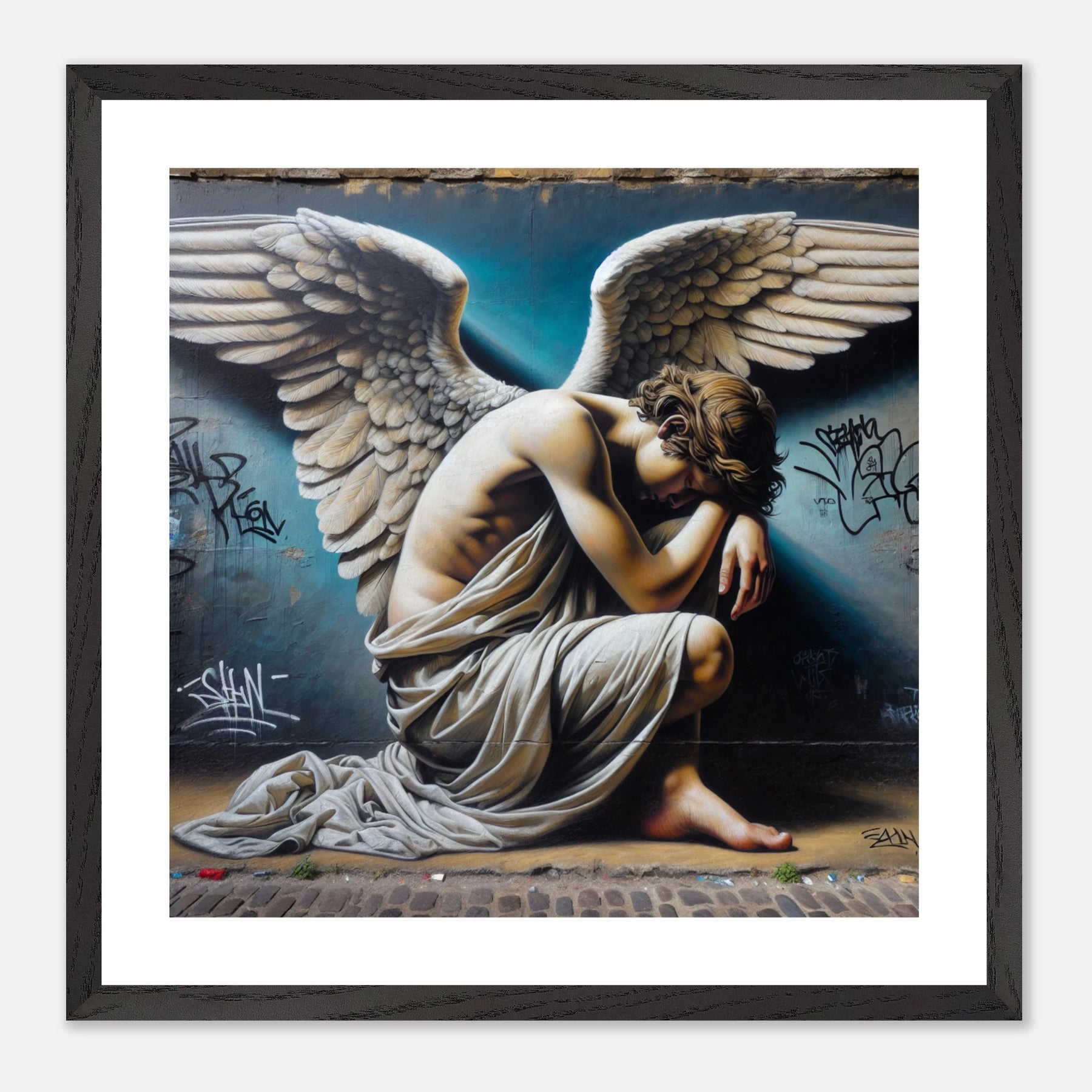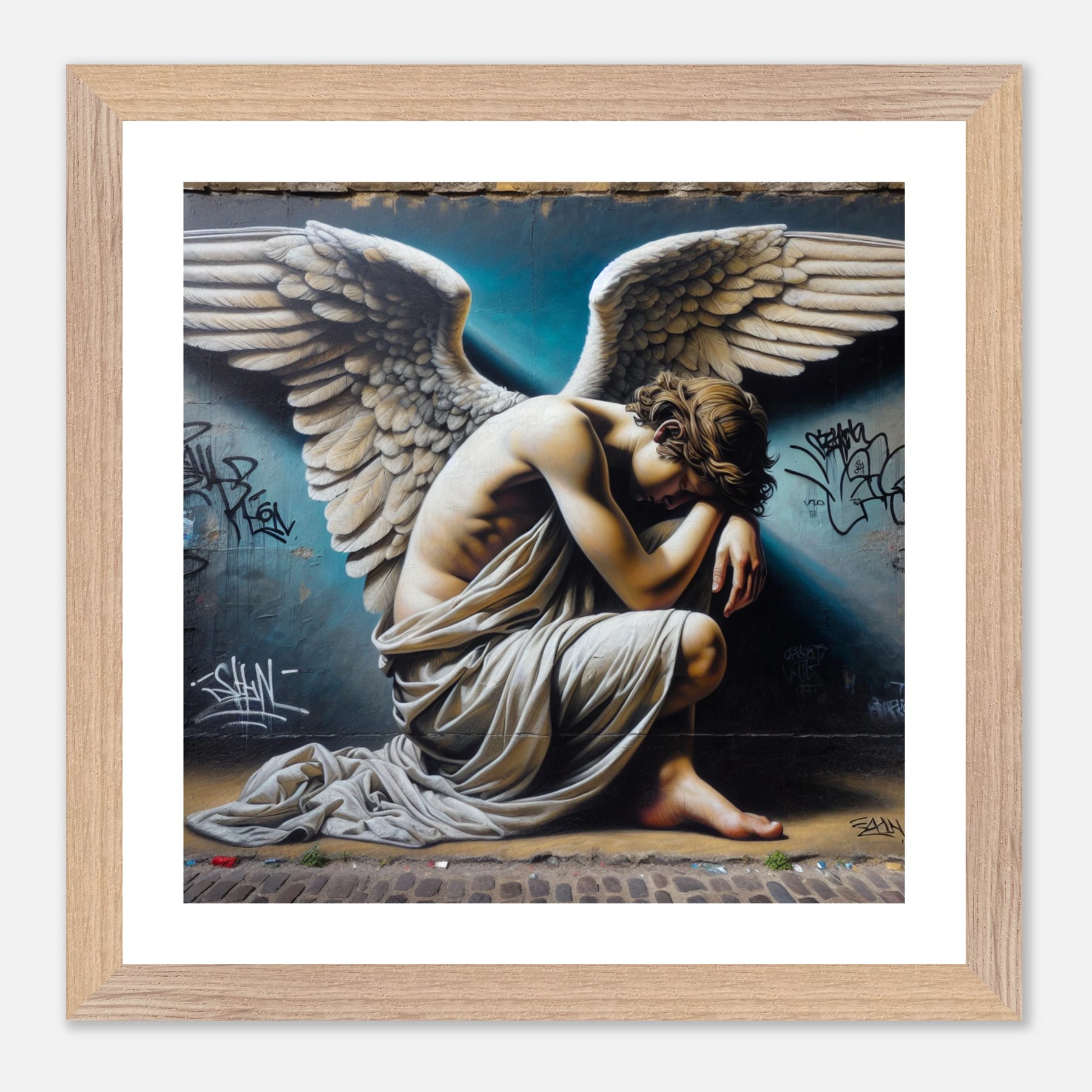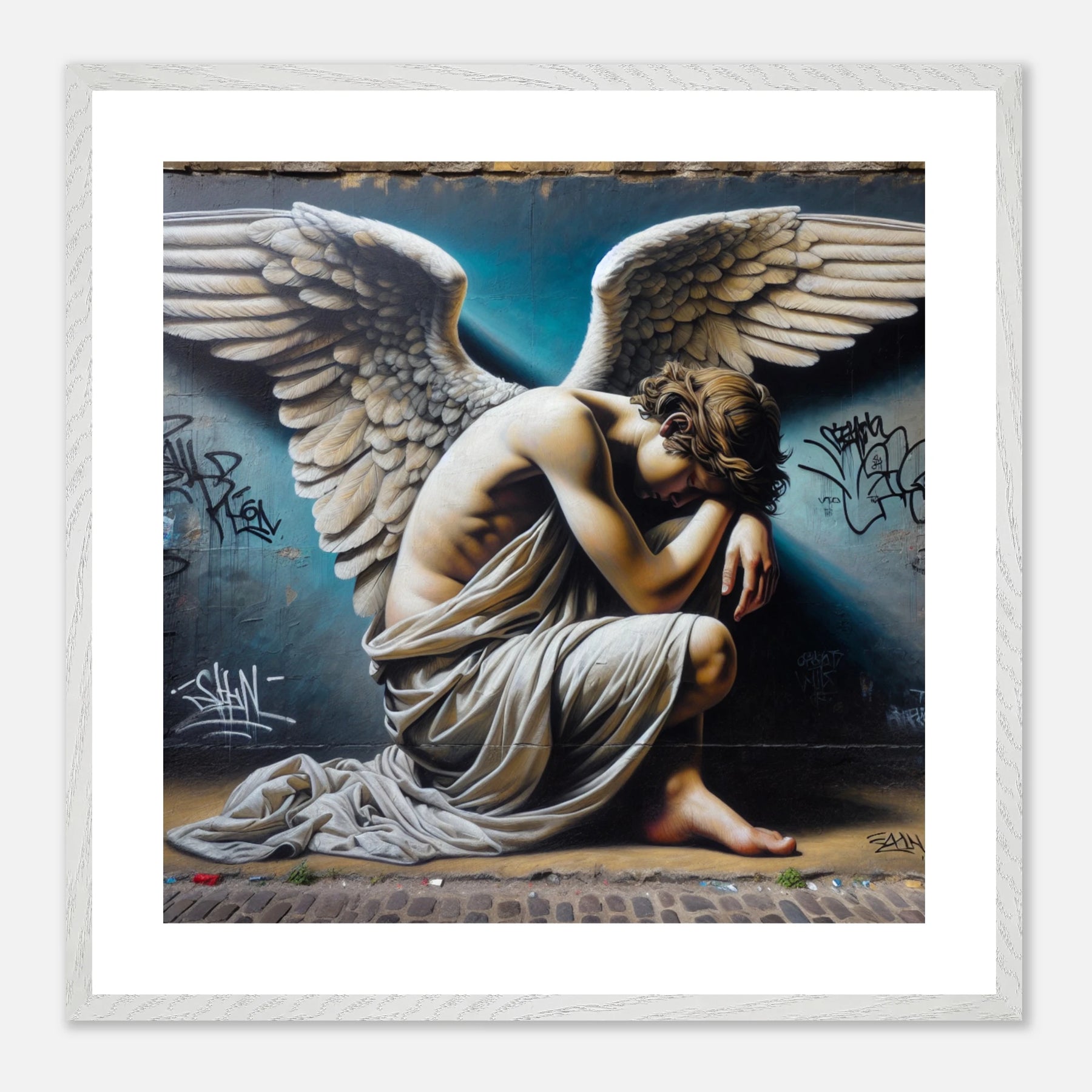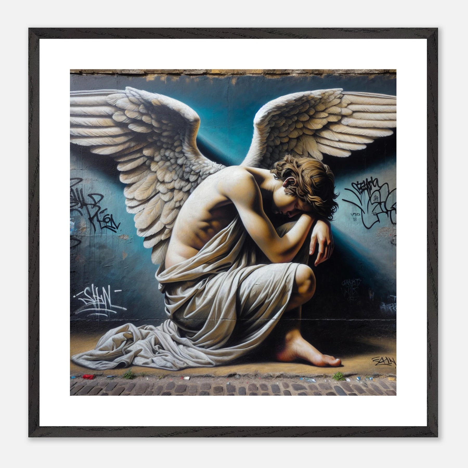 Urbaner Straßen-Gebet – Graffiti eines betenden Mannes mit Engelsflügeln als symbolstarkes Posterbild