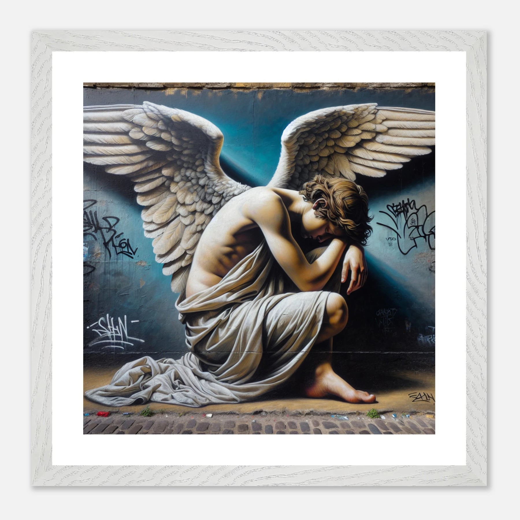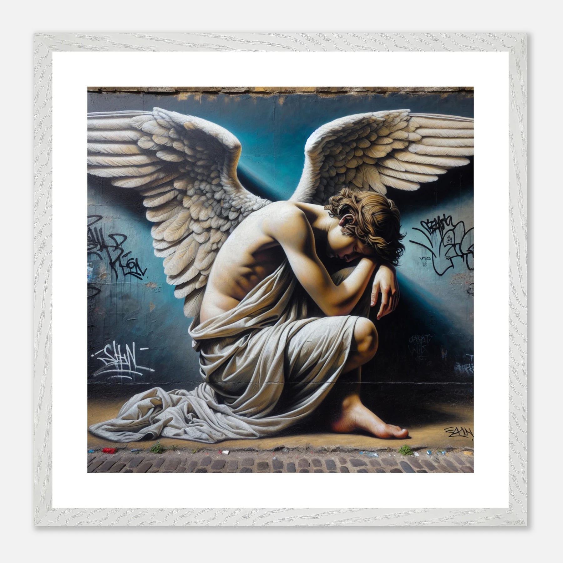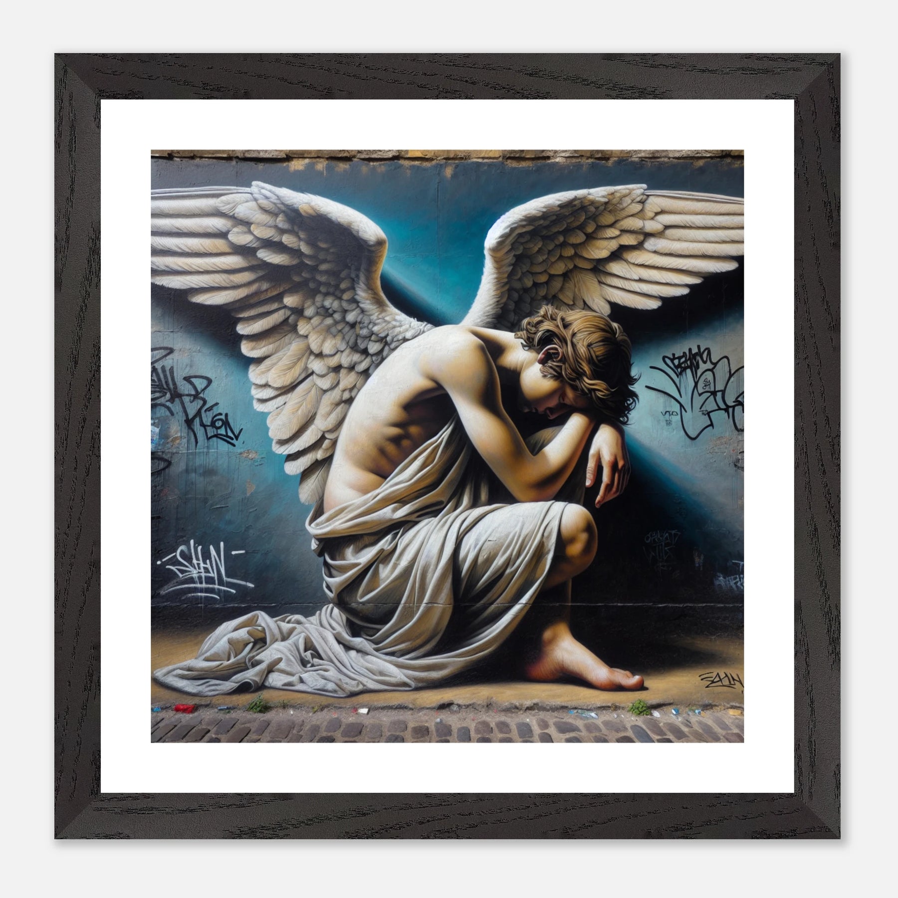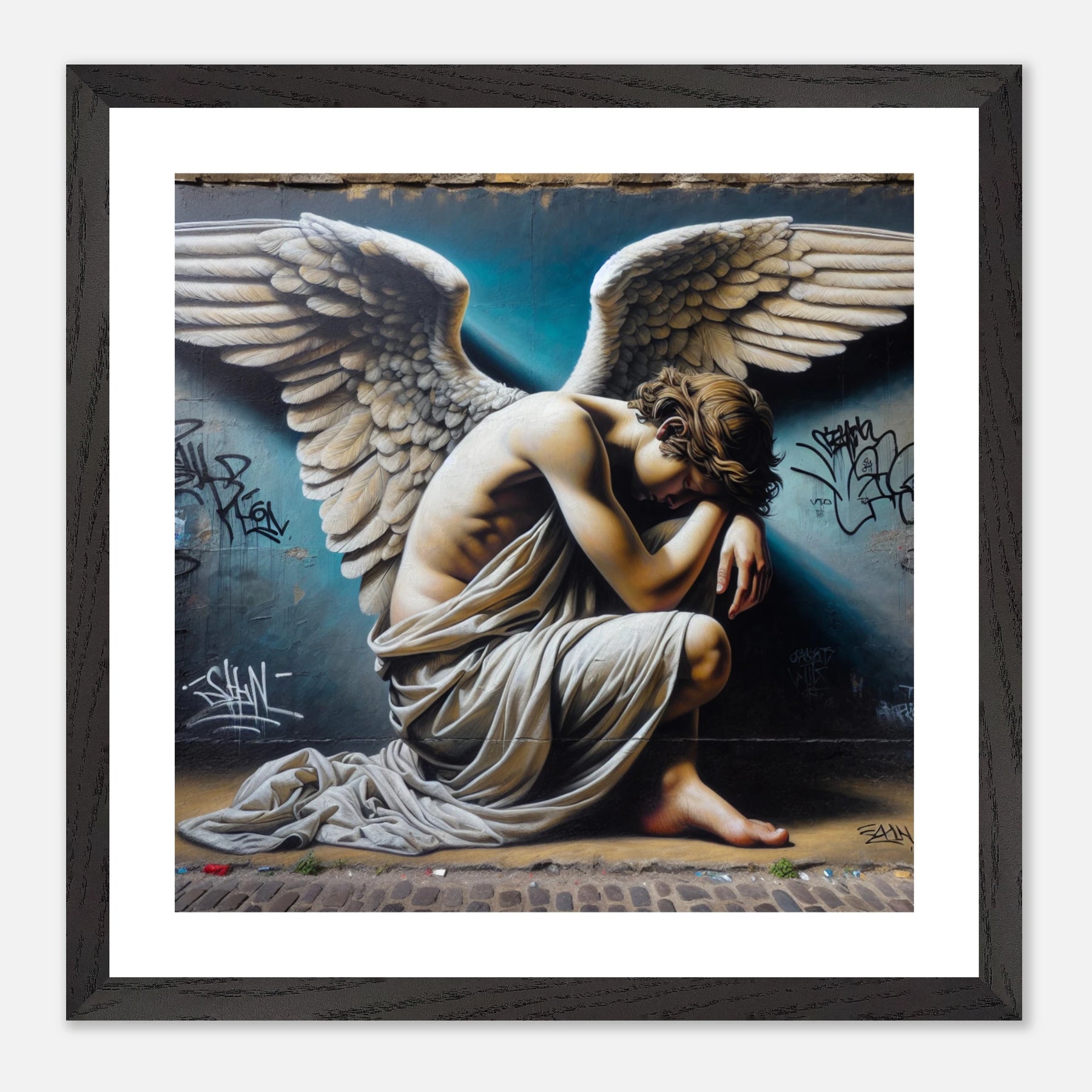 Urbaner Straßen-Gebet – Graffiti eines betenden Mannes mit Engelsflügeln als symbolstarkes Posterbild