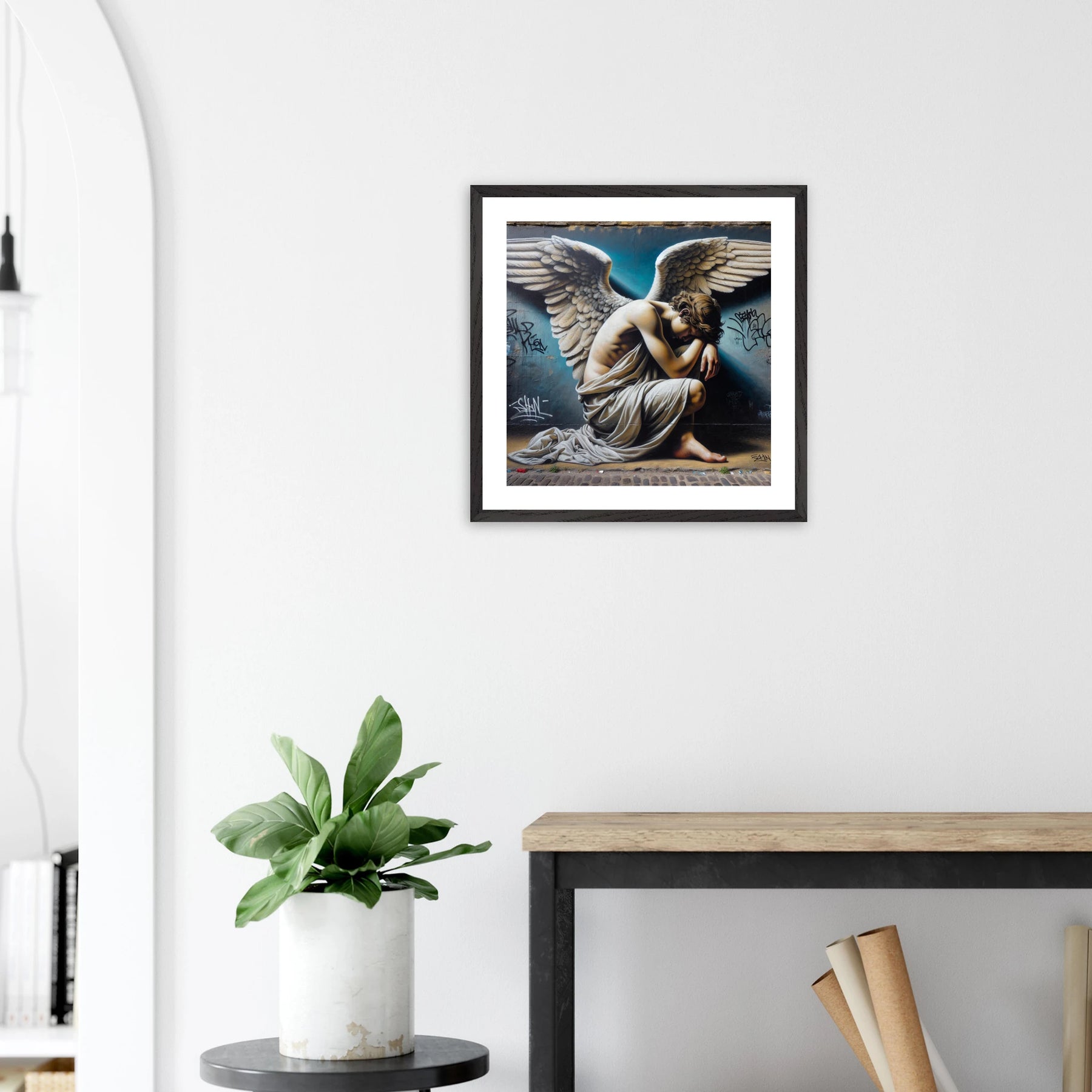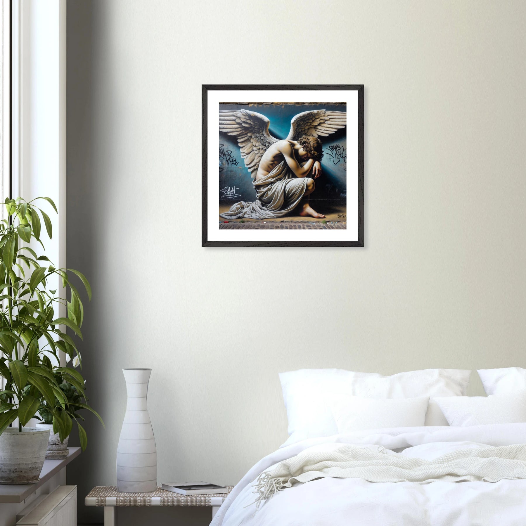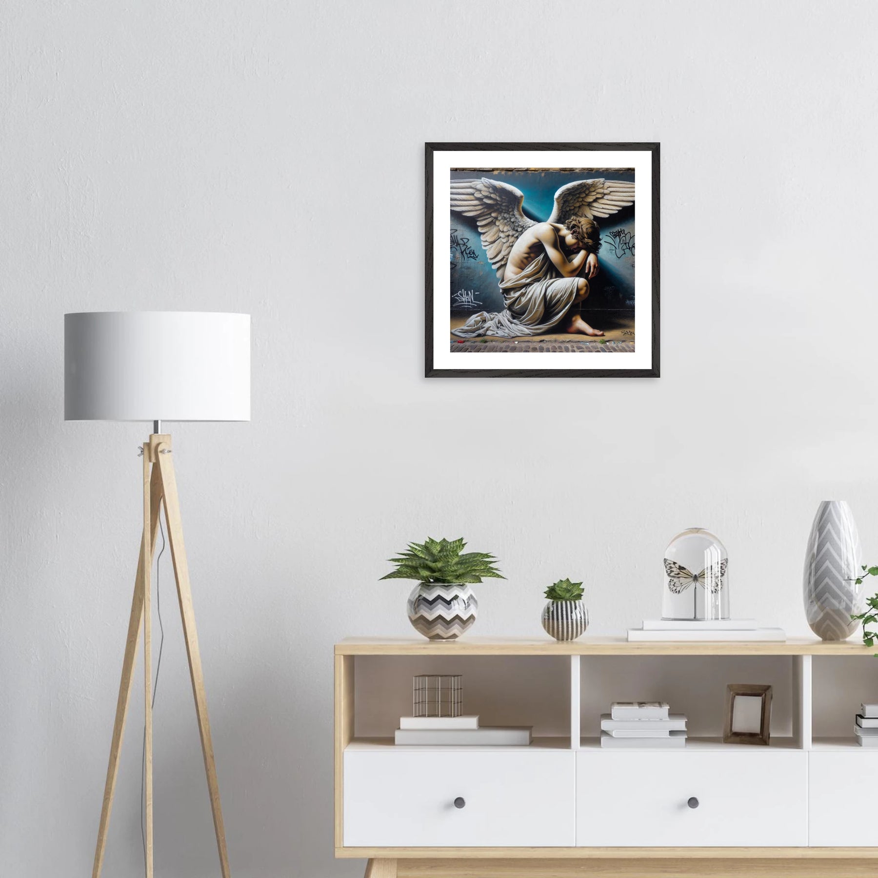 Dieses edle Premium-Poster aus der Urban Angel-Serie bringt urbane Tiefe und moderne Eleganz in deine vier Wände. Der FSC-zertifizierte Holzrahmen und das matte Kunstdruckpapier sorgen gemeinsam für eine hochwertige, langlebige Präsentation deines Motivs.