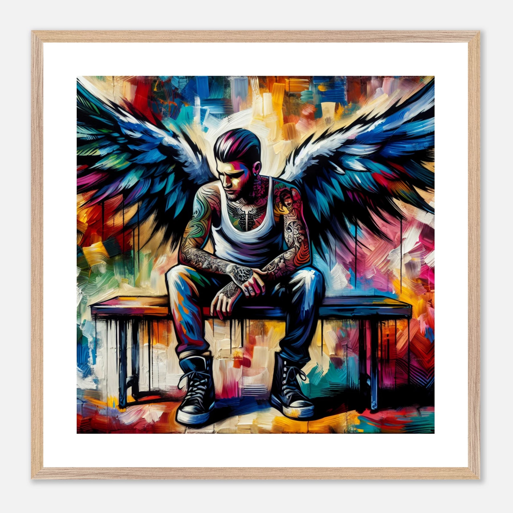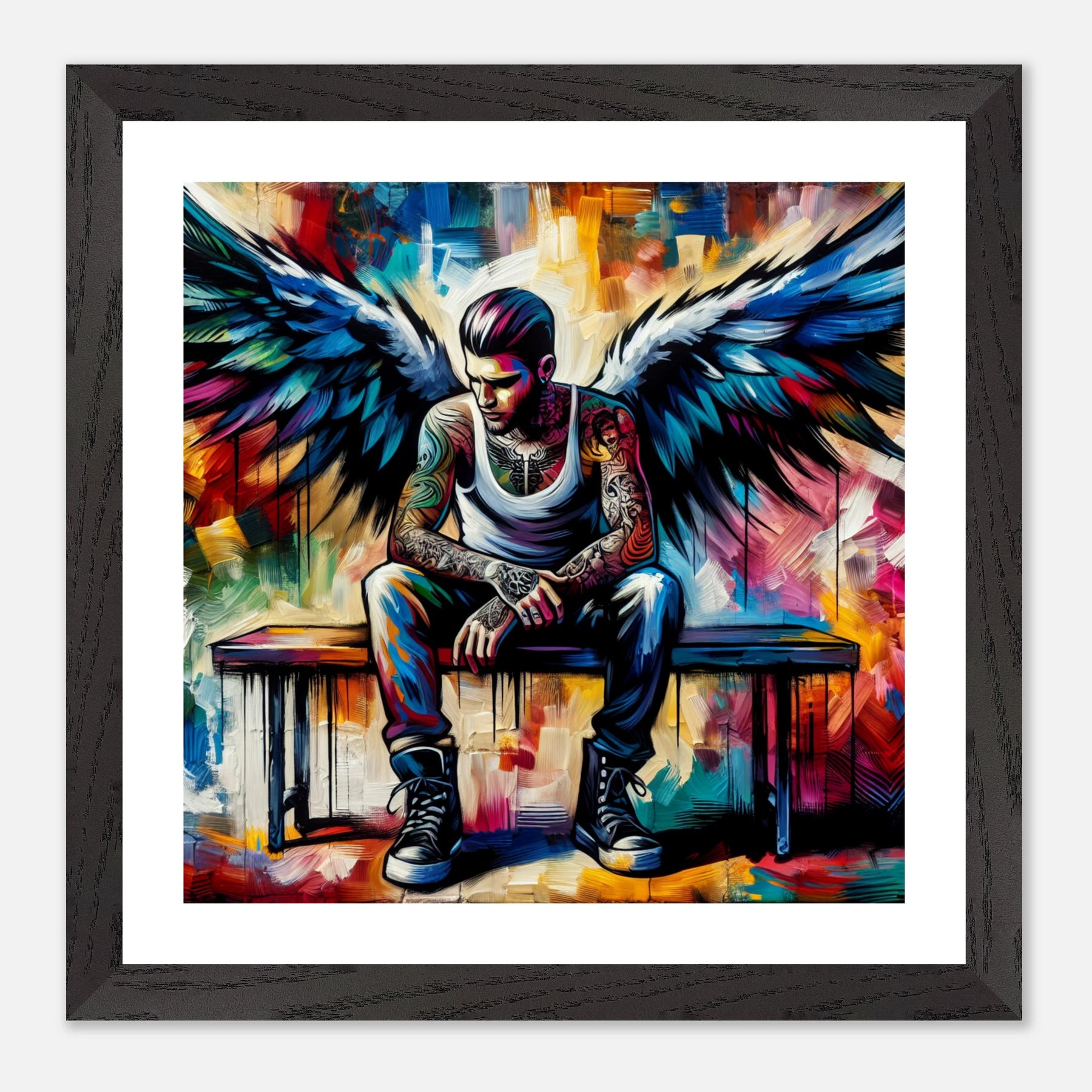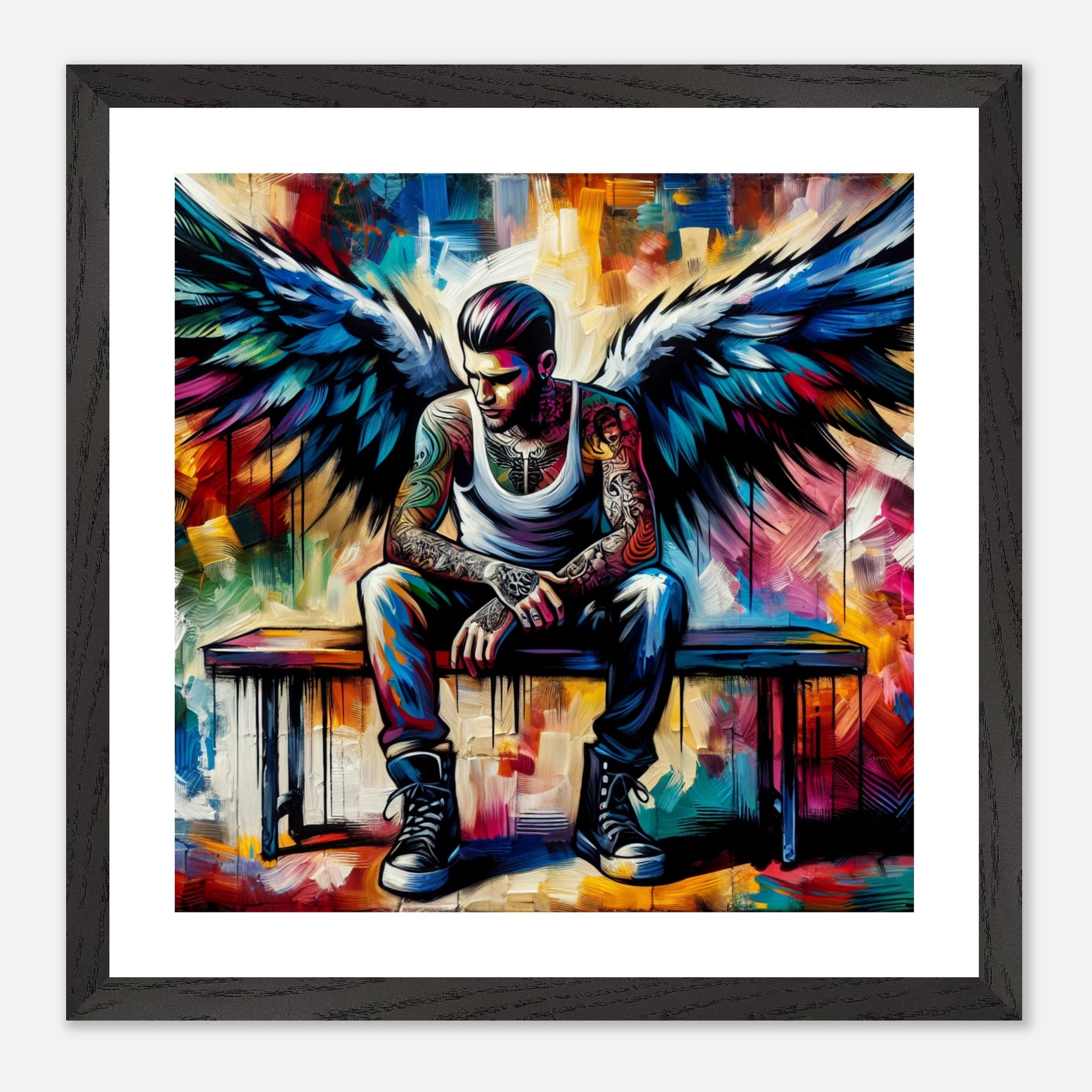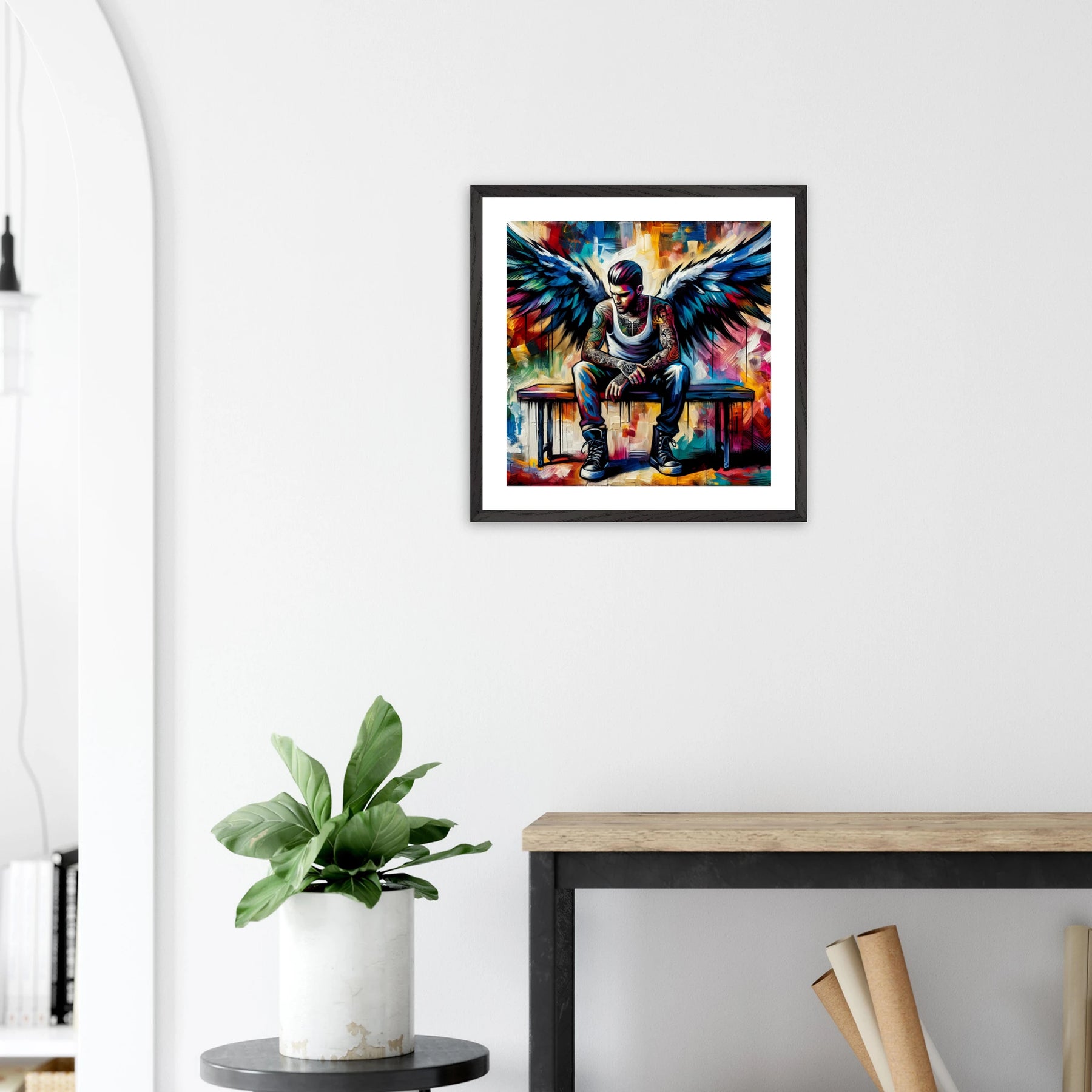 Dieses edle Premium-Poster aus der Urban Angel-Serie bringt urbane Tiefe und moderne Eleganz in deine vier Wände. Der FSC-zertifizierte Holzrahmen und das matte Kunstdruckpapier sorgen gemeinsam für eine hochwertige, langlebige Präsentation deines Motivs.