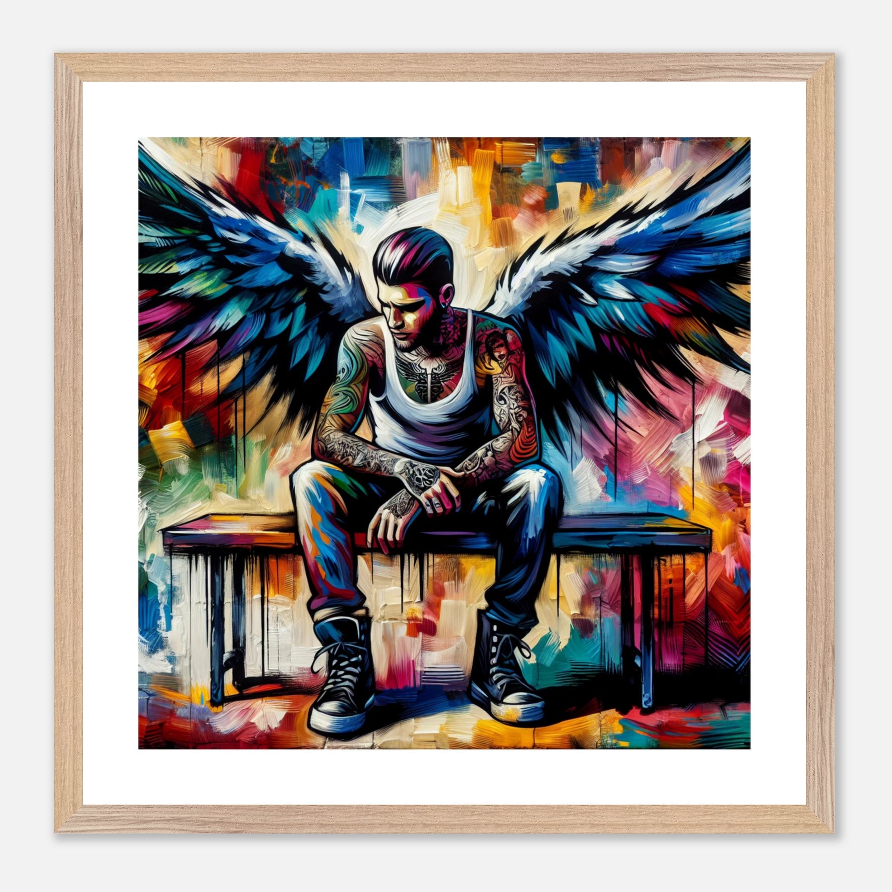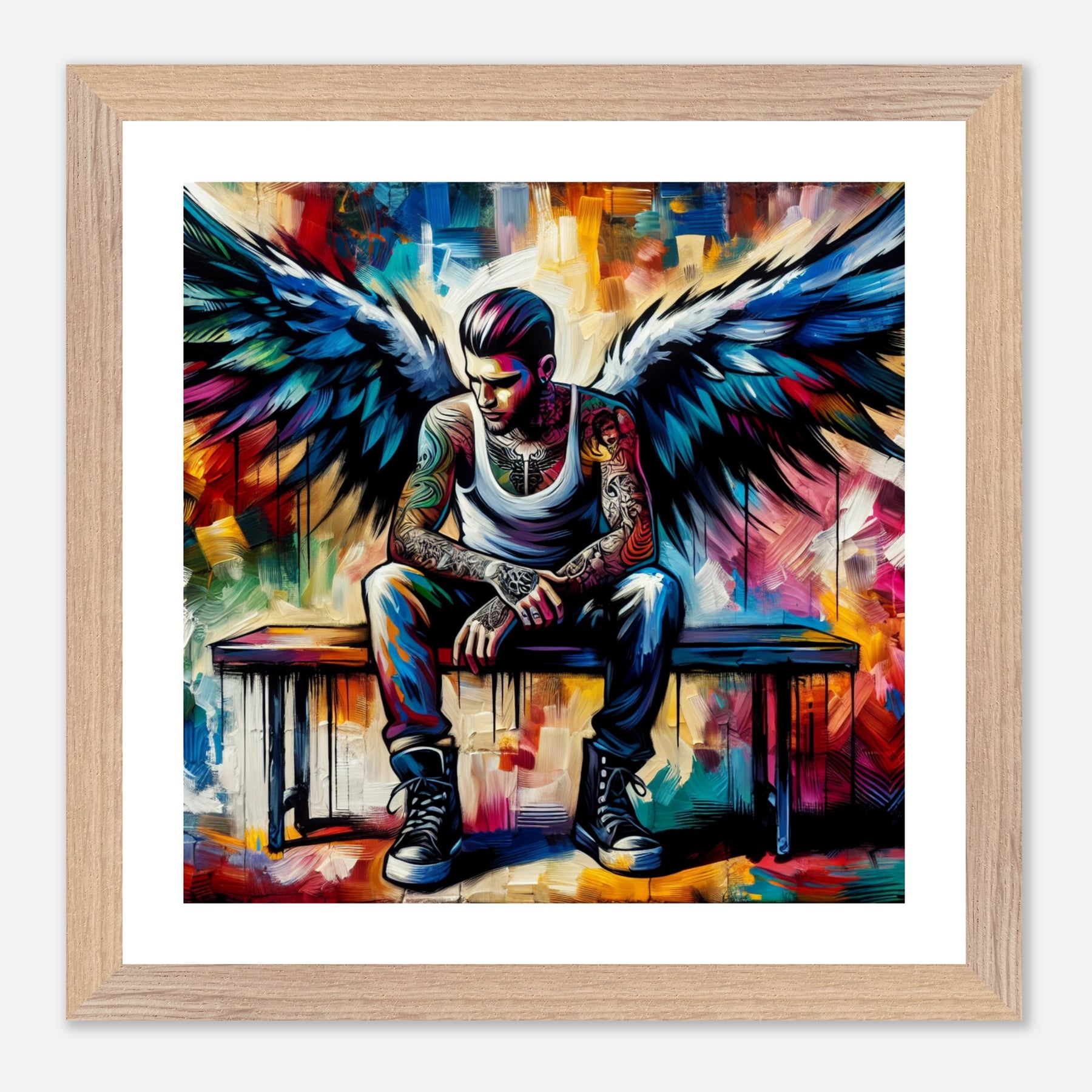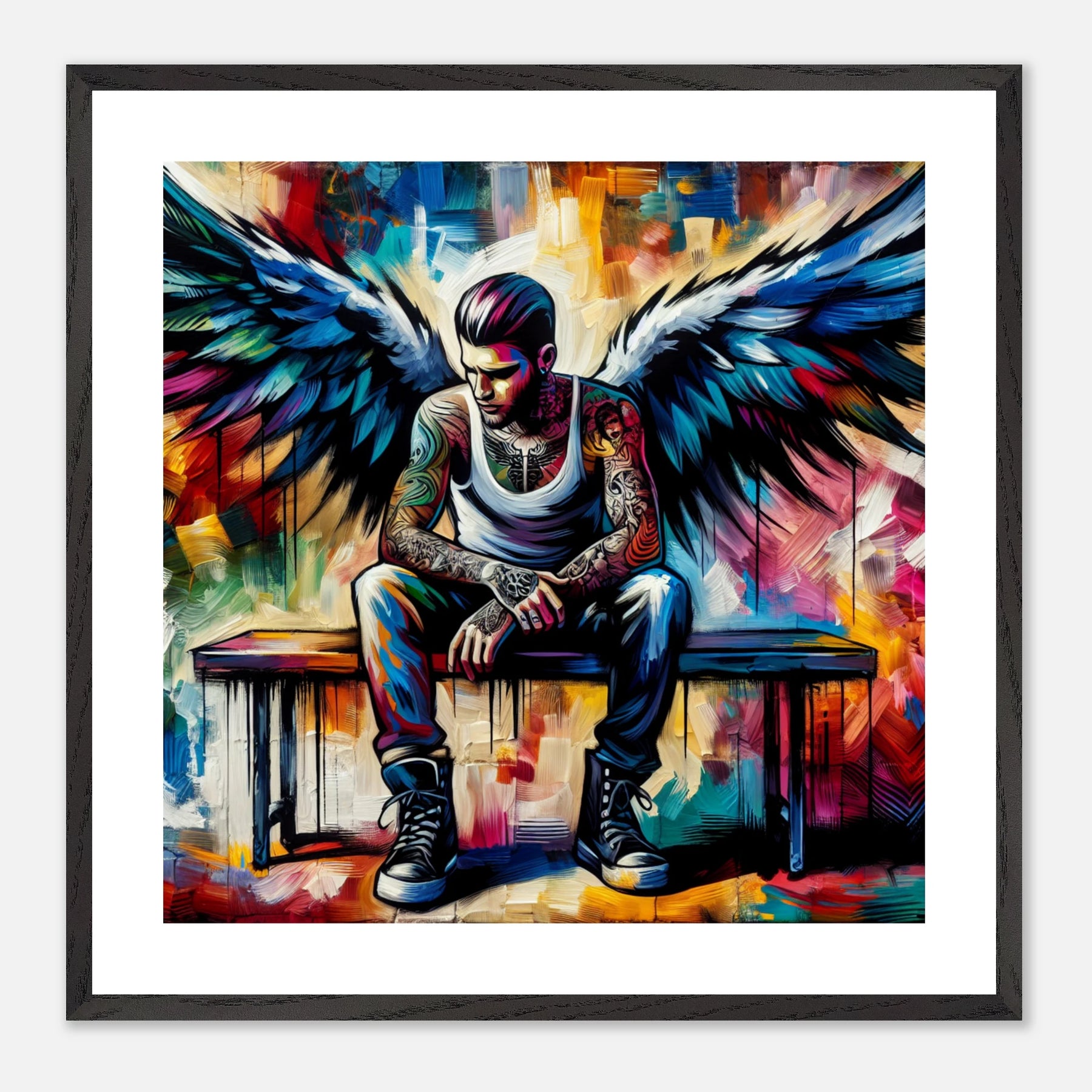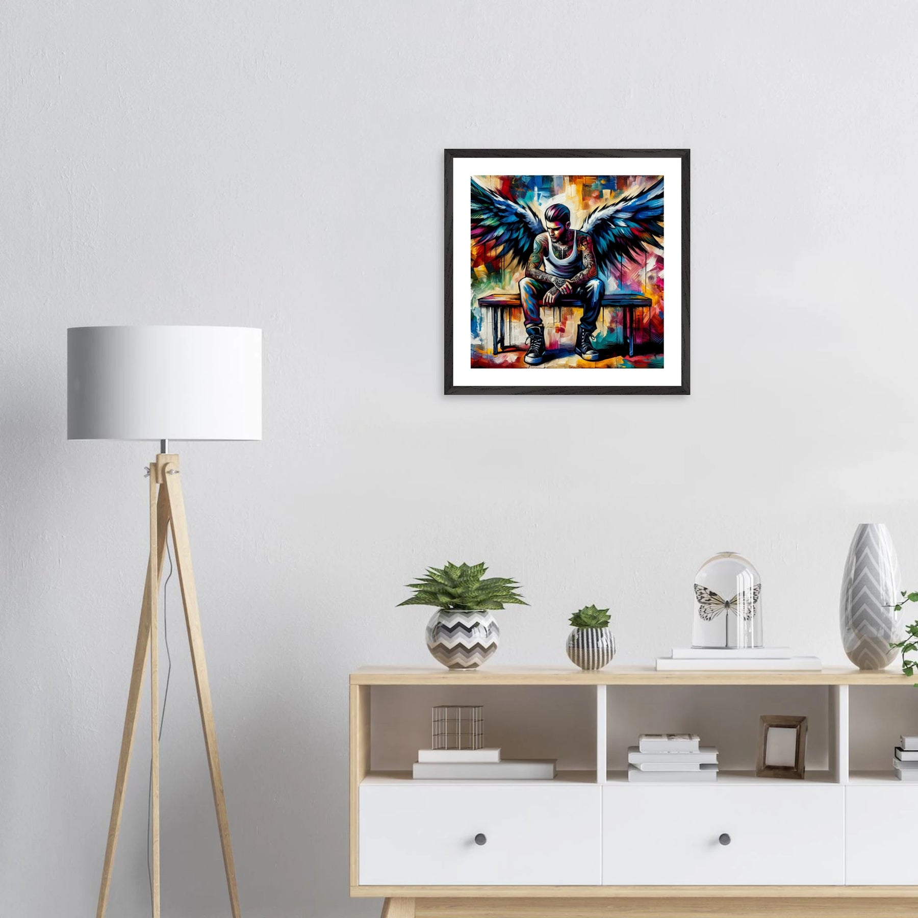 Dieses edle Premium-Poster aus der Urban Angel-Serie bringt urbane Tiefe und moderne Eleganz in deine vier Wände. Der FSC-zertifizierte Holzrahmen und das matte Kunstdruckpapier sorgen gemeinsam für eine hochwertige, langlebige Präsentation deines Motivs.