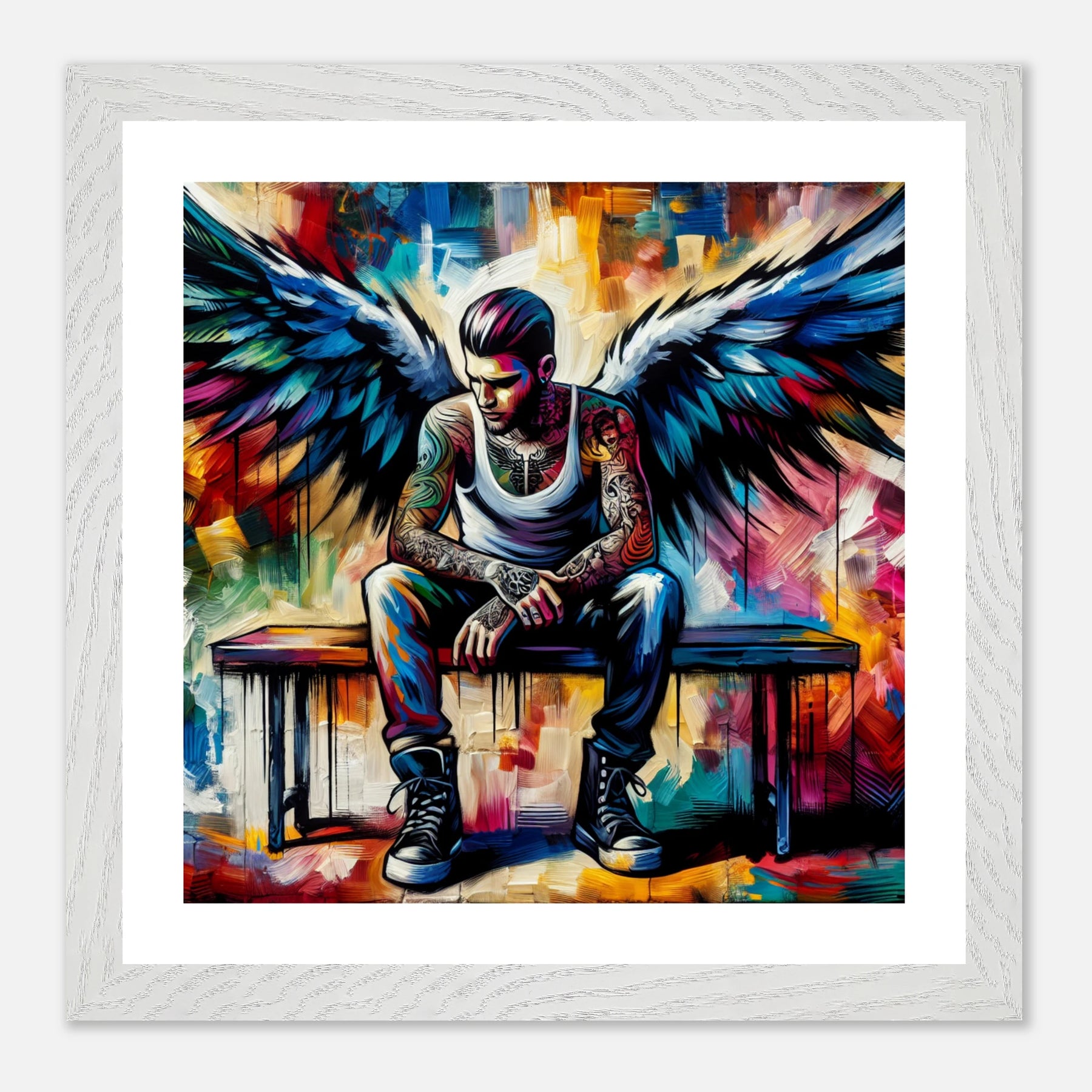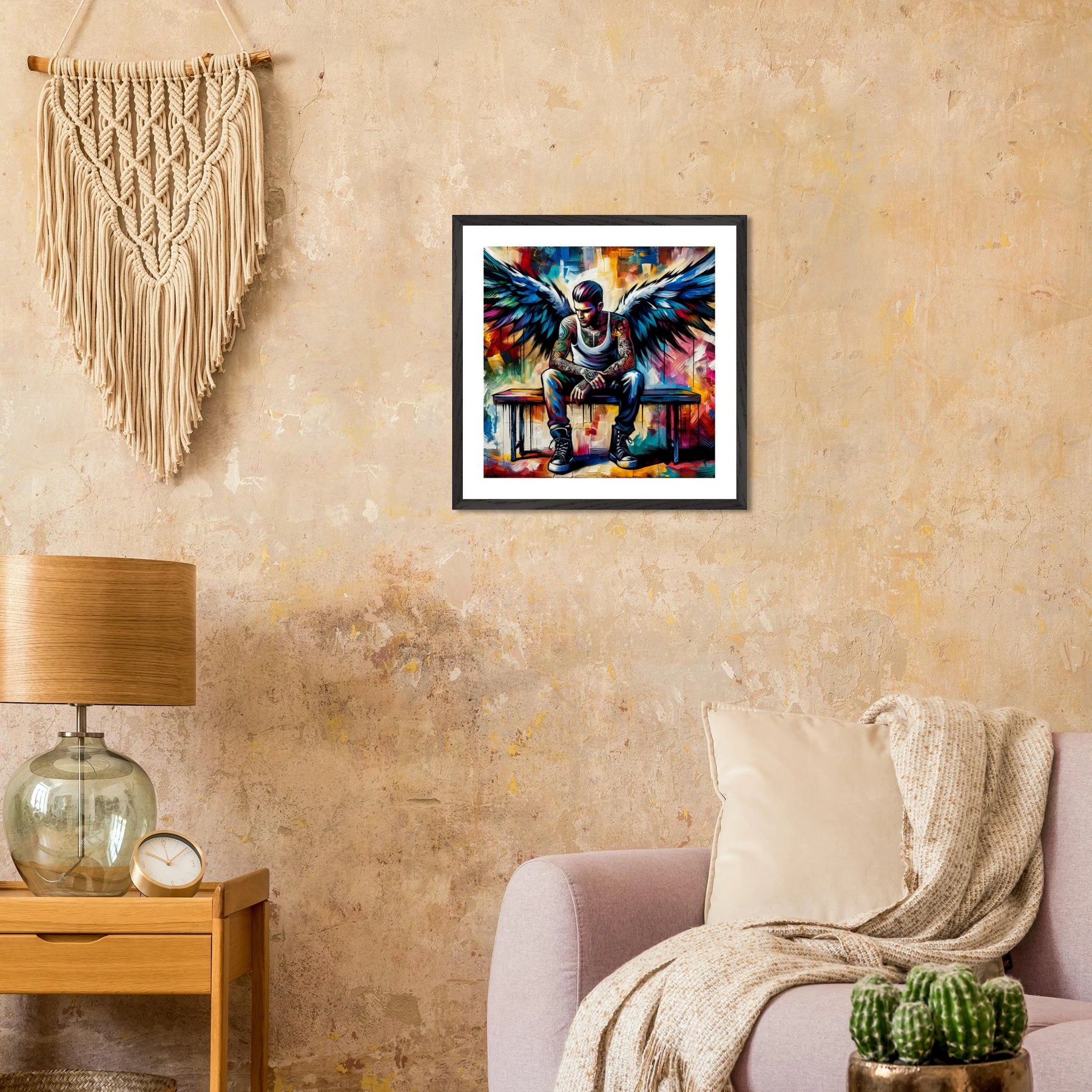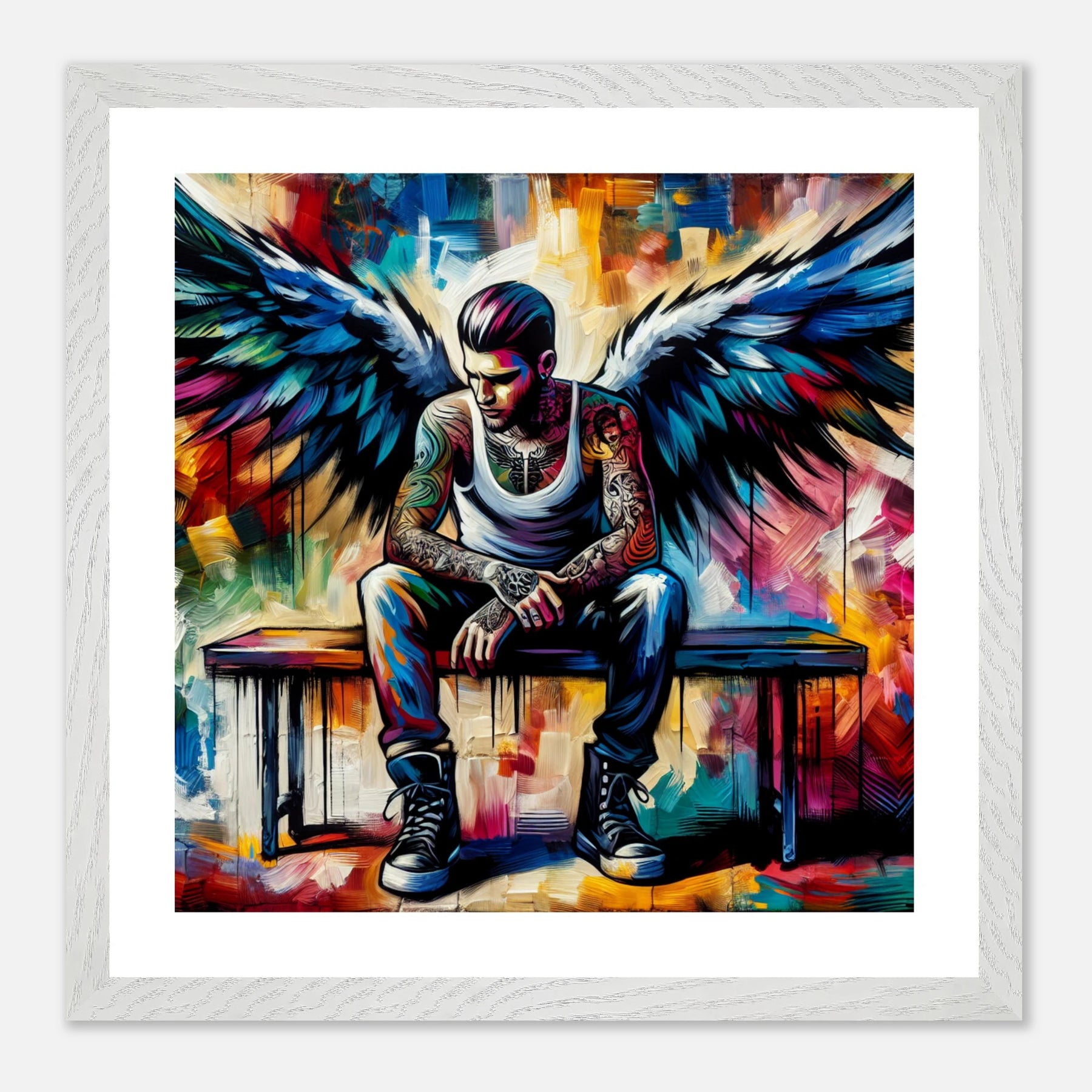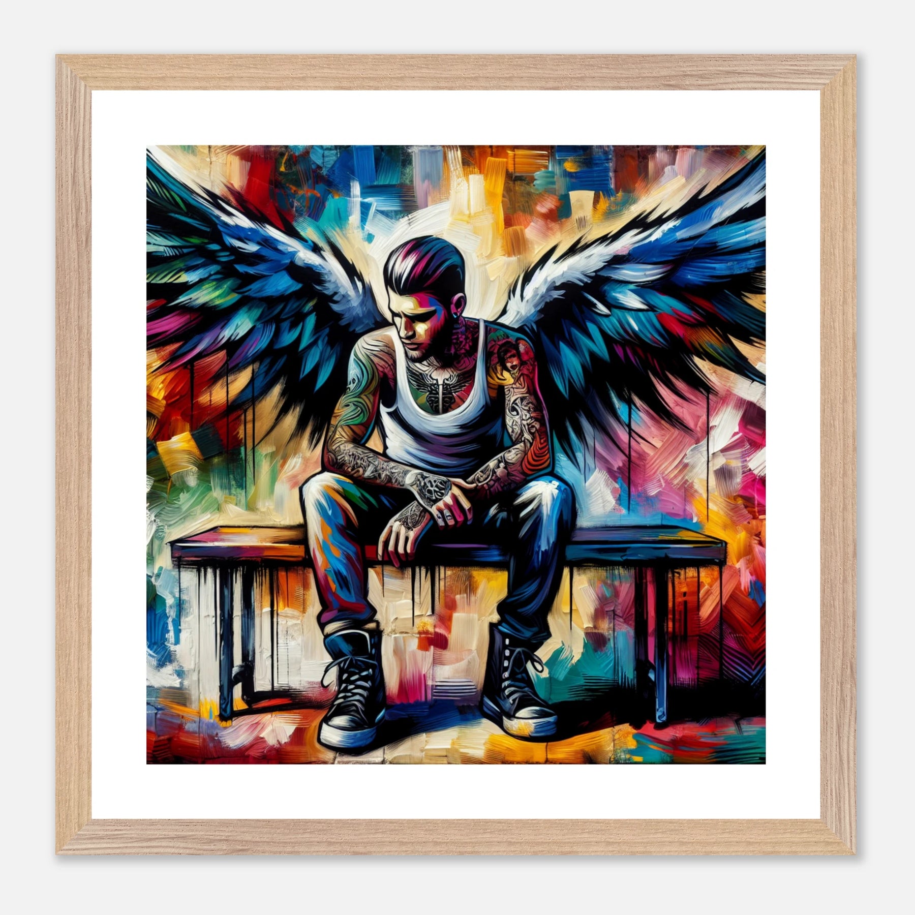 Dieses edle Premium-Poster aus der Urban Angel-Serie bringt urbane Tiefe und moderne Eleganz in deine vier Wände. Der FSC-zertifizierte Holzrahmen und das matte Kunstdruckpapier sorgen gemeinsam für eine hochwertige, langlebige Präsentation deines Motivs.