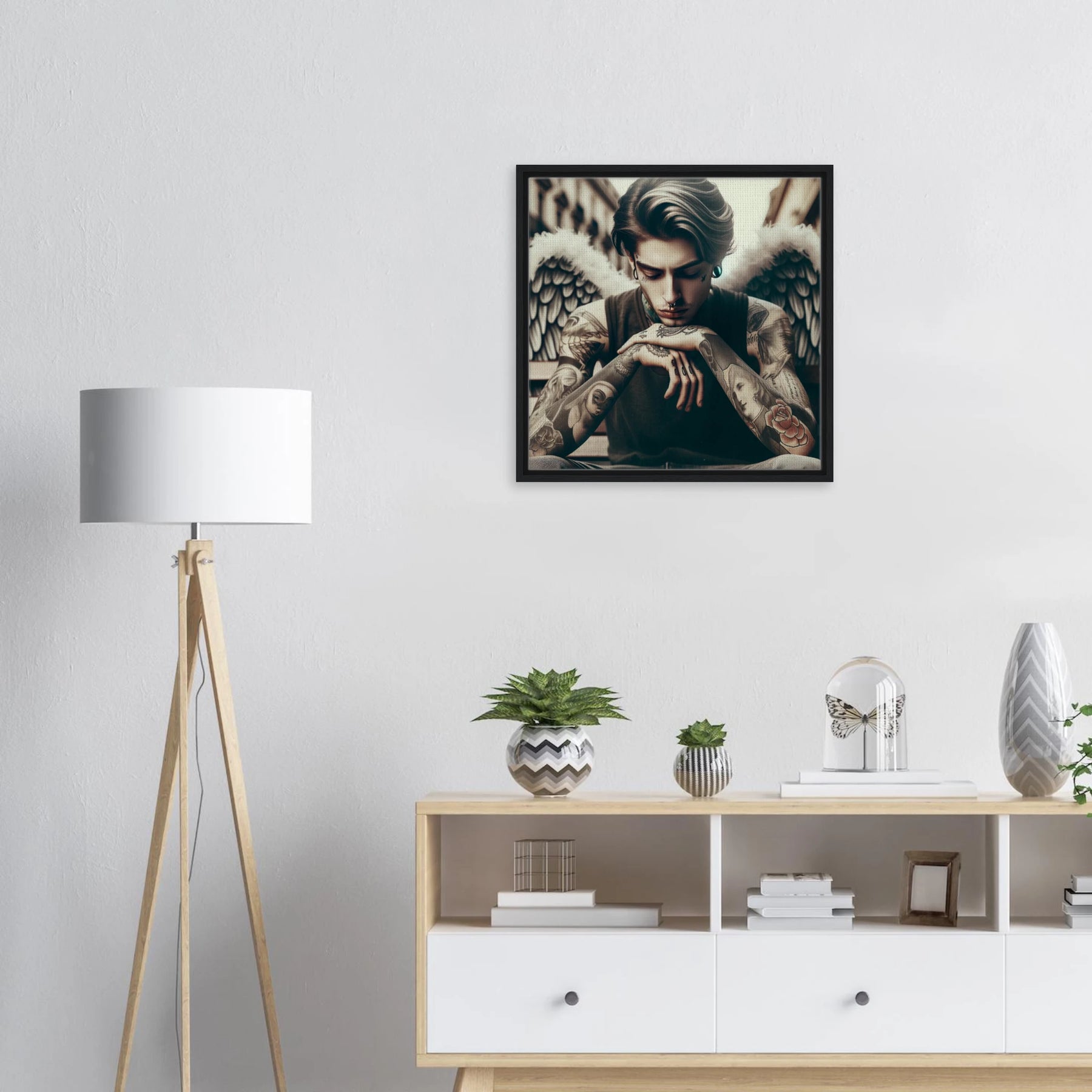 Diese gerahmte Leinwand zeigt einen Engel aus der Urban Angel-Serie – kraftvoll, ästhetisch und voller Tiefe. Die strukturierte Oberfläche bringt das Motiv besonders lebendig zur Geltung, der hochwertige Rahmen sorgt für eine elegante Galerie-Optik.