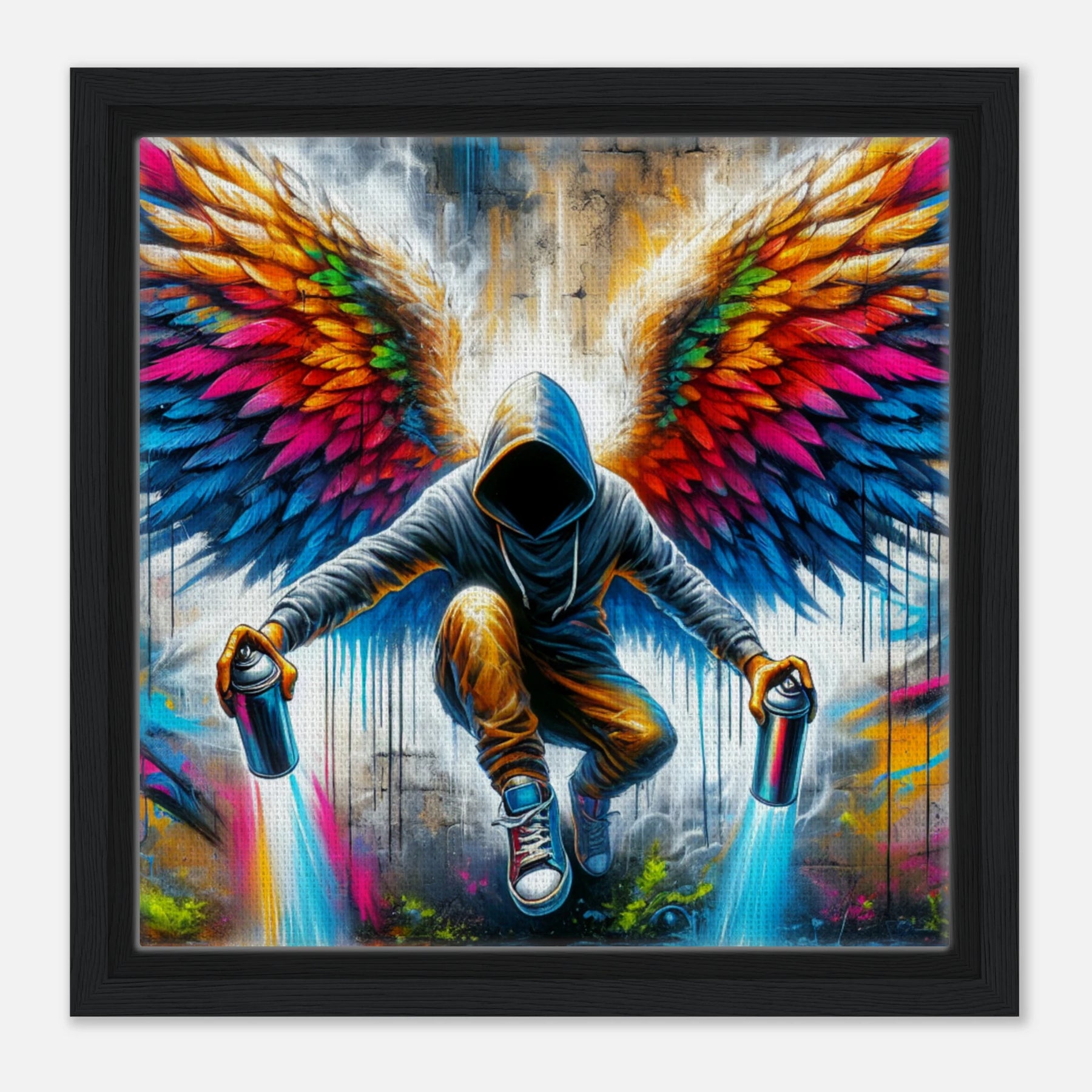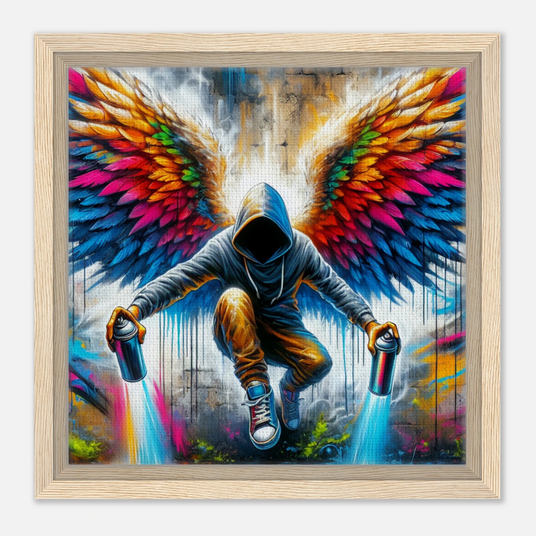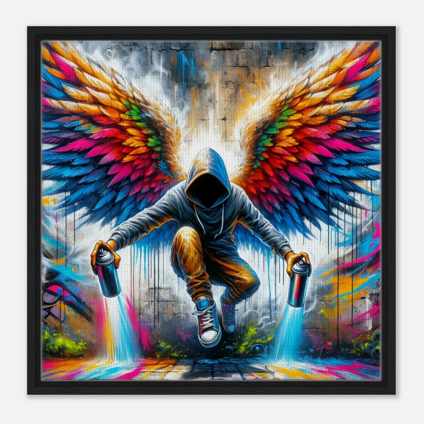 Diese gerahmte Leinwand zeigt einen Engel aus der Urban Angel-Serie – kraftvoll, ästhetisch und voller Tiefe. Die strukturierte Oberfläche bringt das Motiv besonders lebendig zur Geltung, der hochwertige Rahmen sorgt für eine elegante Galerie-Optik.