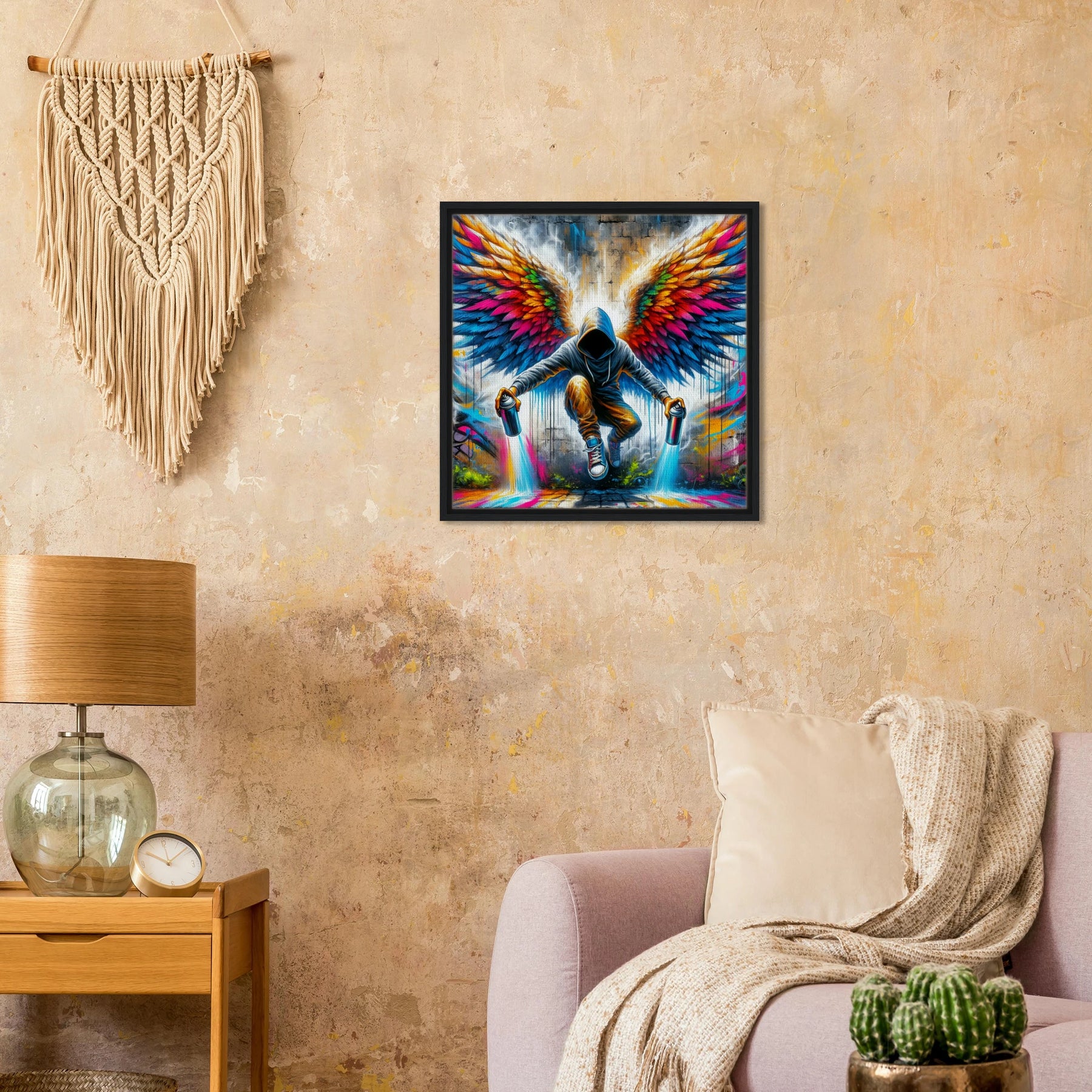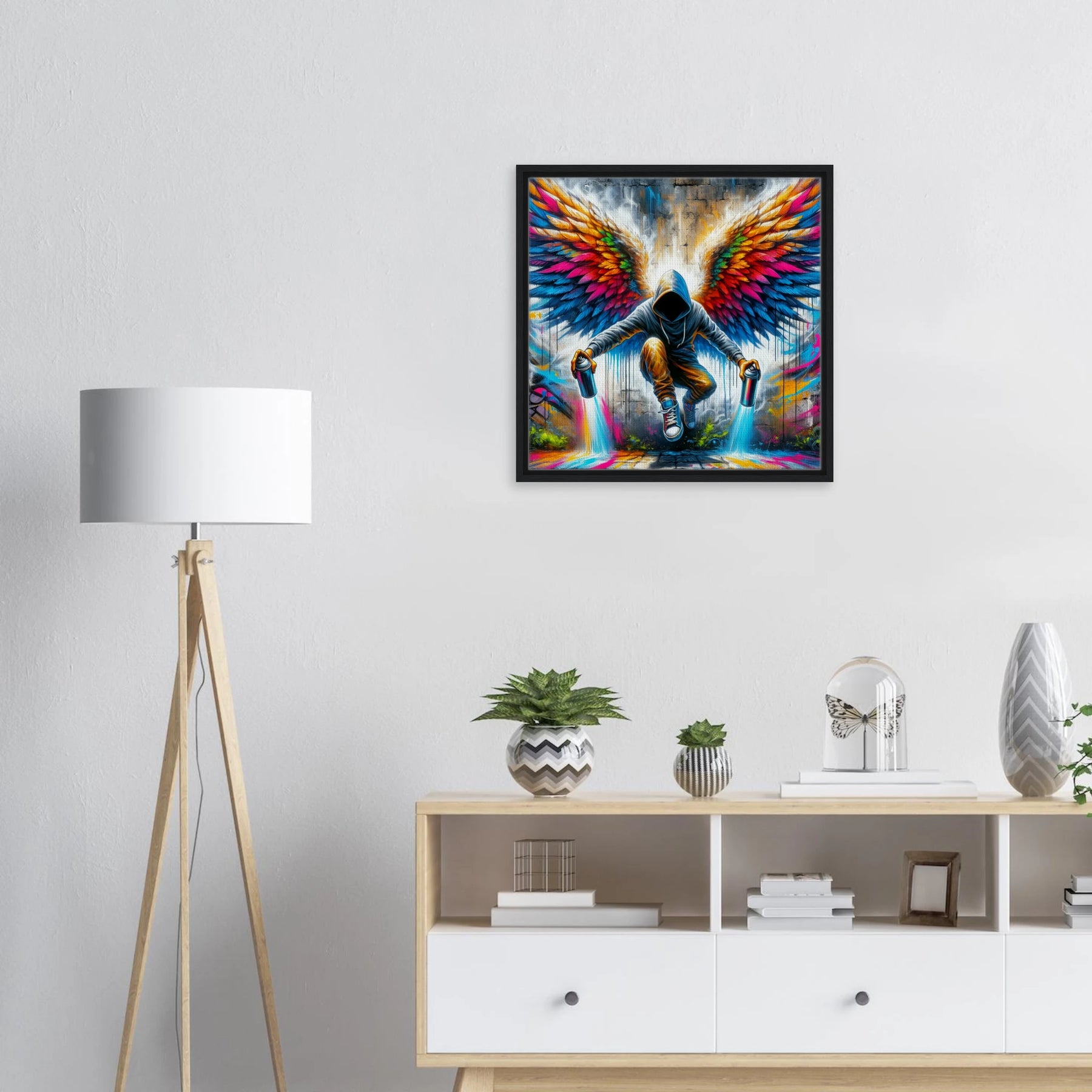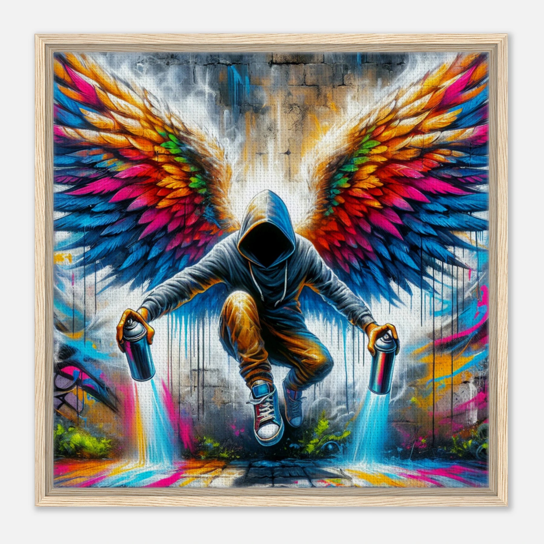 Diese gerahmte Leinwand zeigt einen Engel aus der Urban Angel-Serie – kraftvoll, ästhetisch und voller Tiefe. Die strukturierte Oberfläche bringt das Motiv besonders lebendig zur Geltung, der hochwertige Rahmen sorgt für eine elegante Galerie-Optik.