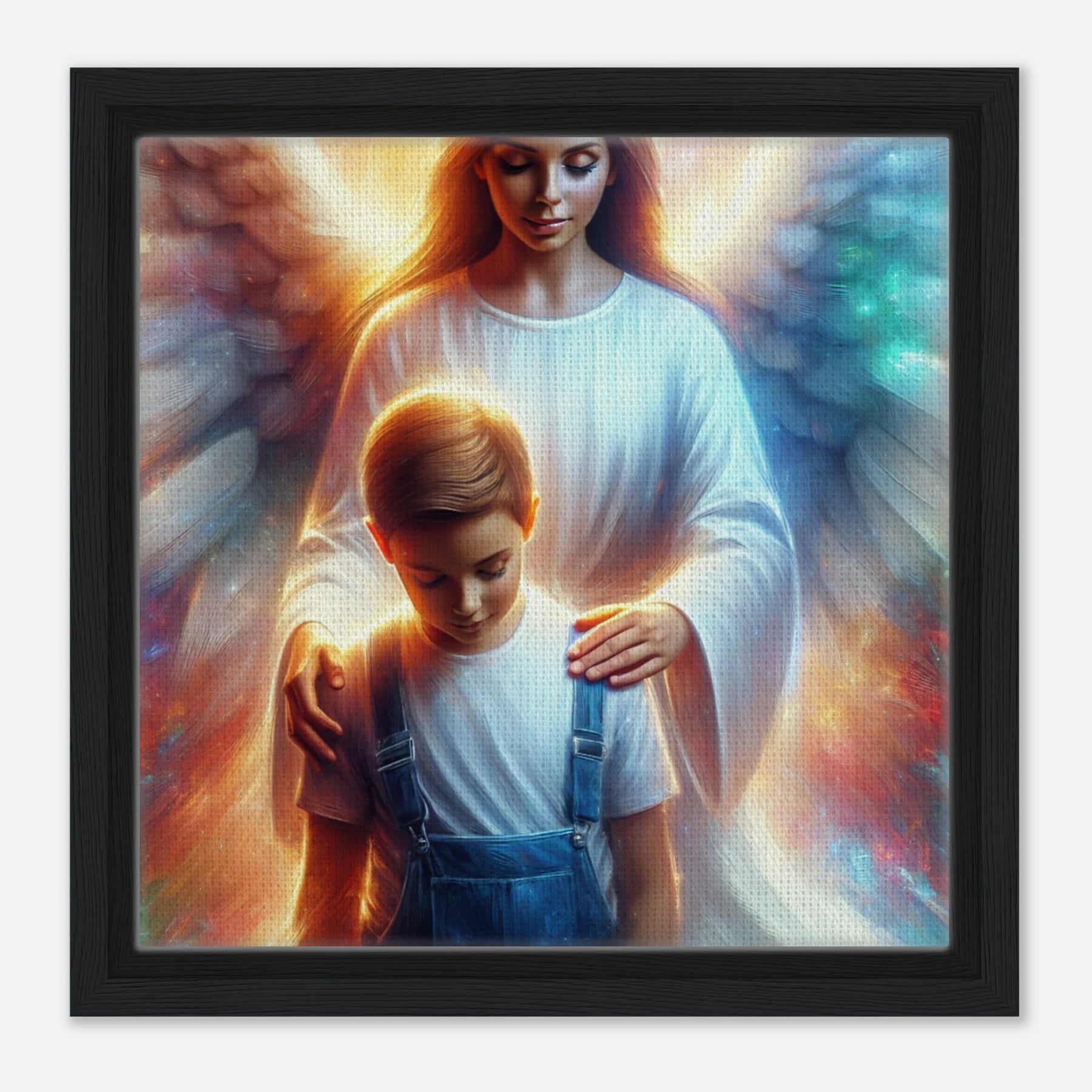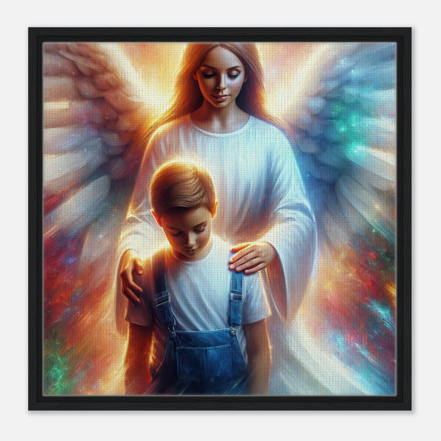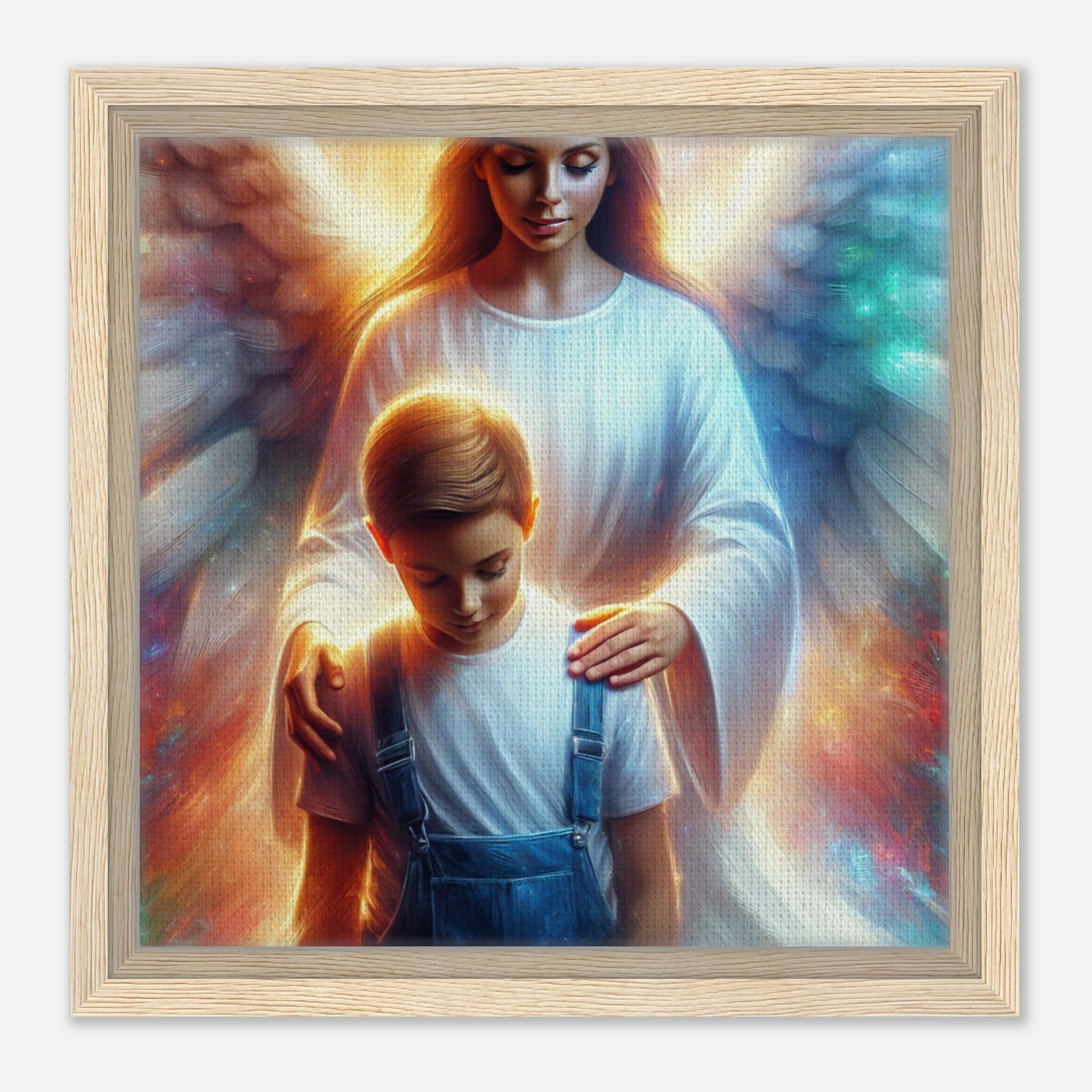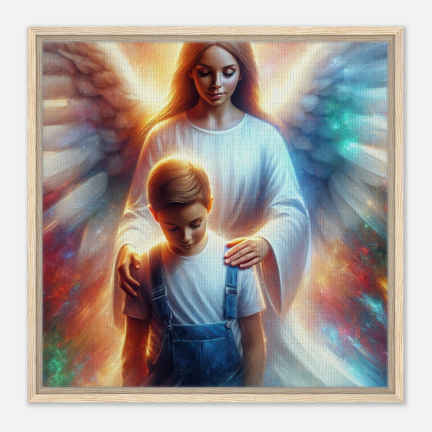 Diese gerahmte Leinwand zeigt einen Guardian Angel – lichtvoll, beschützend und voller Anmut. Die strukturierte Oberfläche bringt Wärme und Tiefe ins Motiv, während der edle Rahmen dem Bild seine stille Eleganz verleiht.