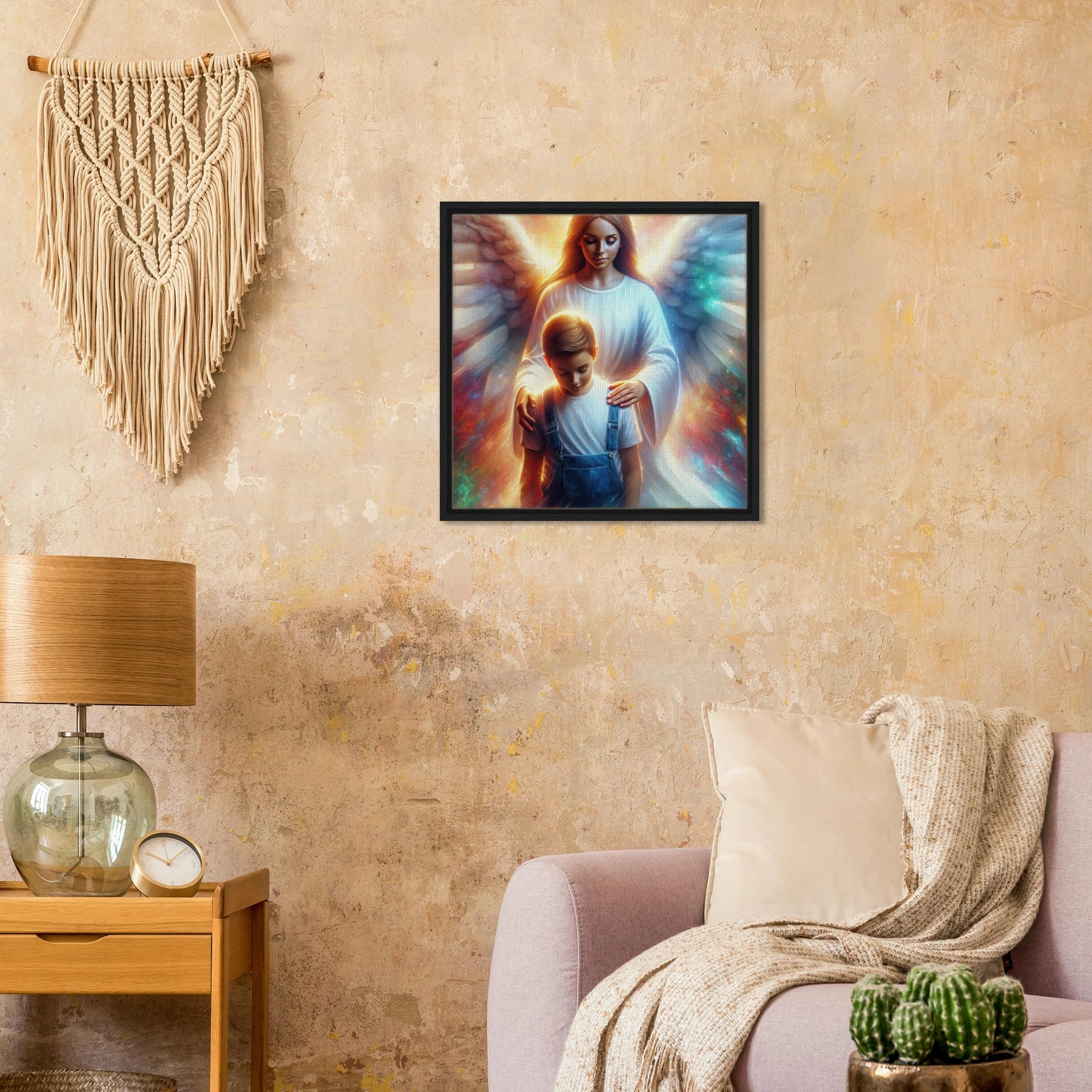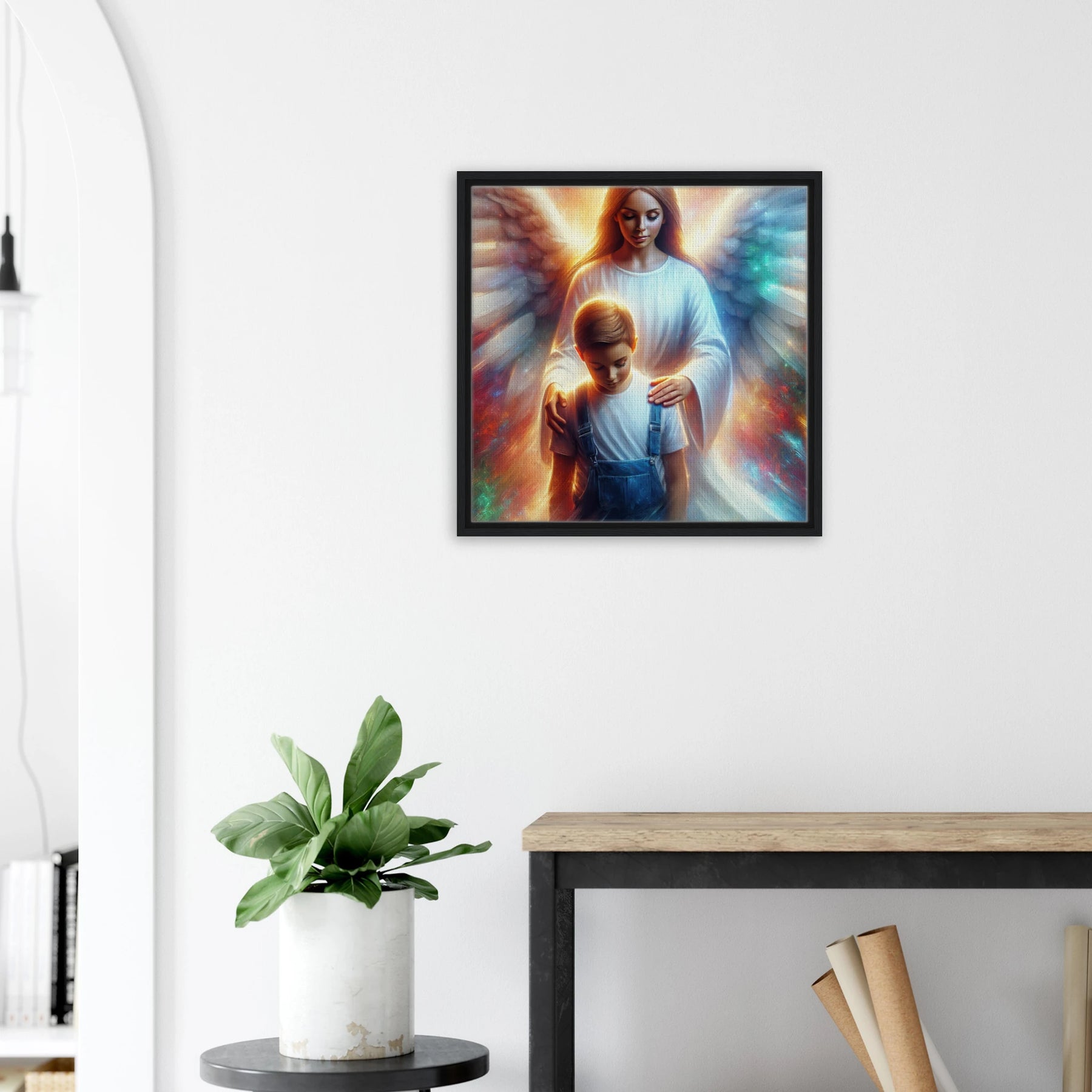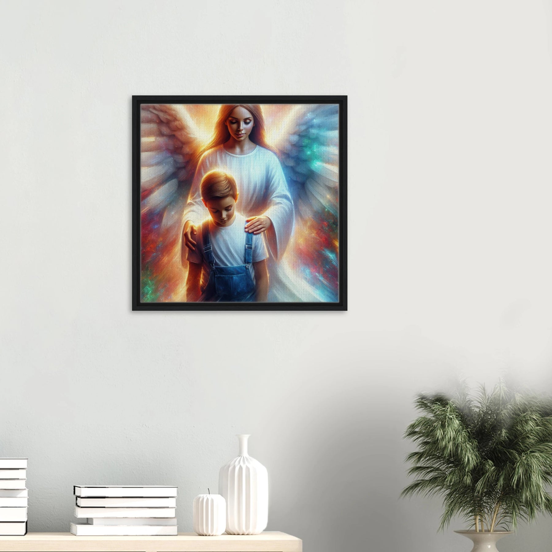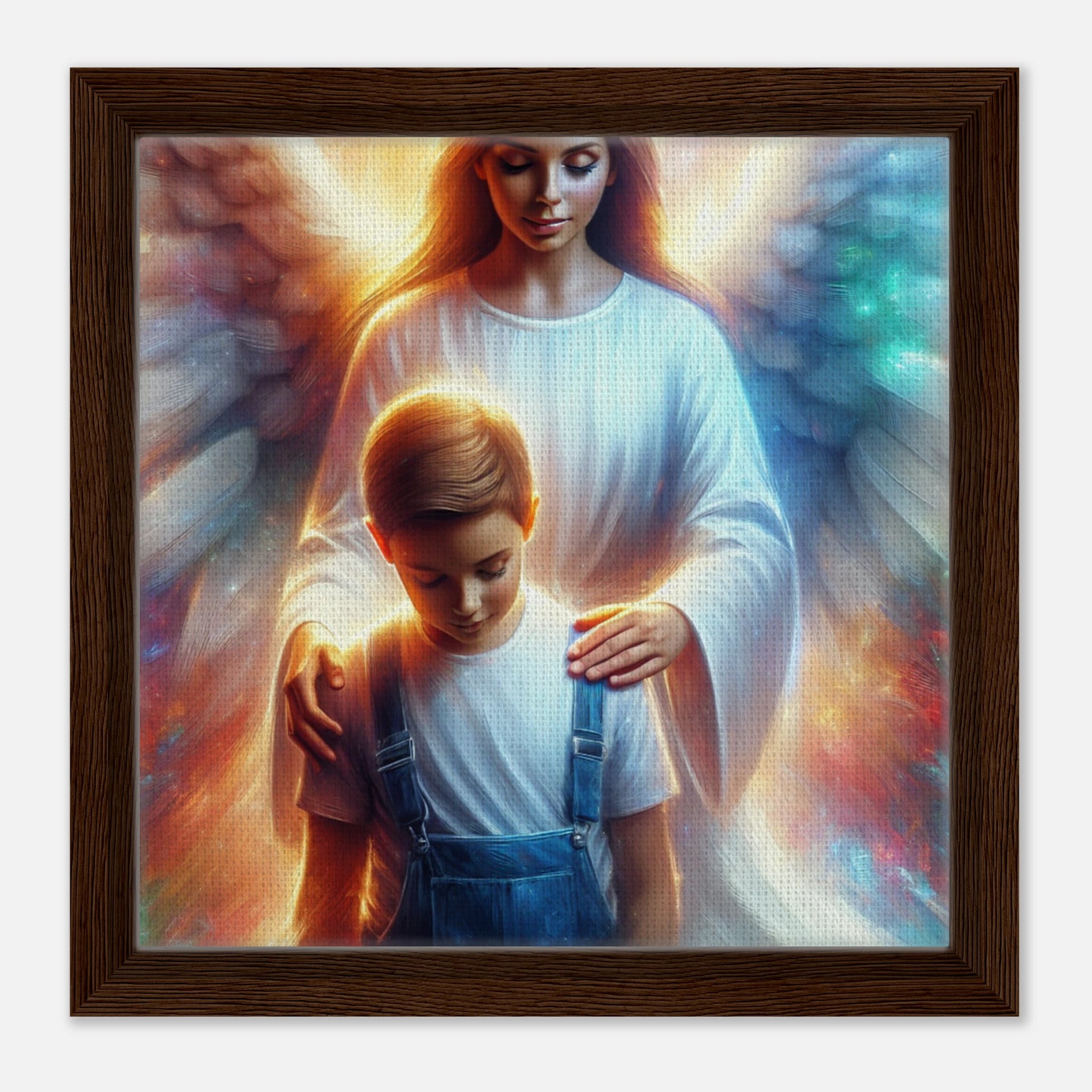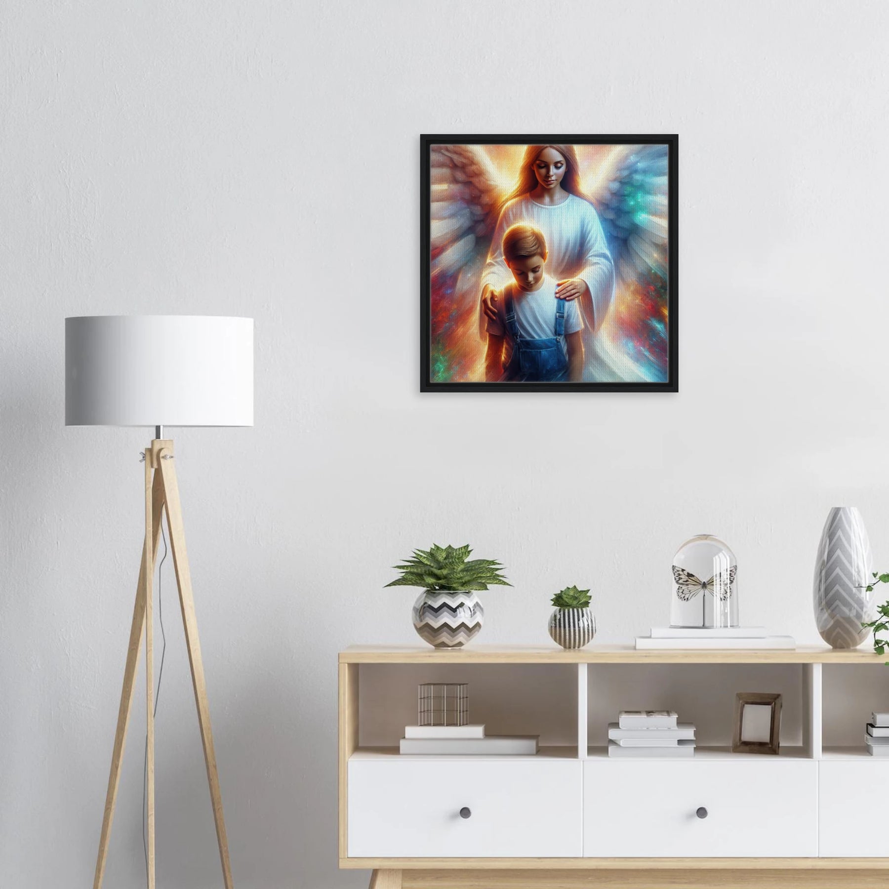 Diese gerahmte Leinwand zeigt einen Guardian Angel – lichtvoll, beschützend und voller Anmut. Die strukturierte Oberfläche bringt Wärme und Tiefe ins Motiv, während der edle Rahmen dem Bild seine stille Eleganz verleiht.