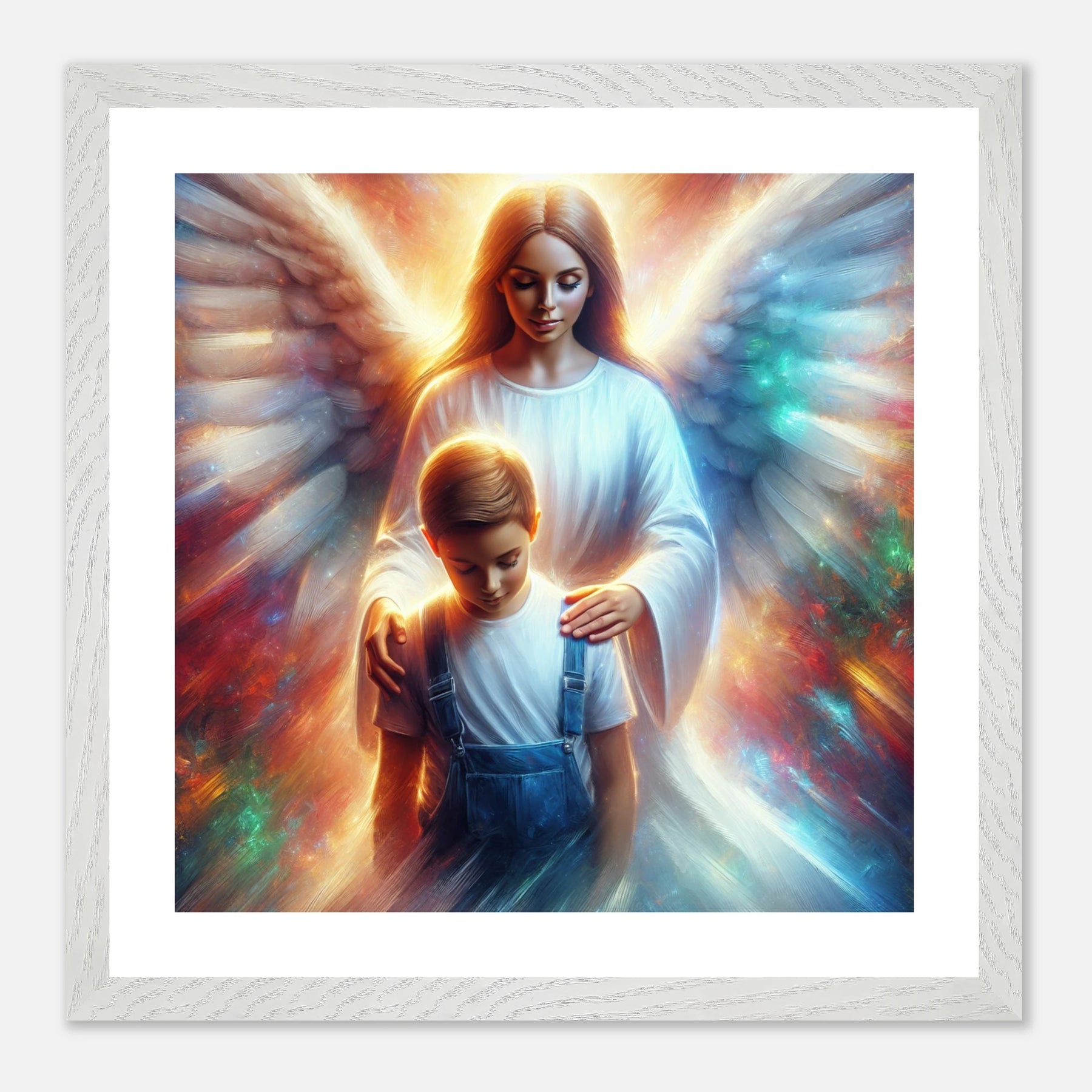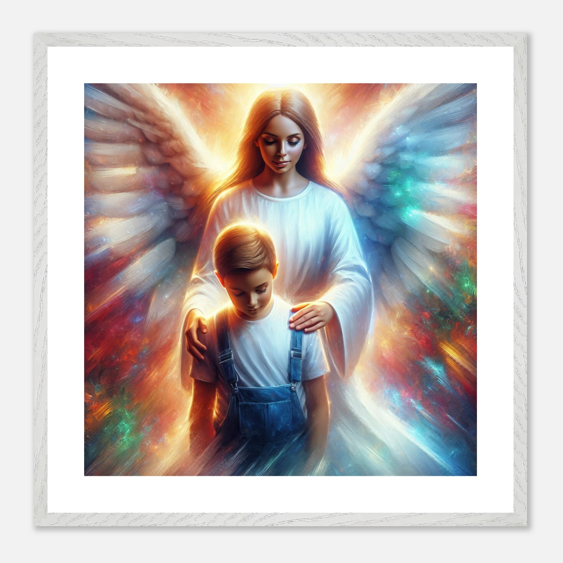 Schutzengel wacht über kleinen Jungen – berührendes Poster mit spiritueller Mutter-Kind-Symbolik