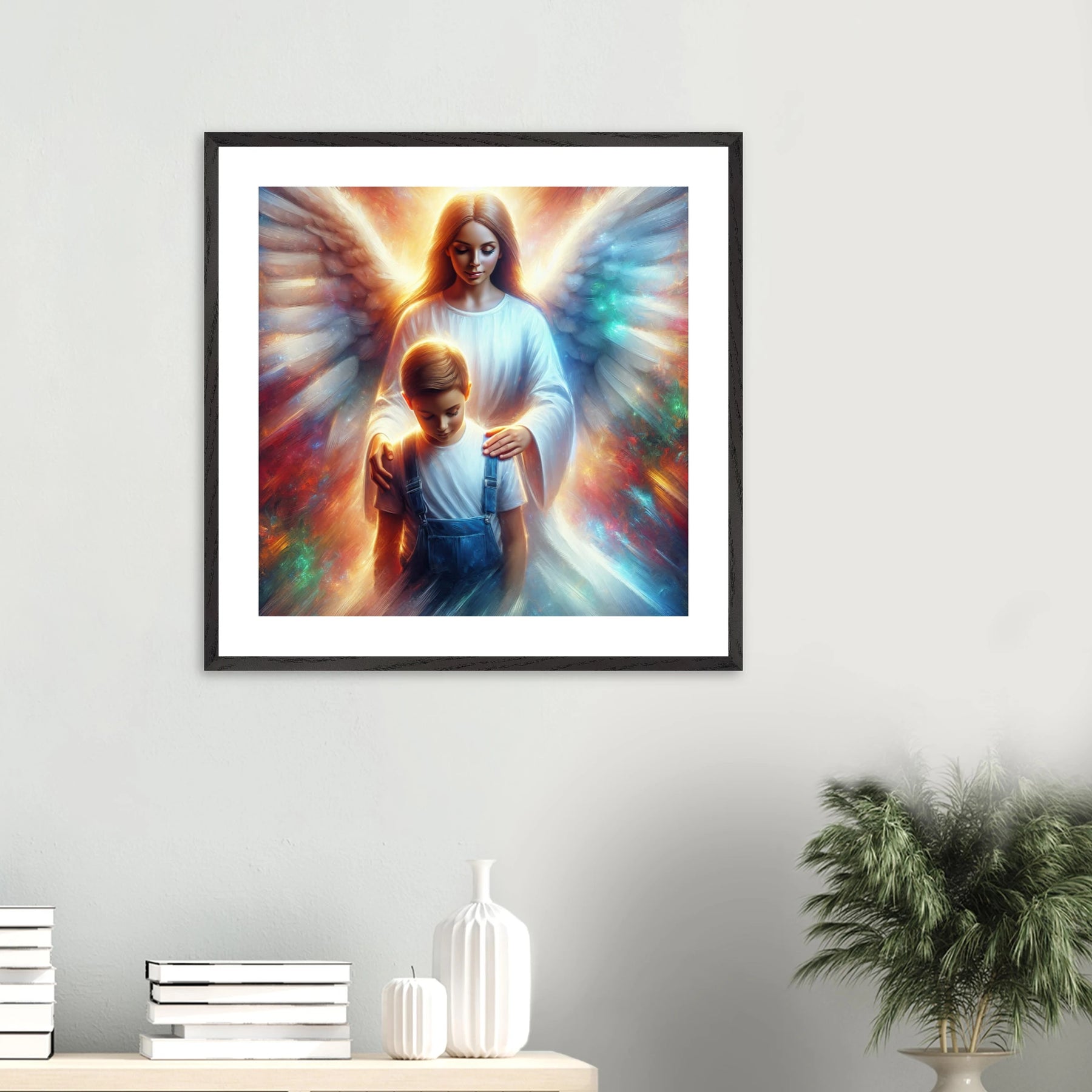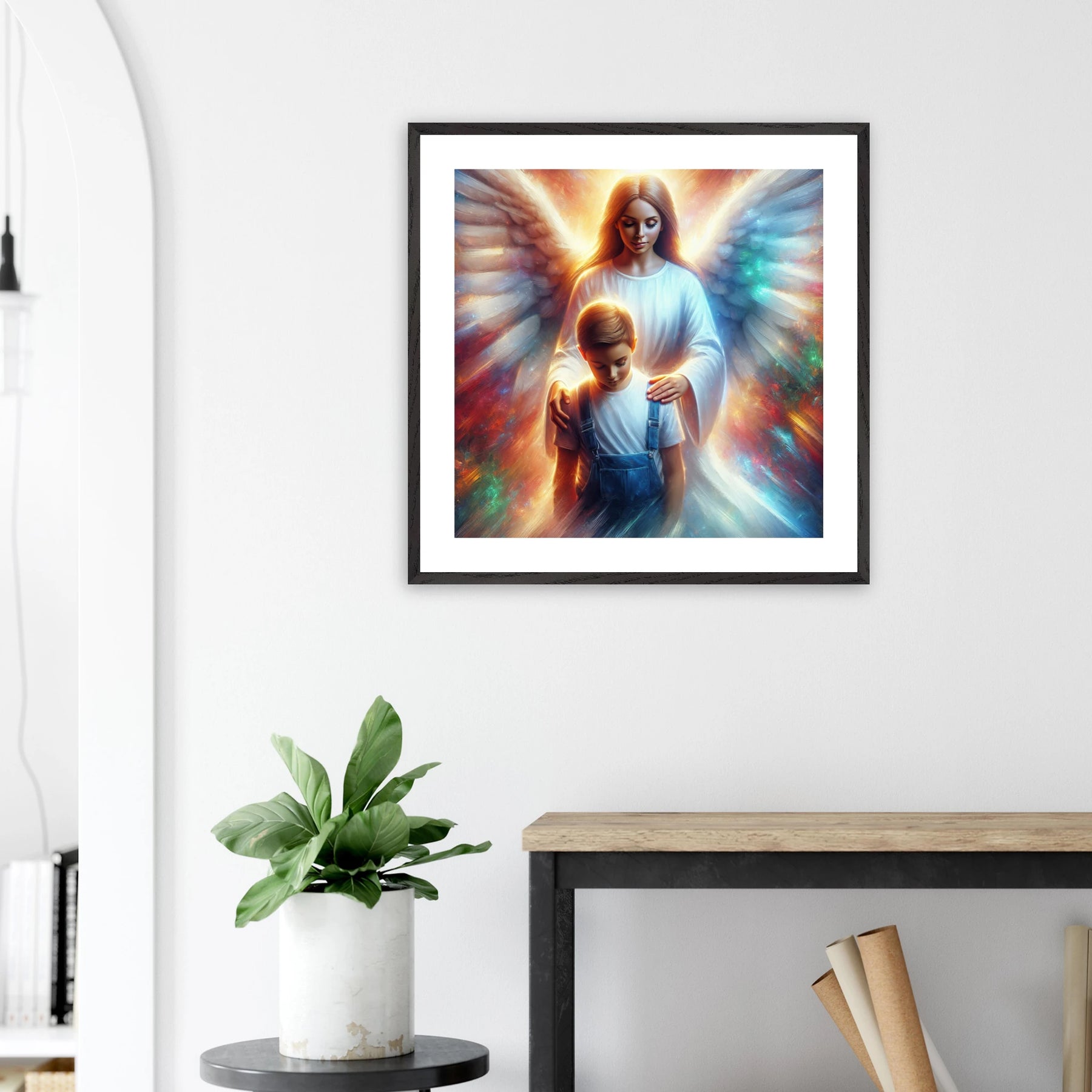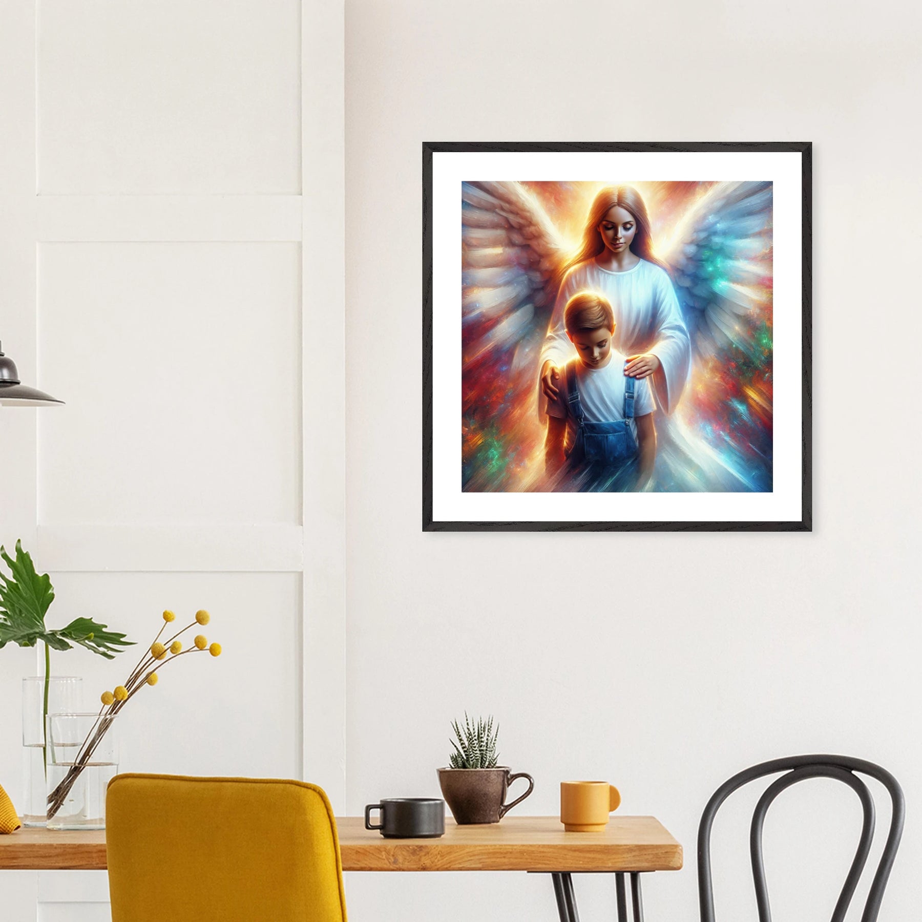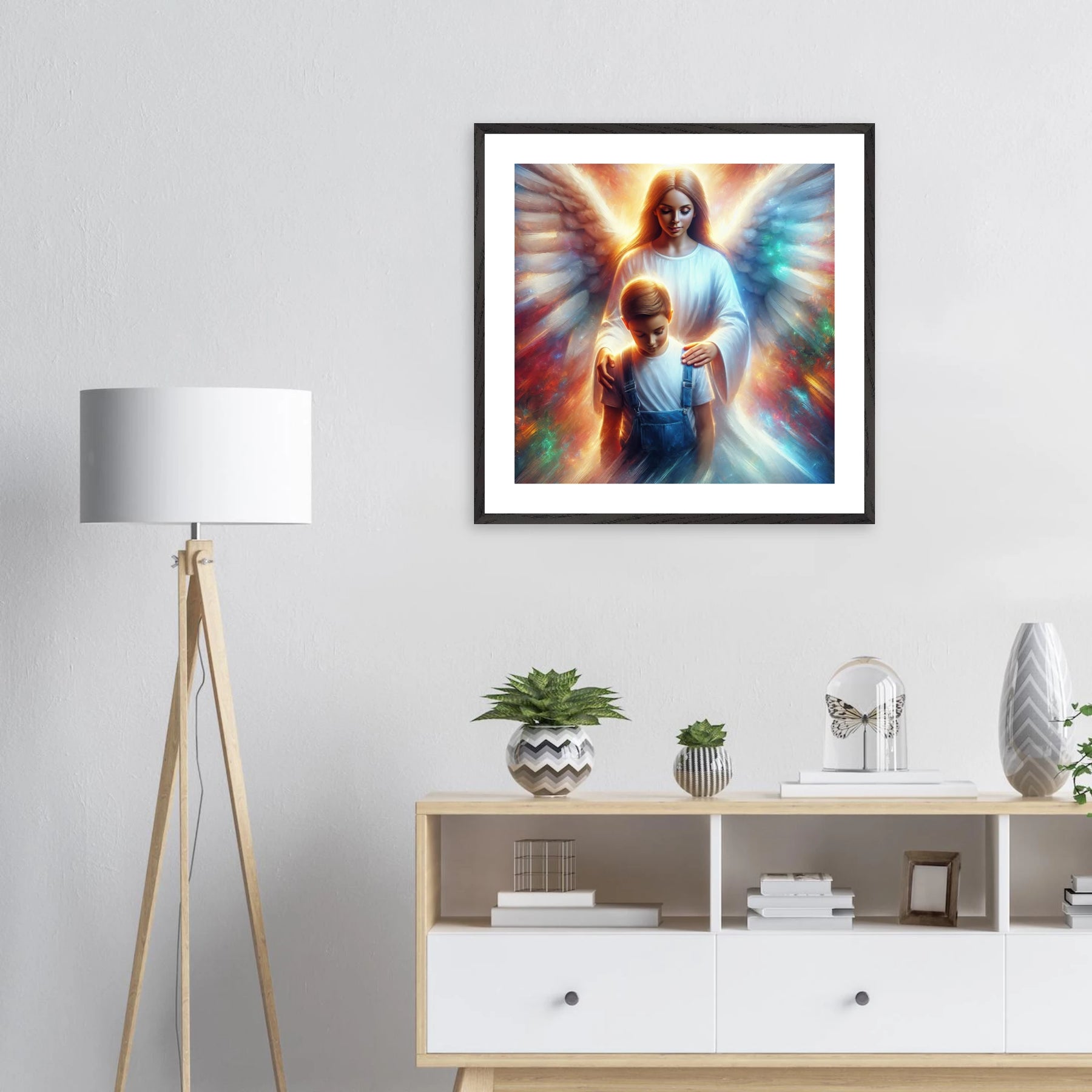 Dieses hochwertige Premium-Poster aus der Guardian Angel-Serie bringt Harmonie, Schutz und Licht in deinen Raum. Der elegante Holzrahmen unterstreicht das Motiv, während das matte Kunstpapier für ein ruhiges, hochwertiges Druckbild sorgt.
