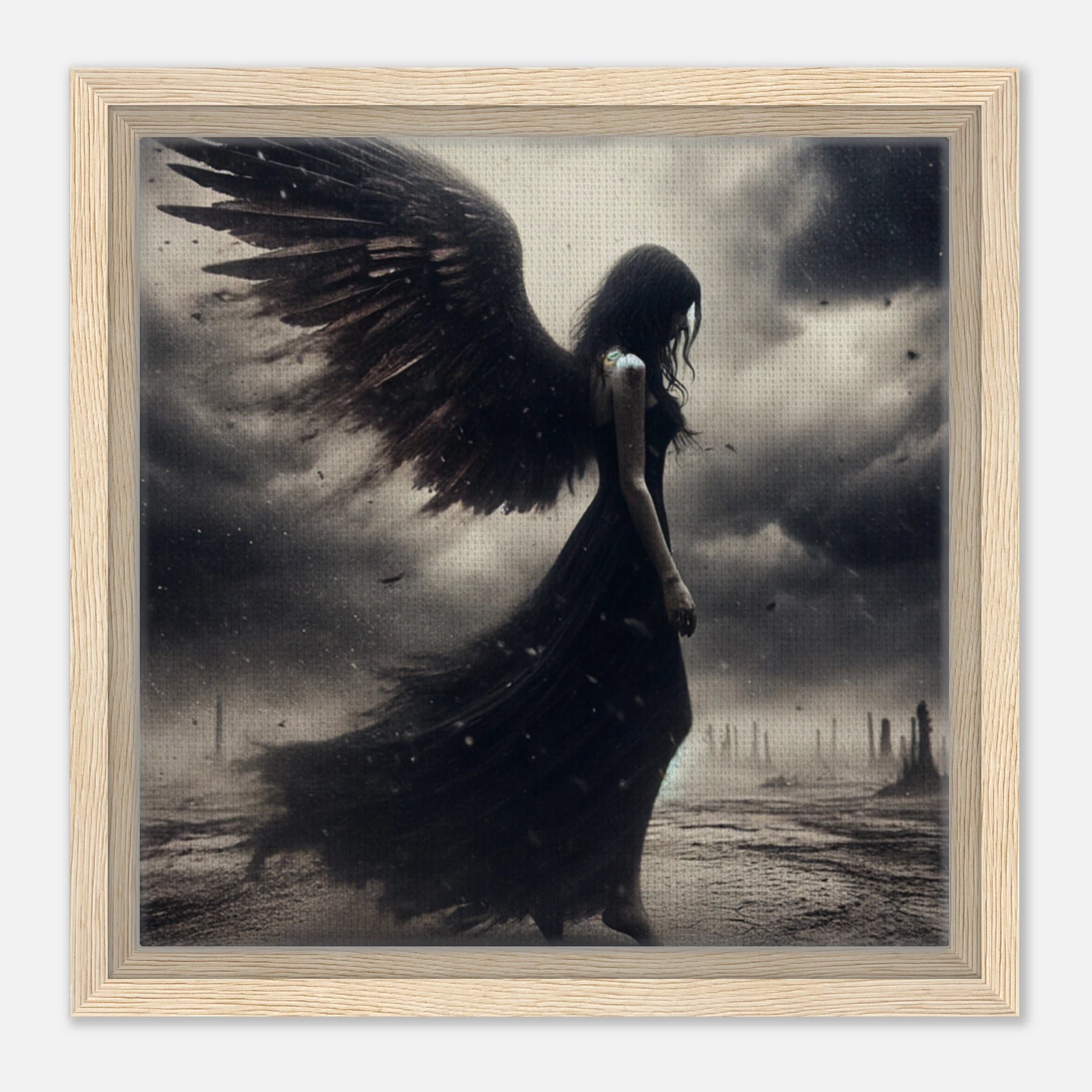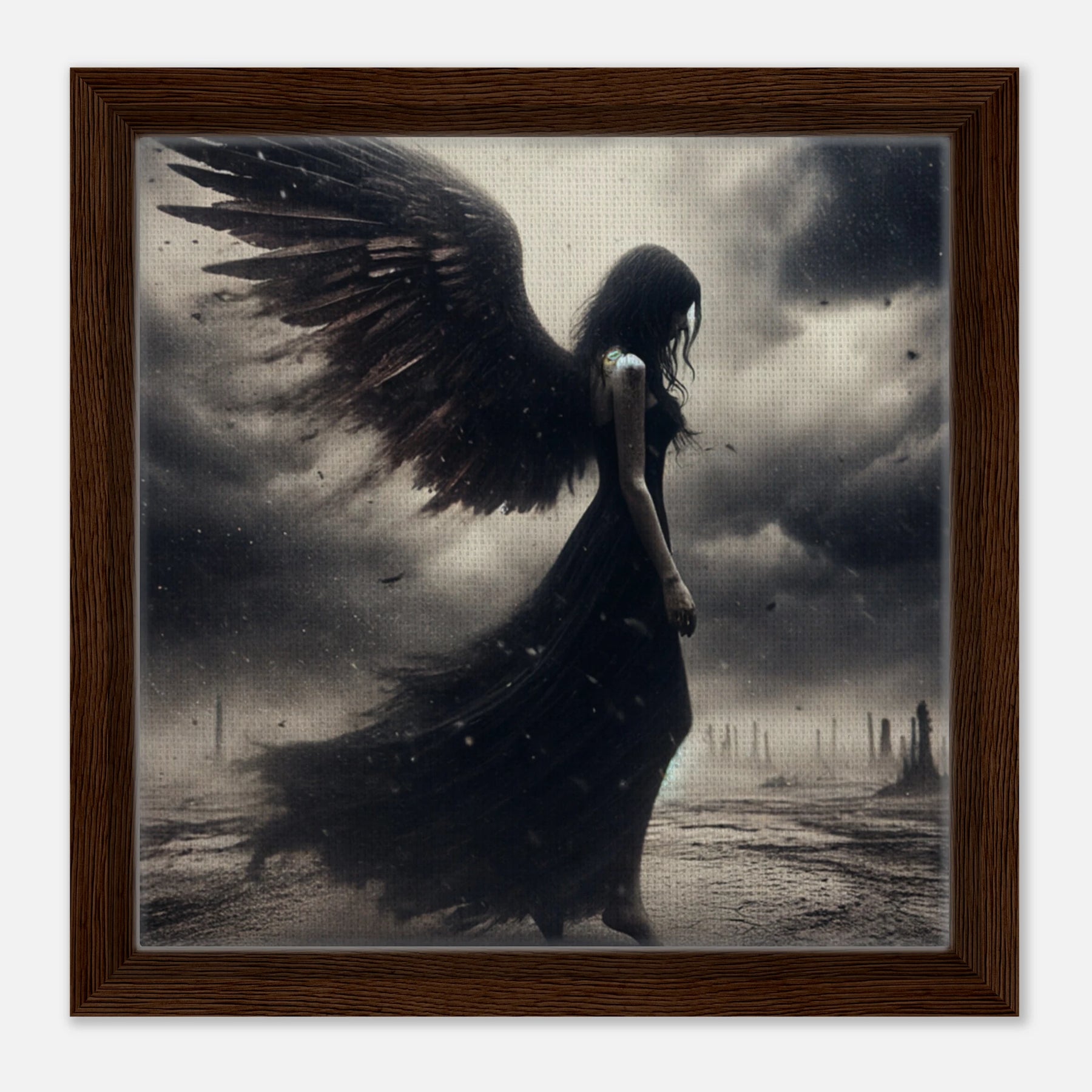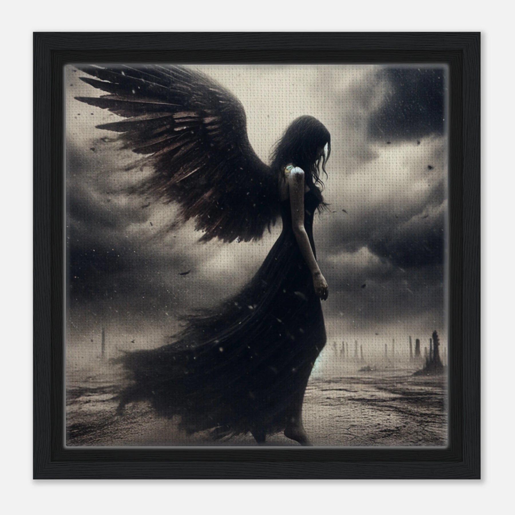 Diese gerahmte Leinwand zeigt einen Engel aus der Dark Angel-Serie – mit starker Symbolik und dunkler Ästhetik. Die Leinwandstruktur intensiviert das Motiv, der Rahmen verleiht dem Werk seine dramatische Präsenz.