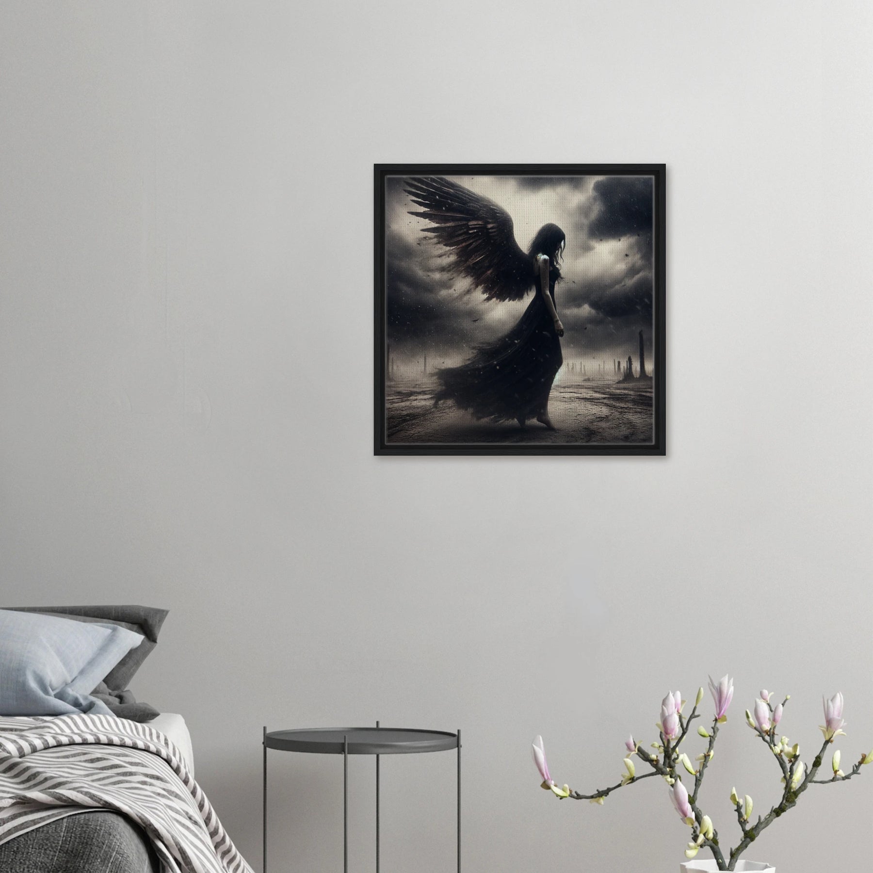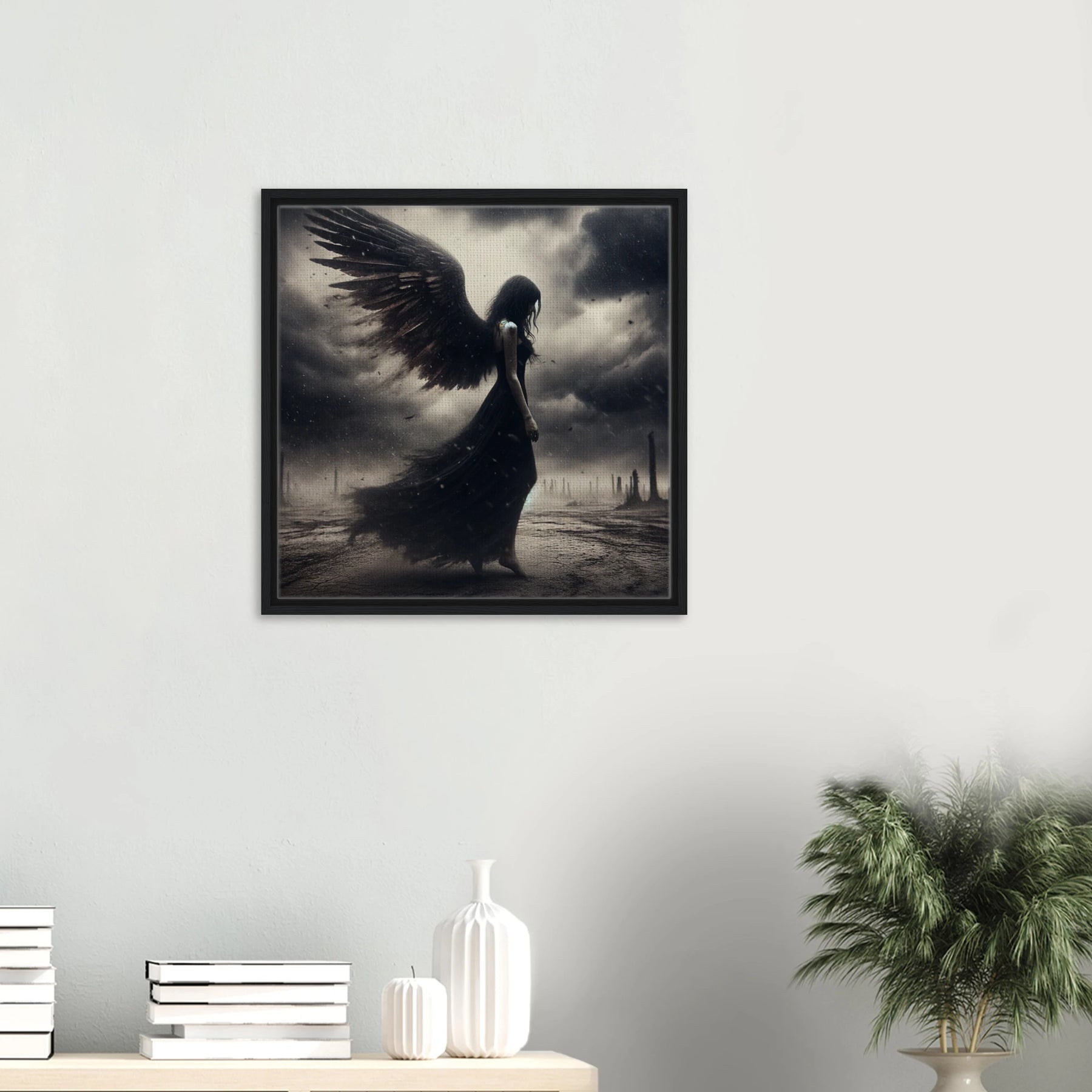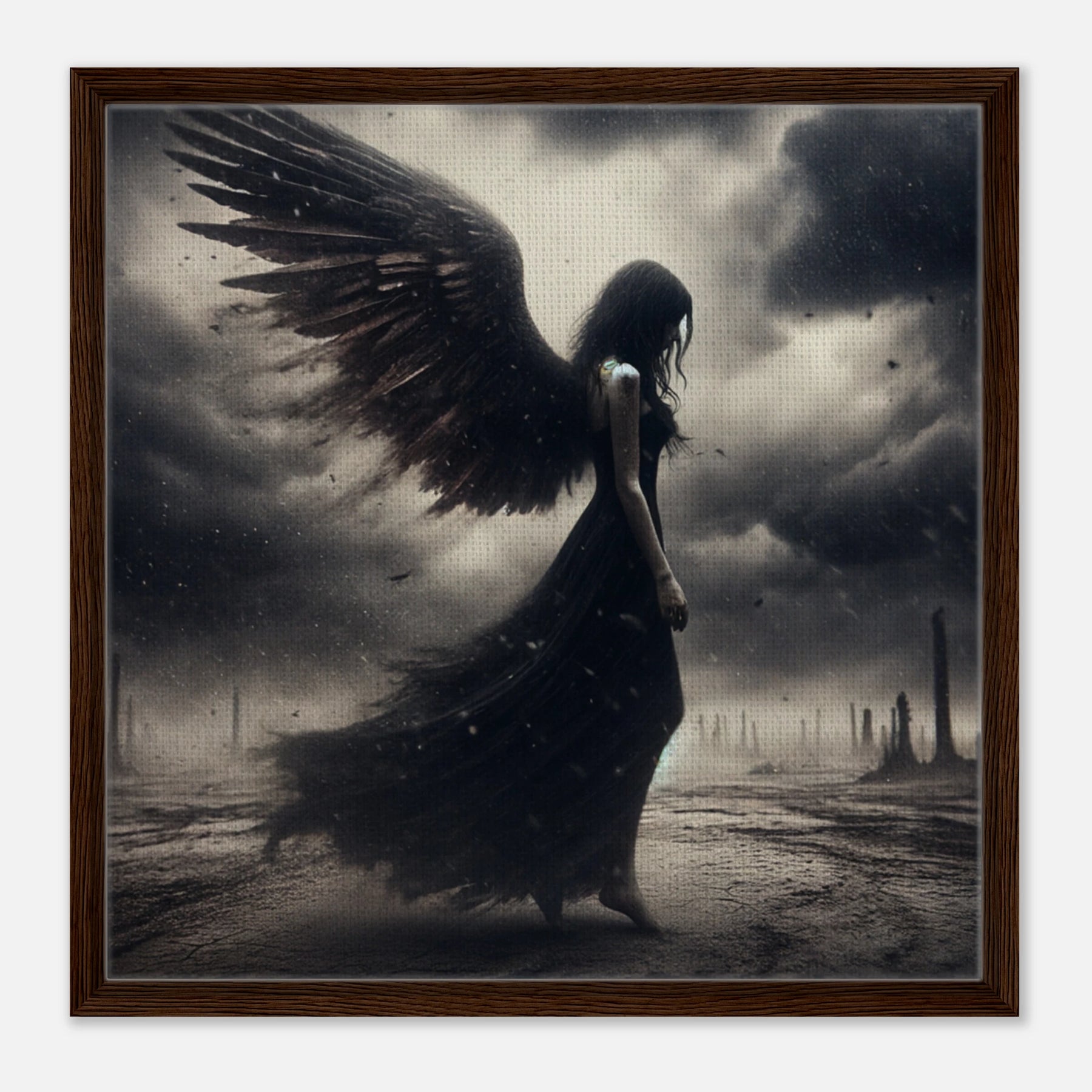 Diese gerahmte Leinwand zeigt einen Engel aus der Dark Angel-Serie – mit starker Symbolik und dunkler Ästhetik. Die Leinwandstruktur intensiviert das Motiv, der Rahmen verleiht dem Werk seine dramatische Präsenz.