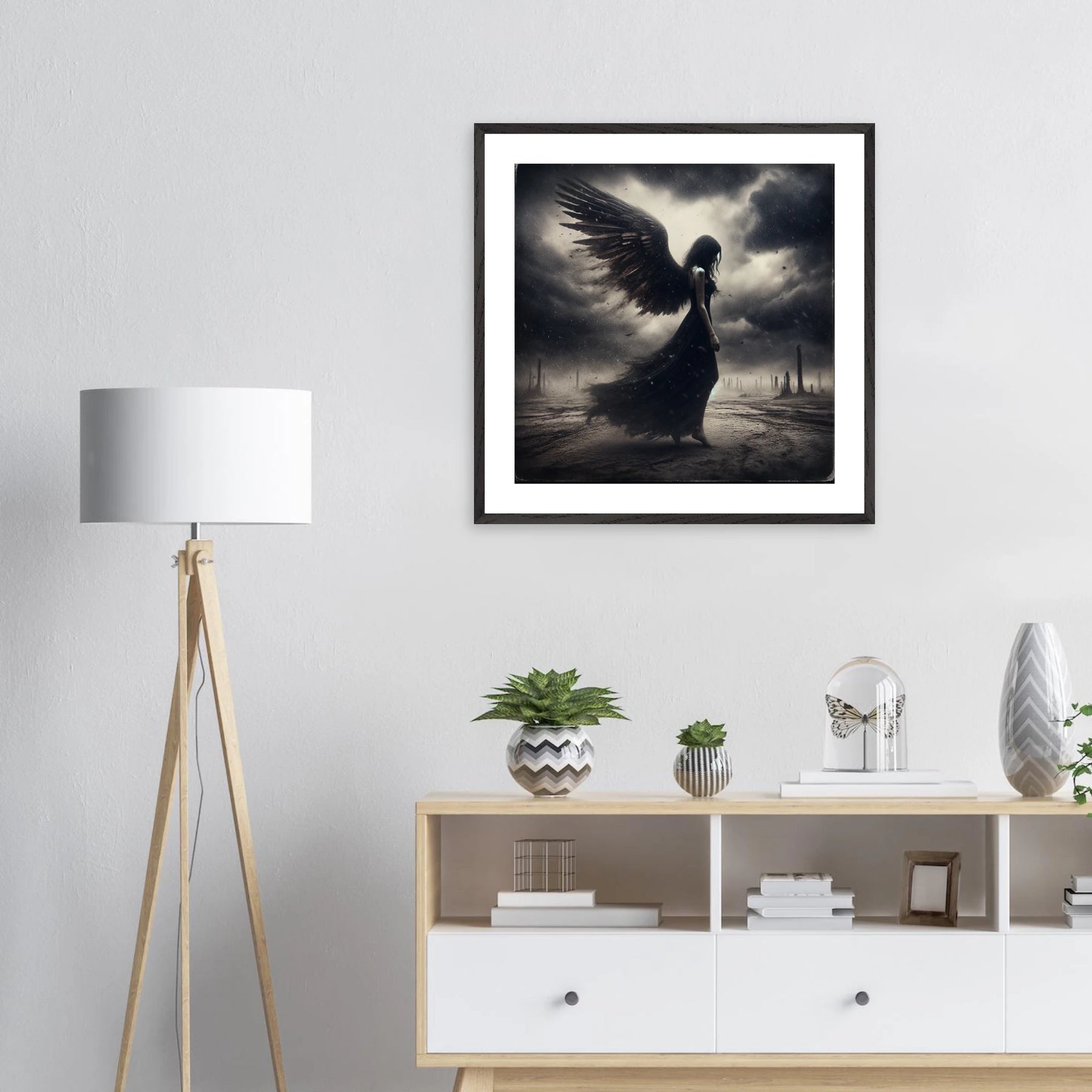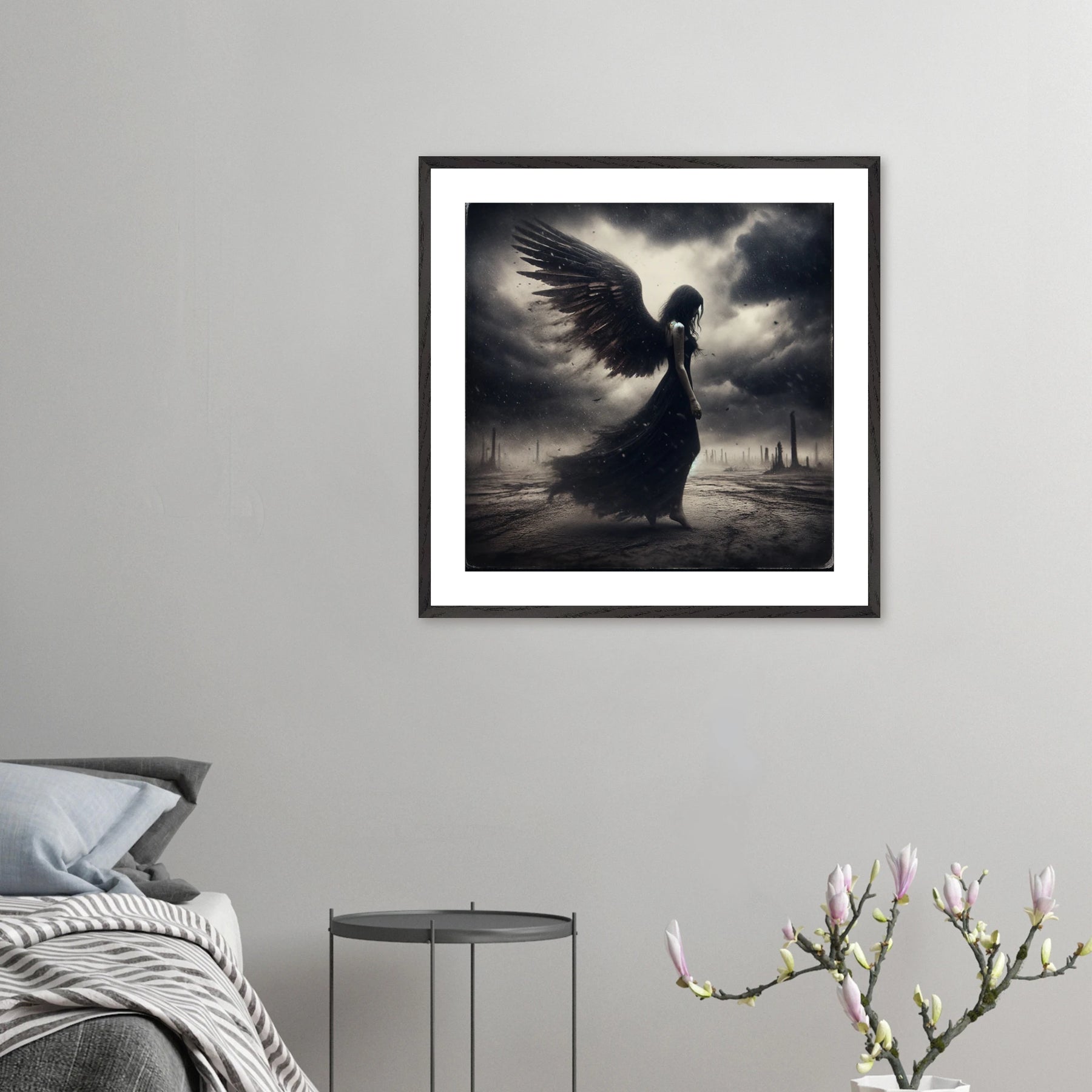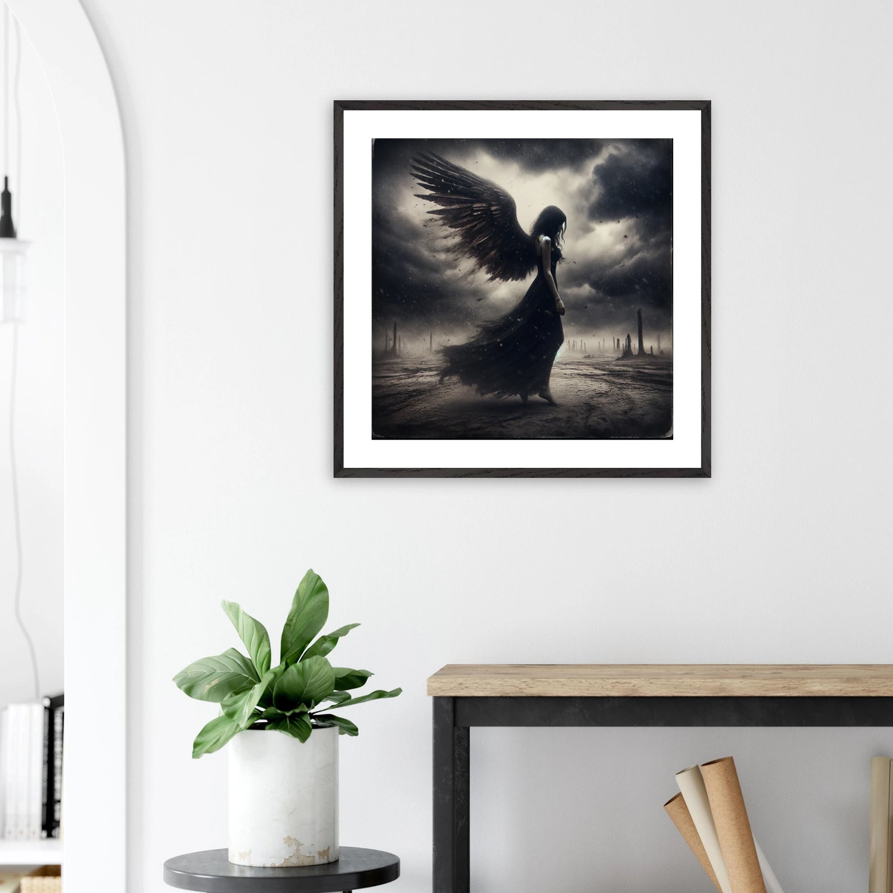 Dieses Premium-Poster aus der Dark Angel-Serie zeigt dunkle Schönheit in all ihrer Tiefe. Der elegante Rahmen bringt das Motiv auf ruhige, aber kraftvolle Weise zur Geltung – perfekt für moderne Räume mit Charakter.
