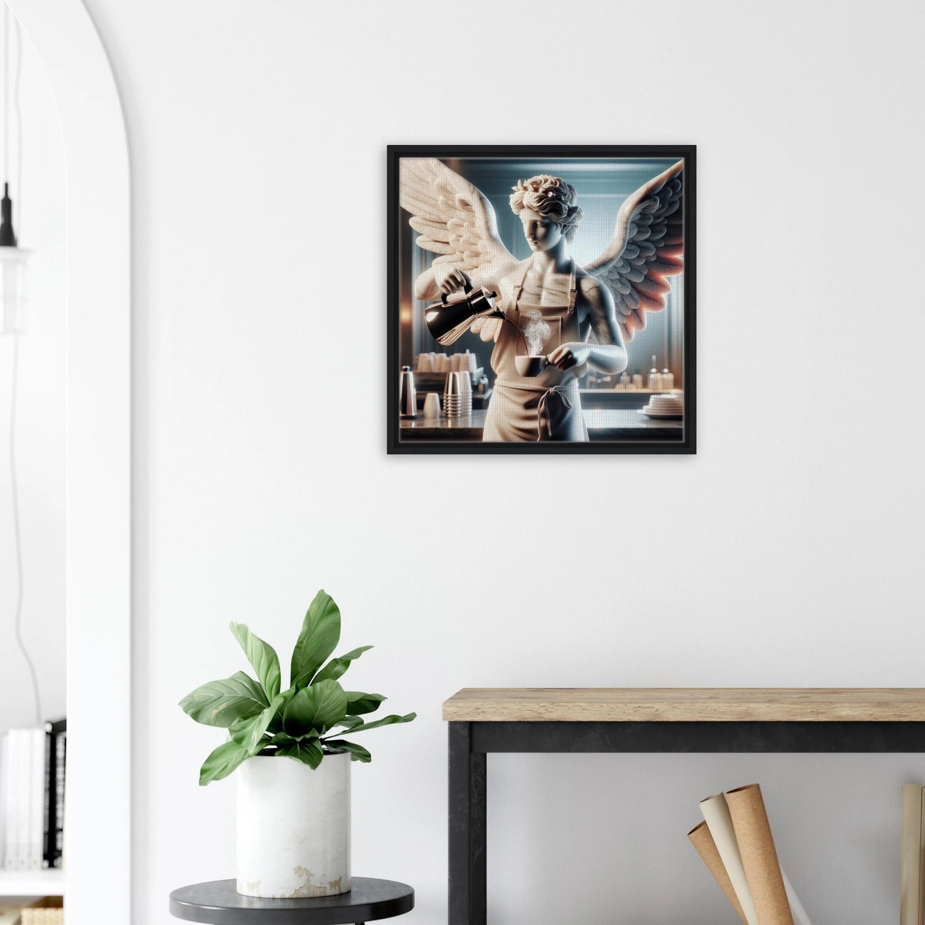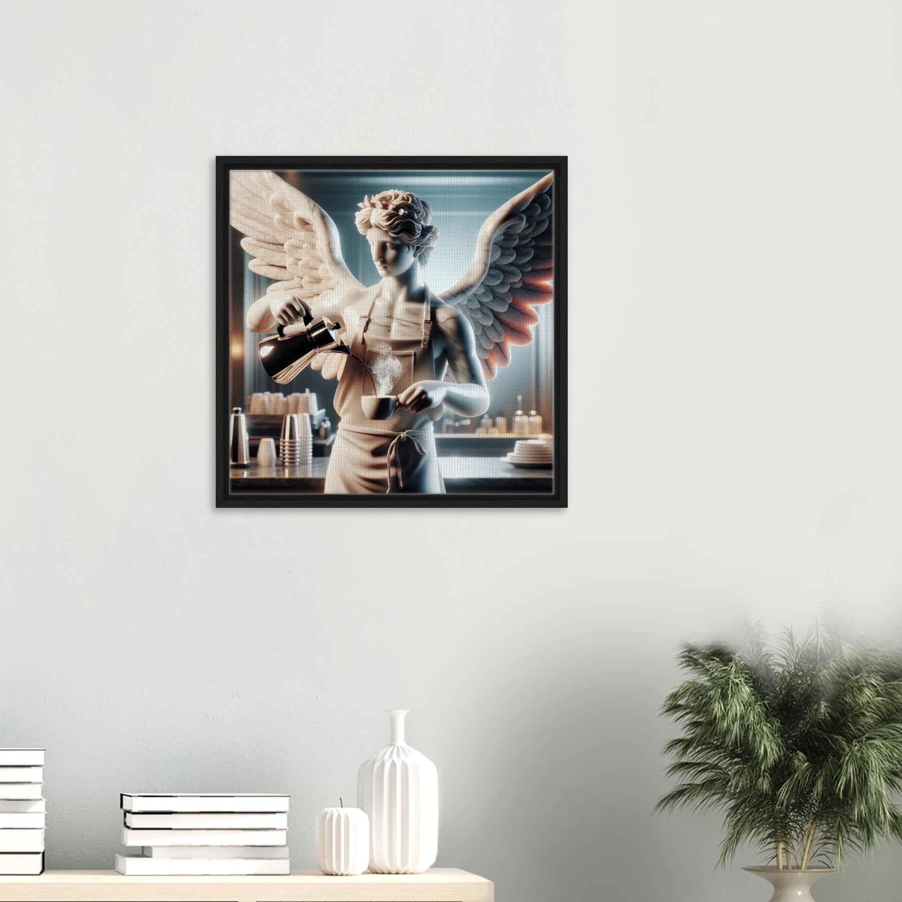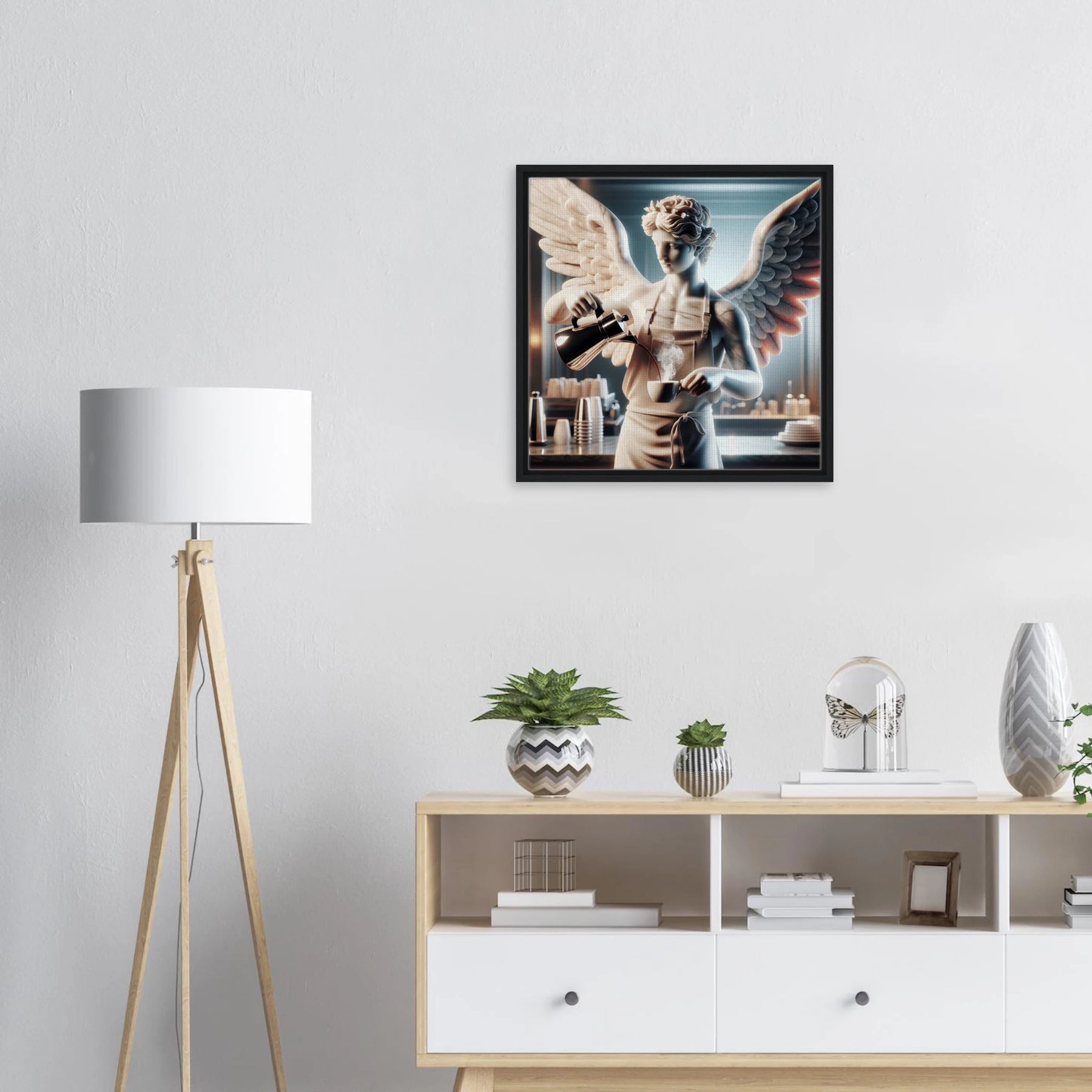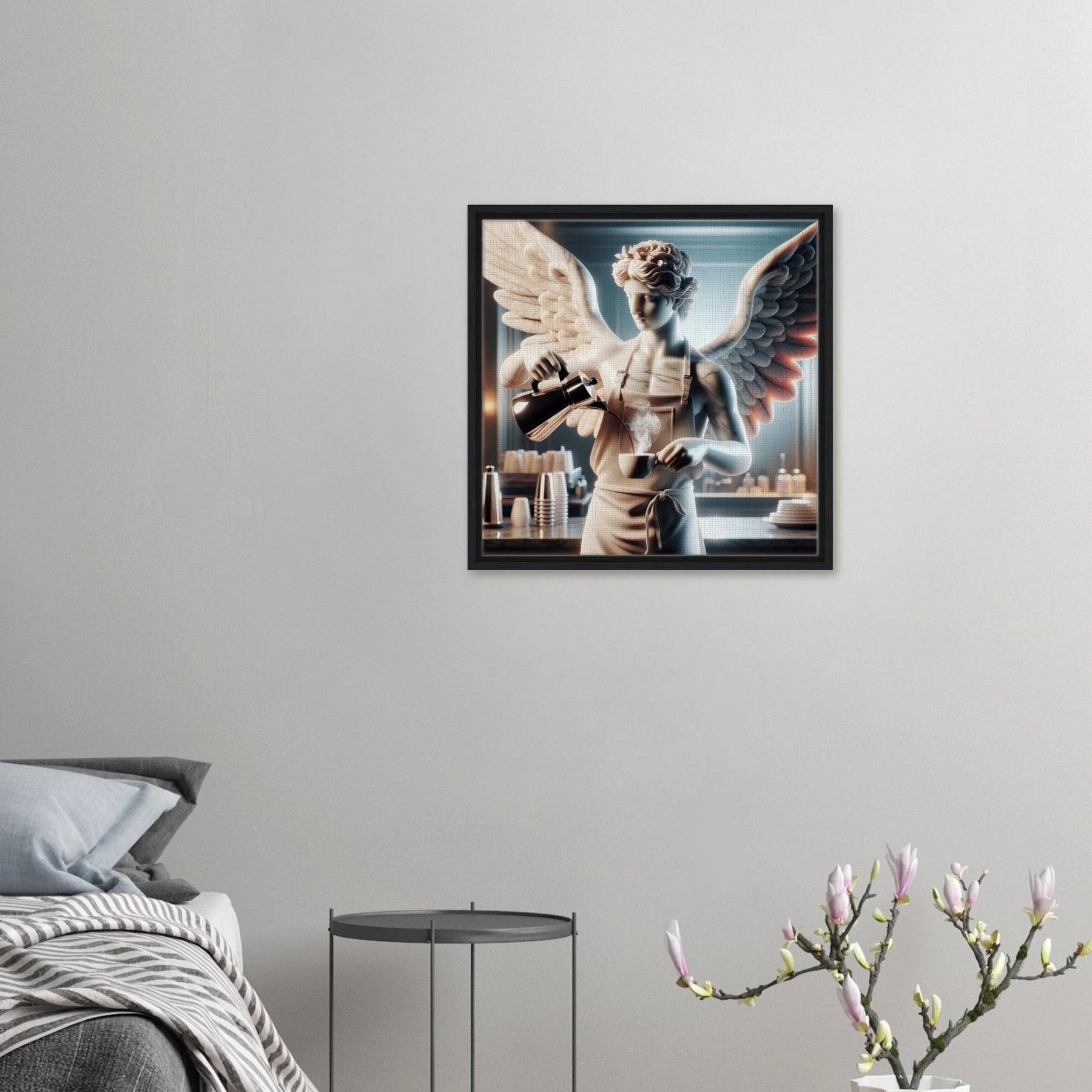 Diese Leinwand zeigt einen Everyday Angel im klassischen Marmor-Stil – ruhig, hell und beständig. Die natürliche Textur der Leinwand und der Rahmen verleihen dem Werk eine stilvolle und beruhigende Präsenz.