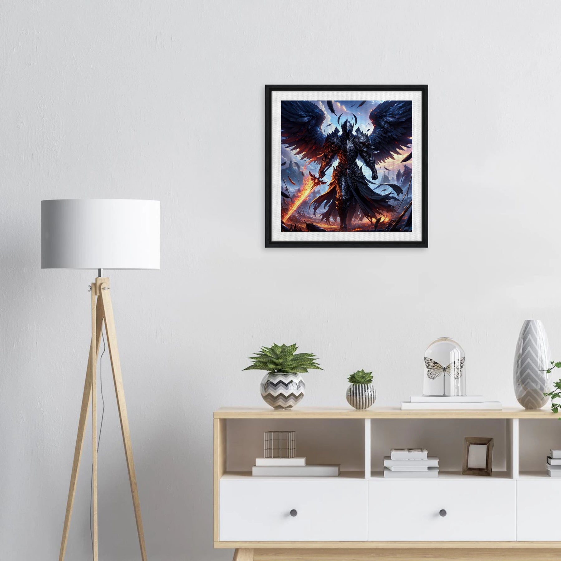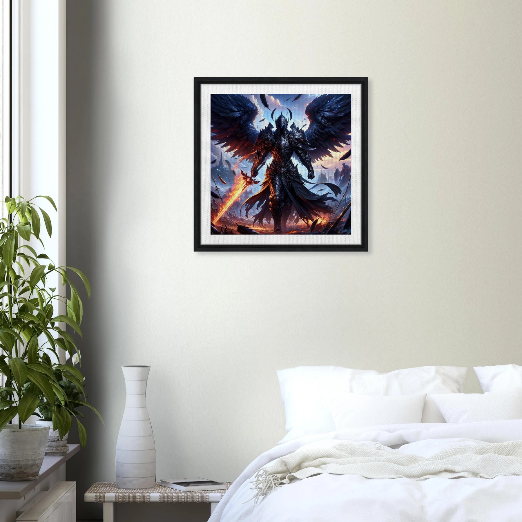 Gerahmte Leinwand: Blade of the Abyss, letzter Gegner in schwarzer Rüstung, symbolisiert Macht und Herausforderung, dramatische Wanddekoration für Spielzimmer und epische Räume