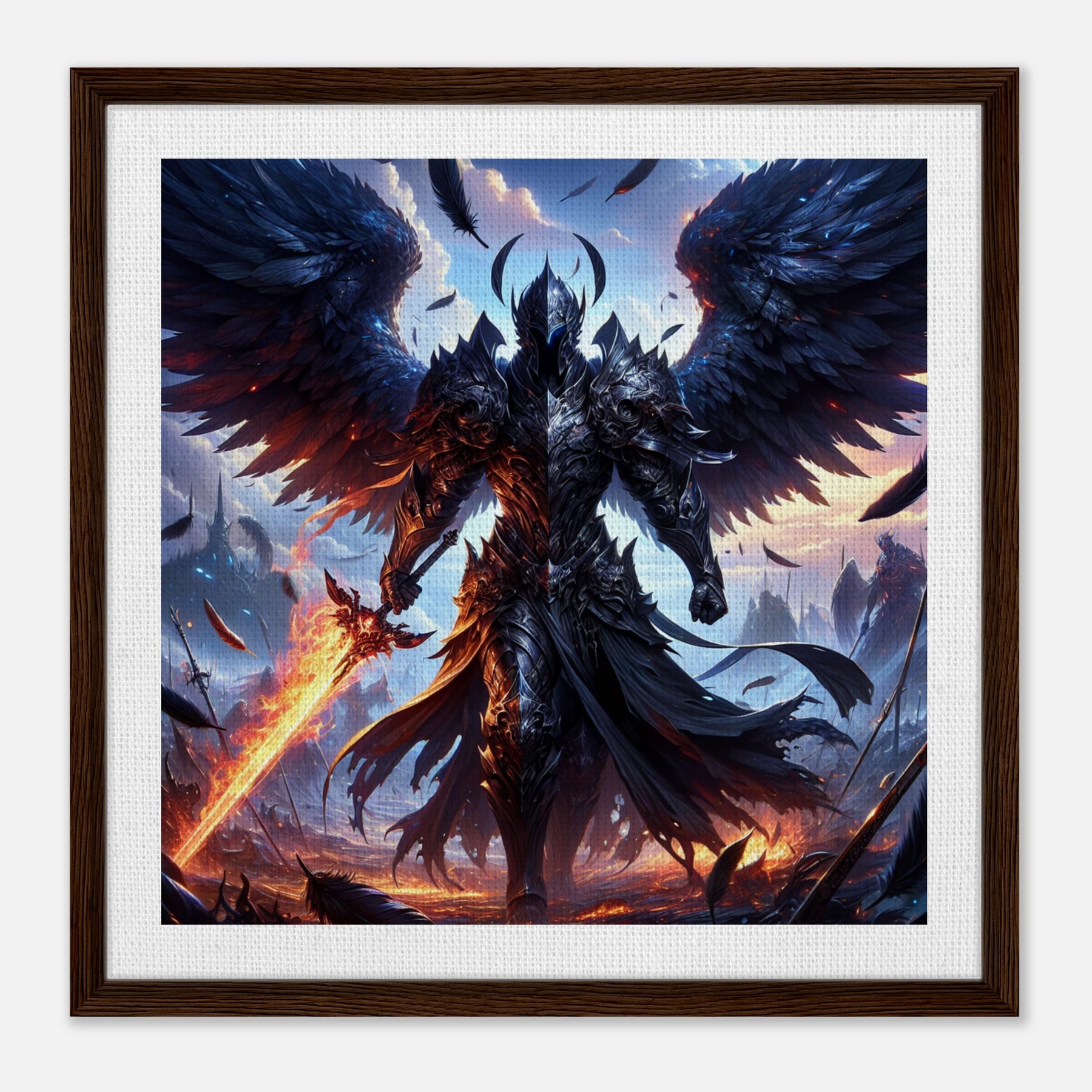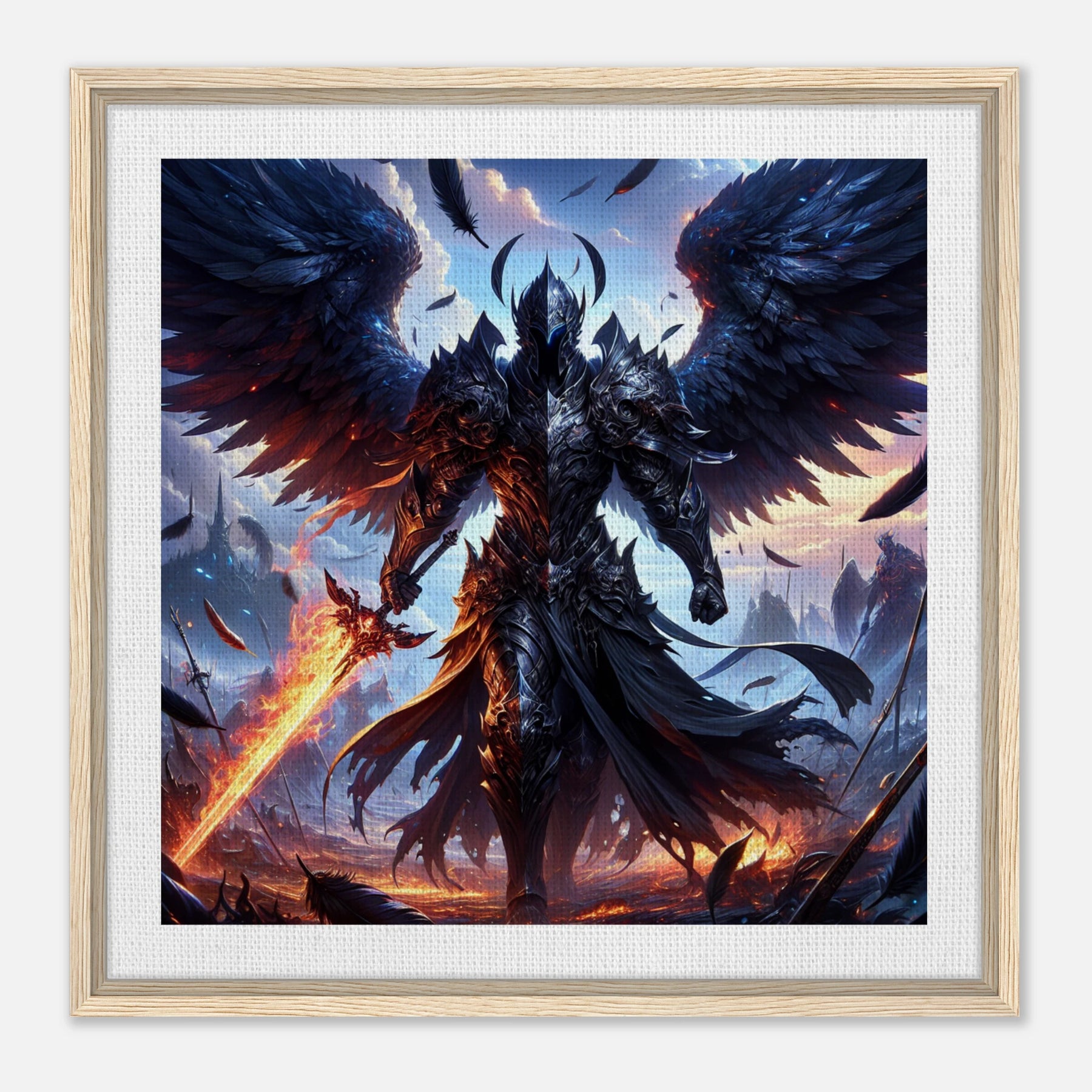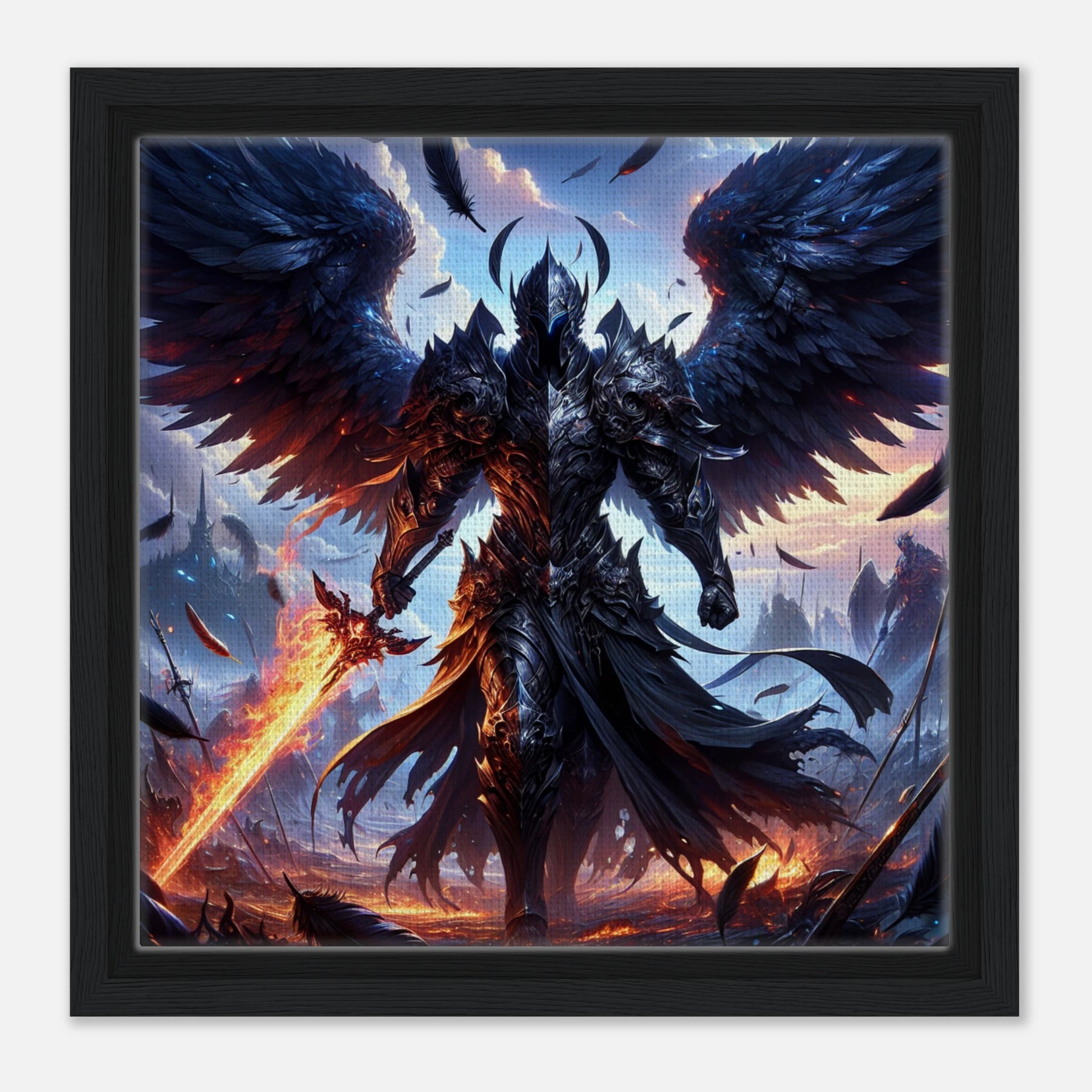 Diese gerahmte Leinwand zeigt einen Engel aus der Dark Angel-Serie – mit starker Symbolik und dunkler Ästhetik. Die Leinwandstruktur intensiviert das Motiv, der Rahmen verleiht dem Werk seine dramatische Präsenz.