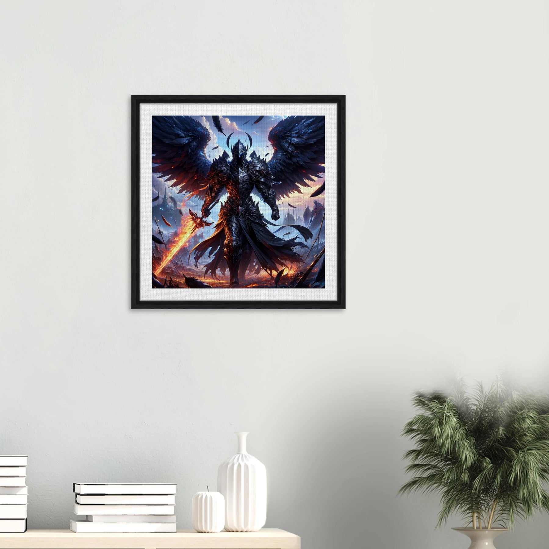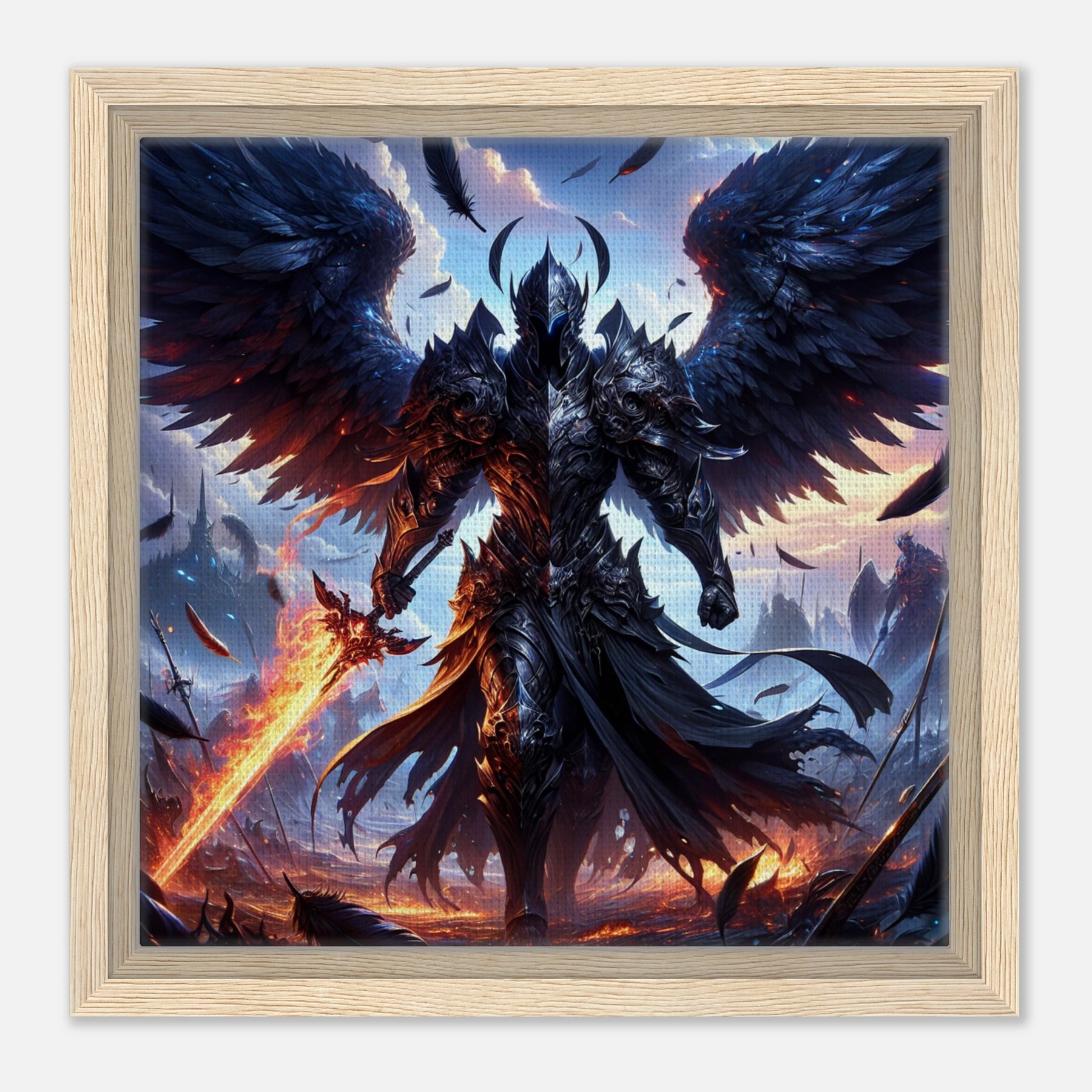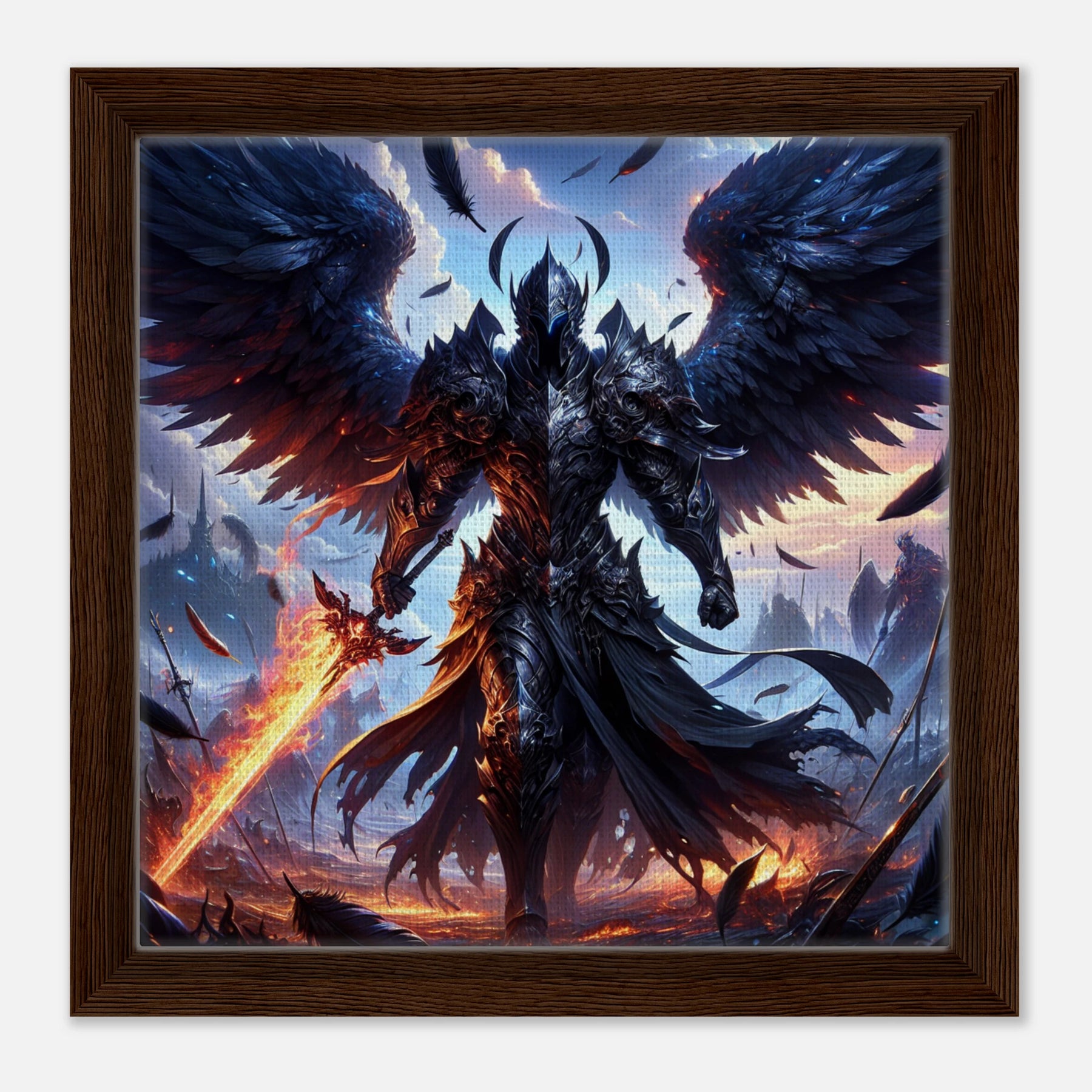 Diese gerahmte Leinwand zeigt einen Engel aus der Dark Angel-Serie – mit starker Symbolik und dunkler Ästhetik. Die Leinwandstruktur intensiviert das Motiv, der Rahmen verleiht dem Werk seine dramatische Präsenz.