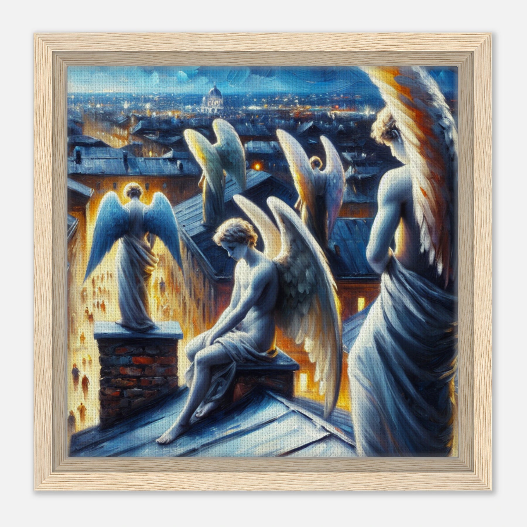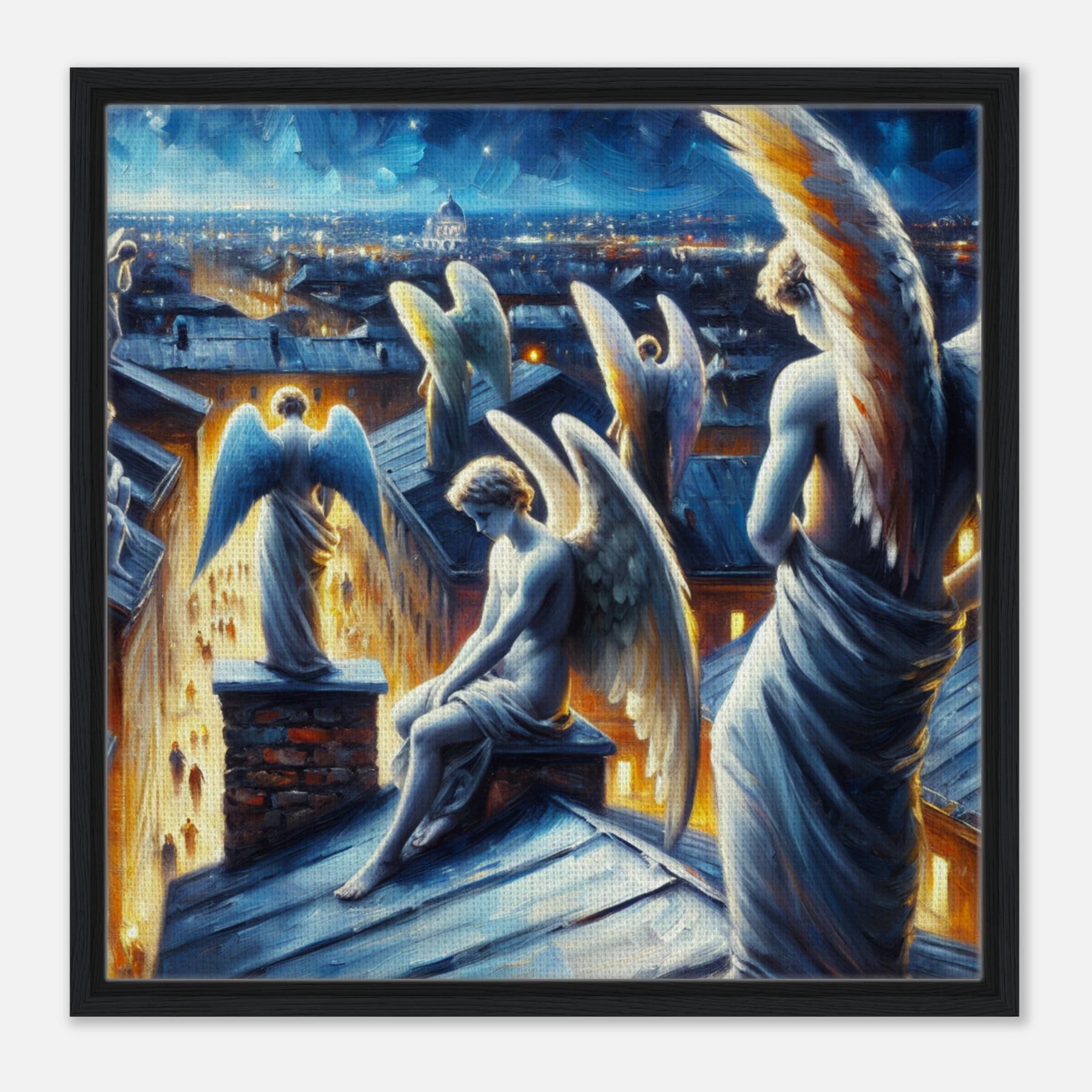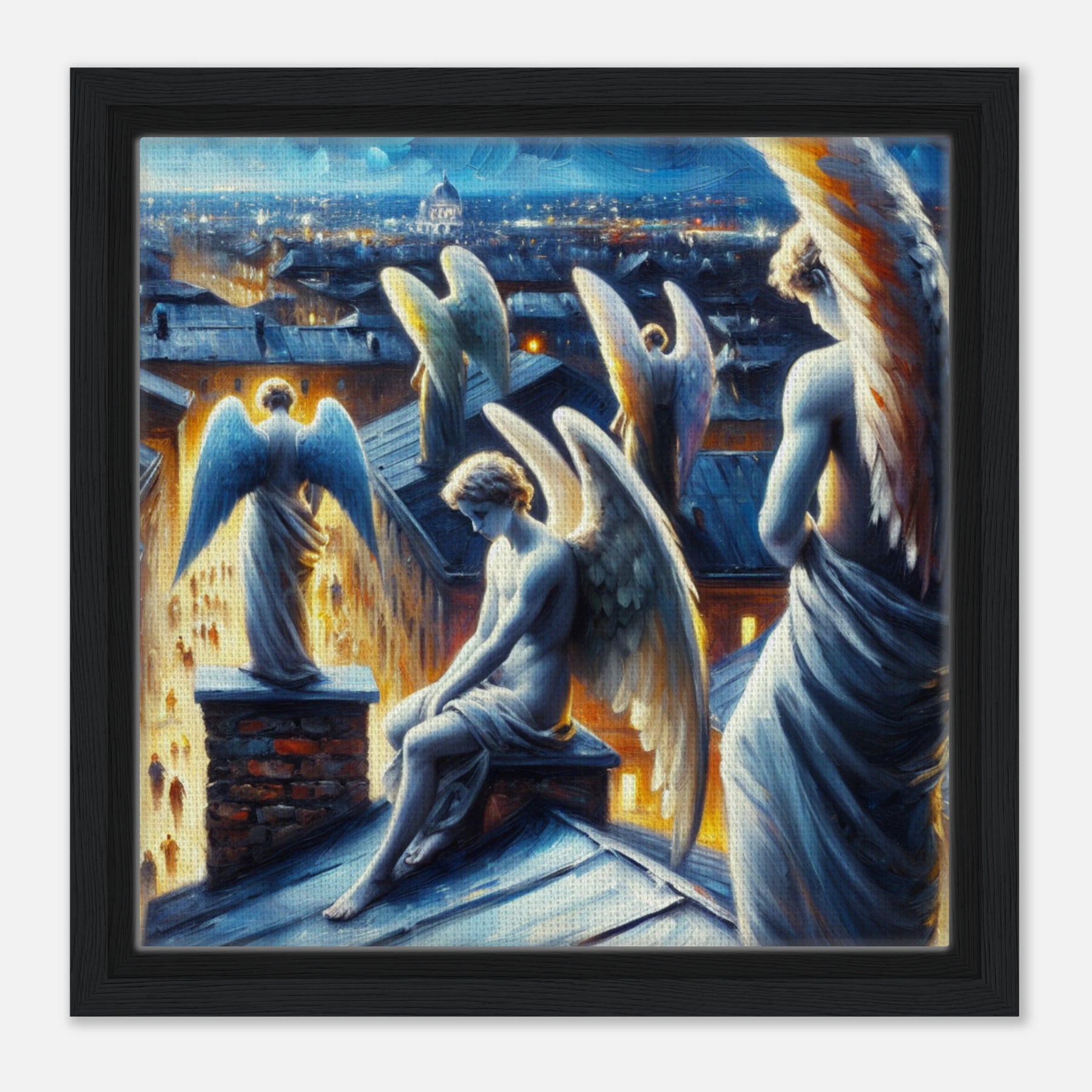 Diese gerahmte Leinwand zeigt einen Engel aus der Urban Angel-Serie – kraftvoll, ästhetisch und voller Tiefe. Die strukturierte Oberfläche bringt das Motiv besonders lebendig zur Geltung, der hochwertige Rahmen sorgt für eine elegante Galerie-Optik.