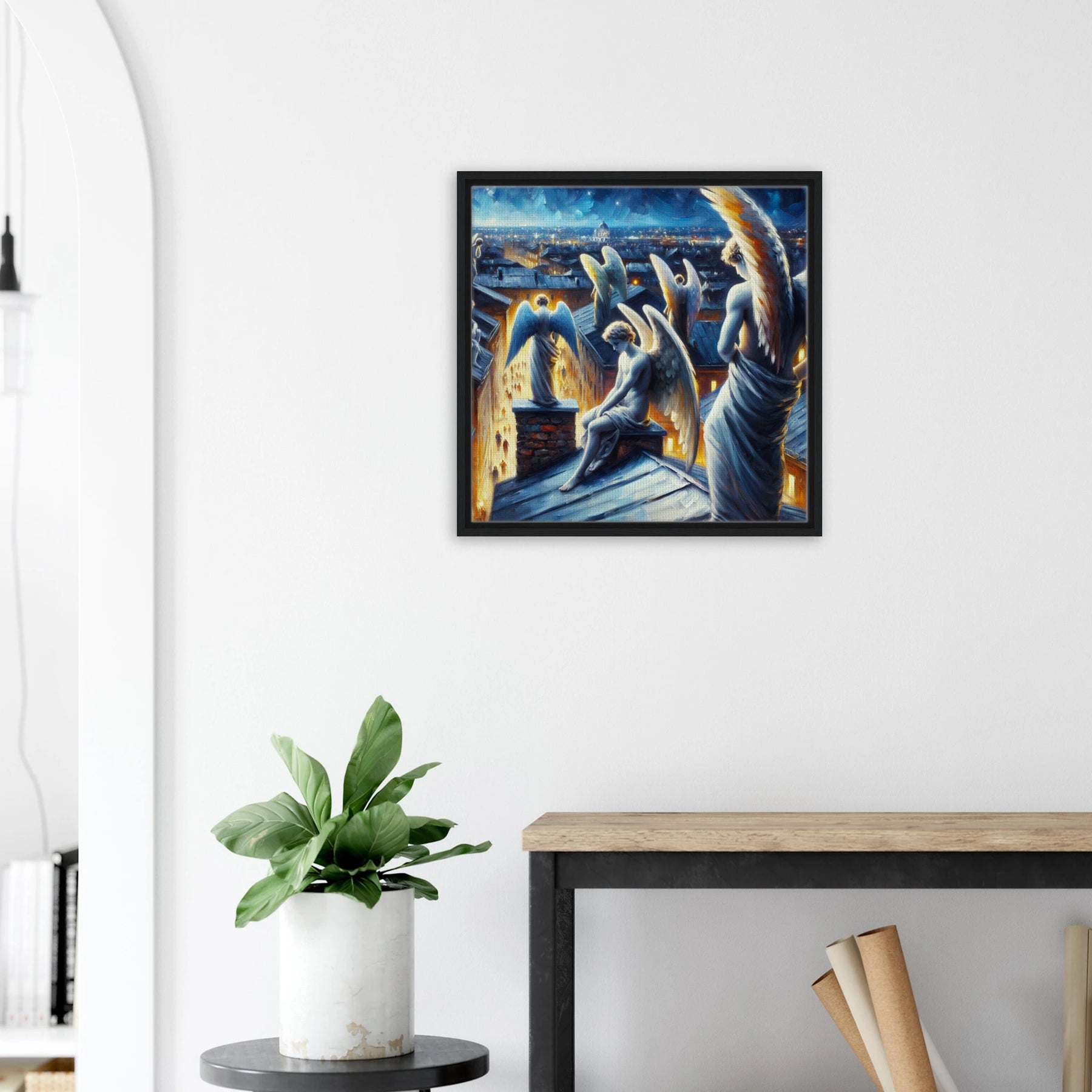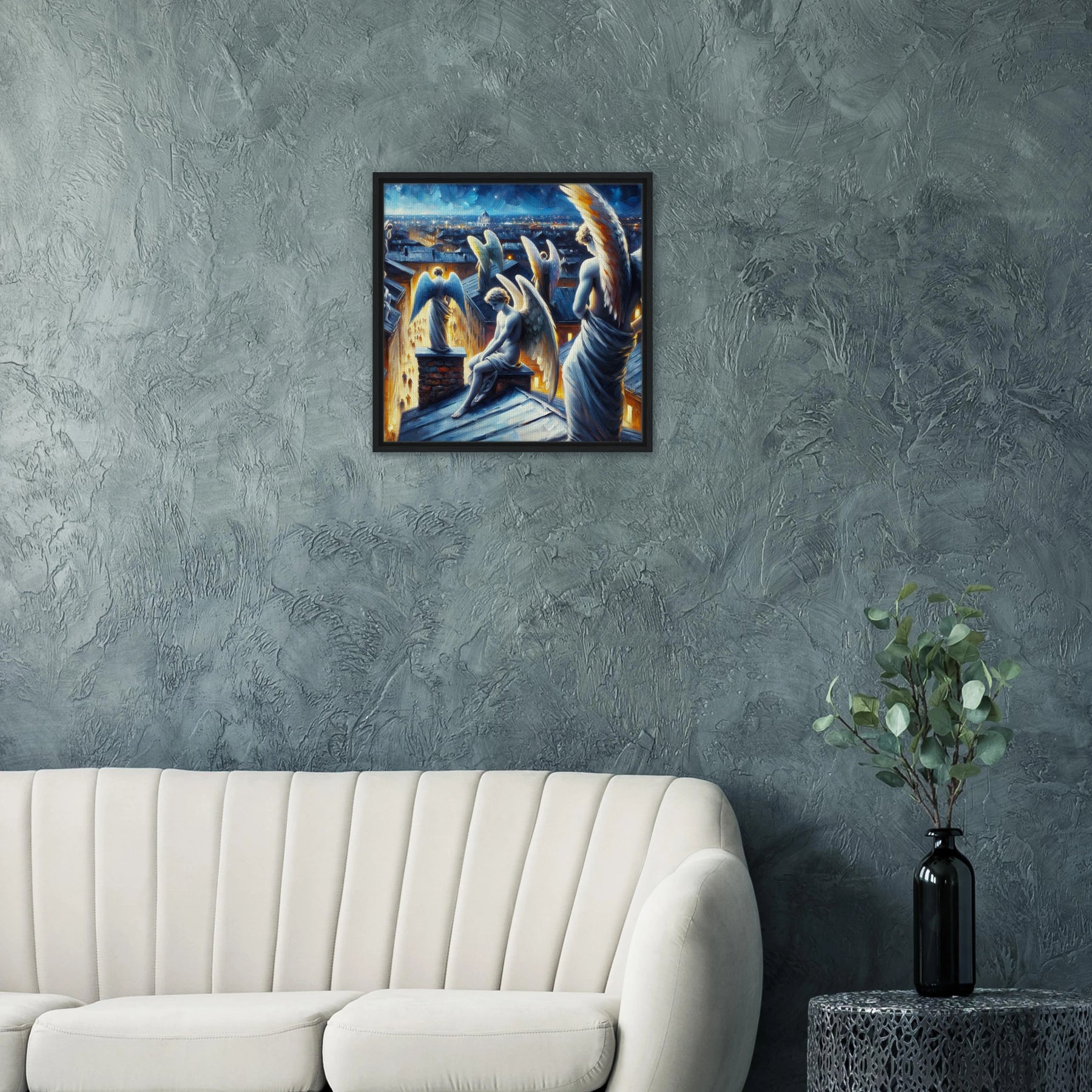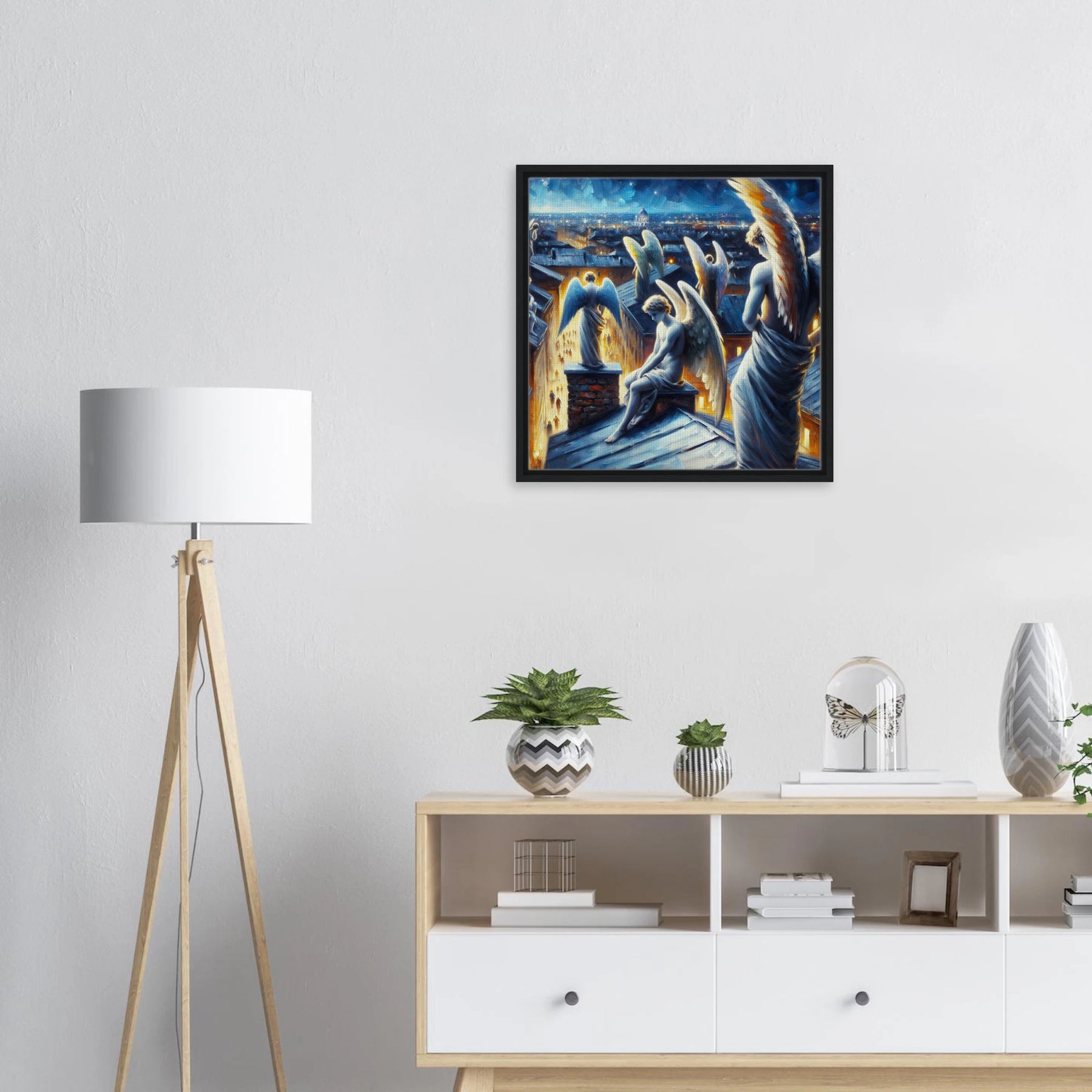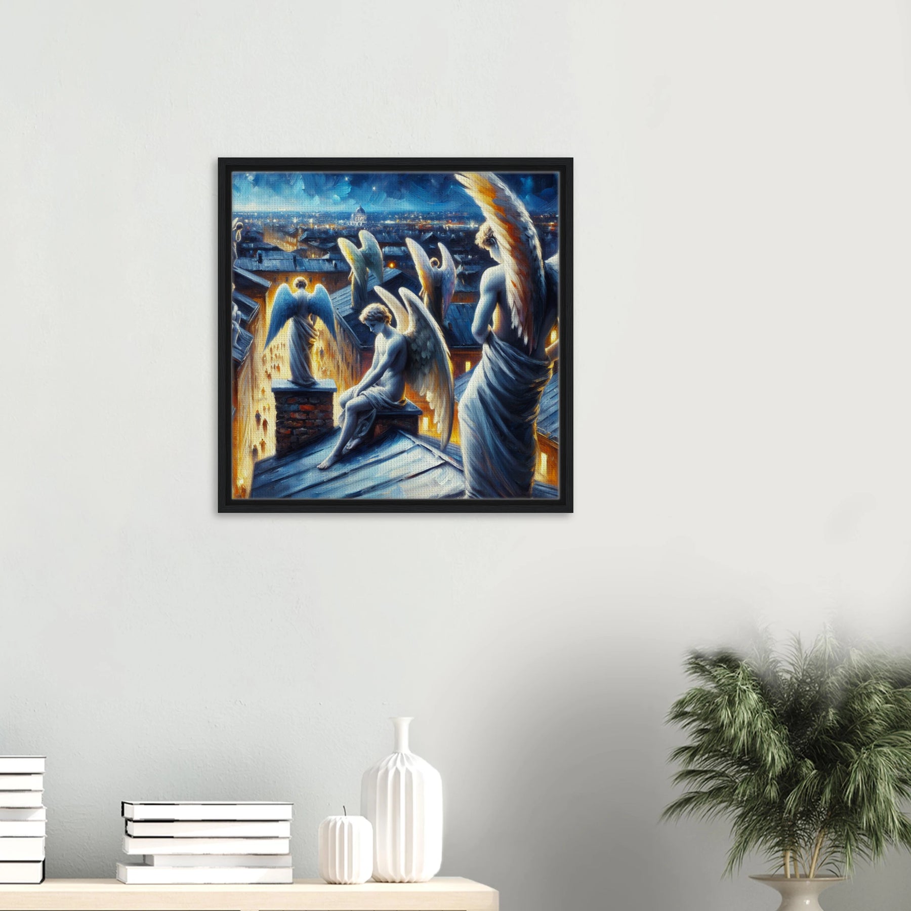 Diese gerahmte Leinwand zeigt einen Engel aus der Urban Angel-Serie – kraftvoll, ästhetisch und voller Tiefe. Die strukturierte Oberfläche bringt das Motiv besonders lebendig zur Geltung, der hochwertige Rahmen sorgt für eine elegante Galerie-Optik.