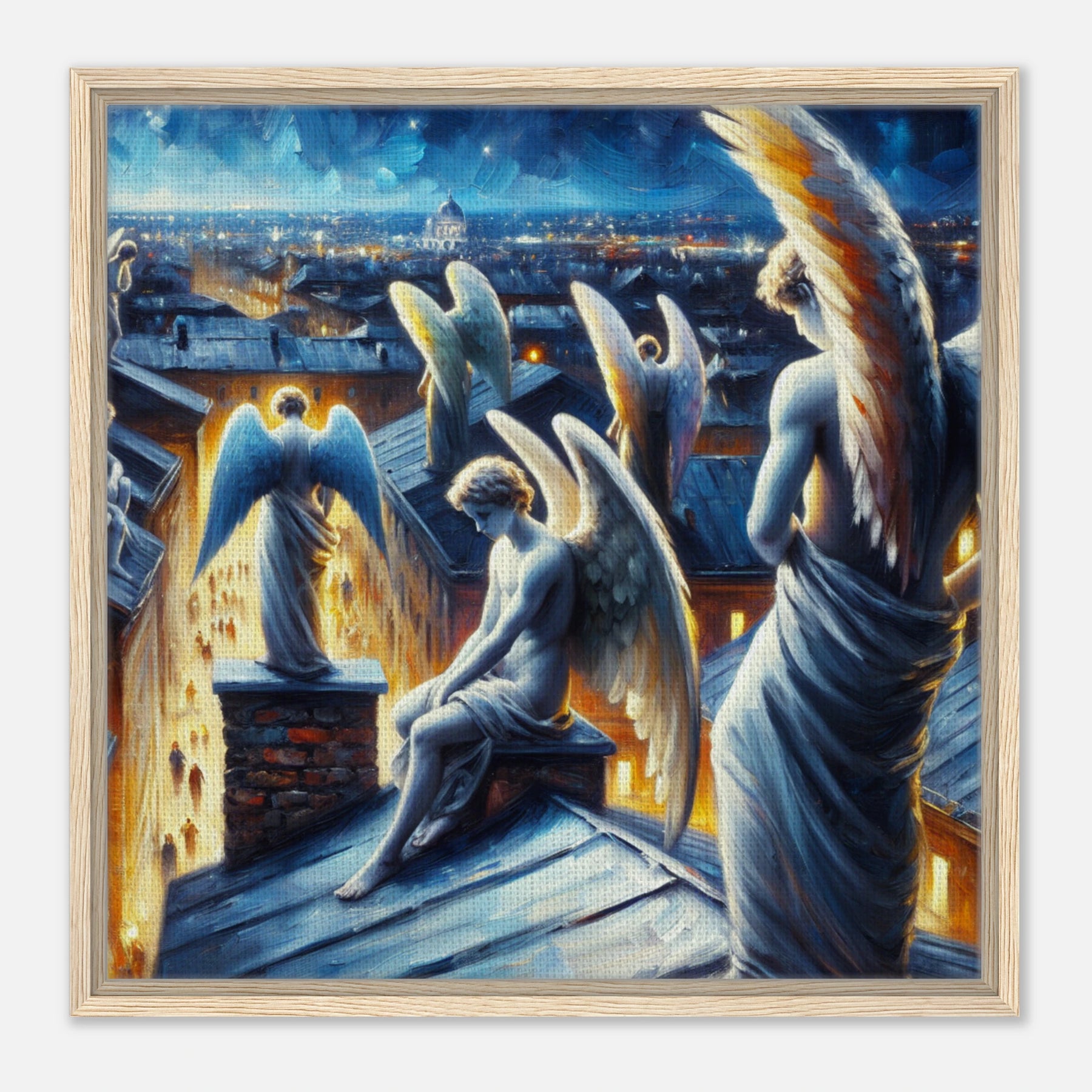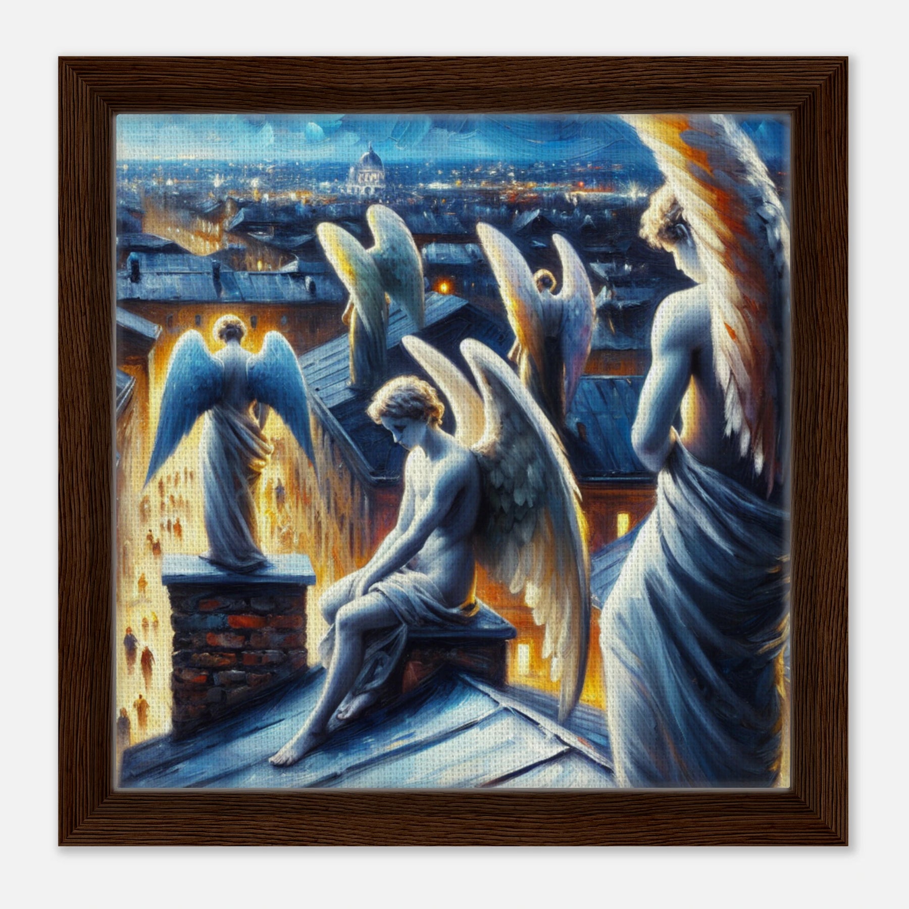 Schutzengel wachen über Stadt – City of Wings Leinwanddruck, heilige Engel beschützen schlafende Menschen