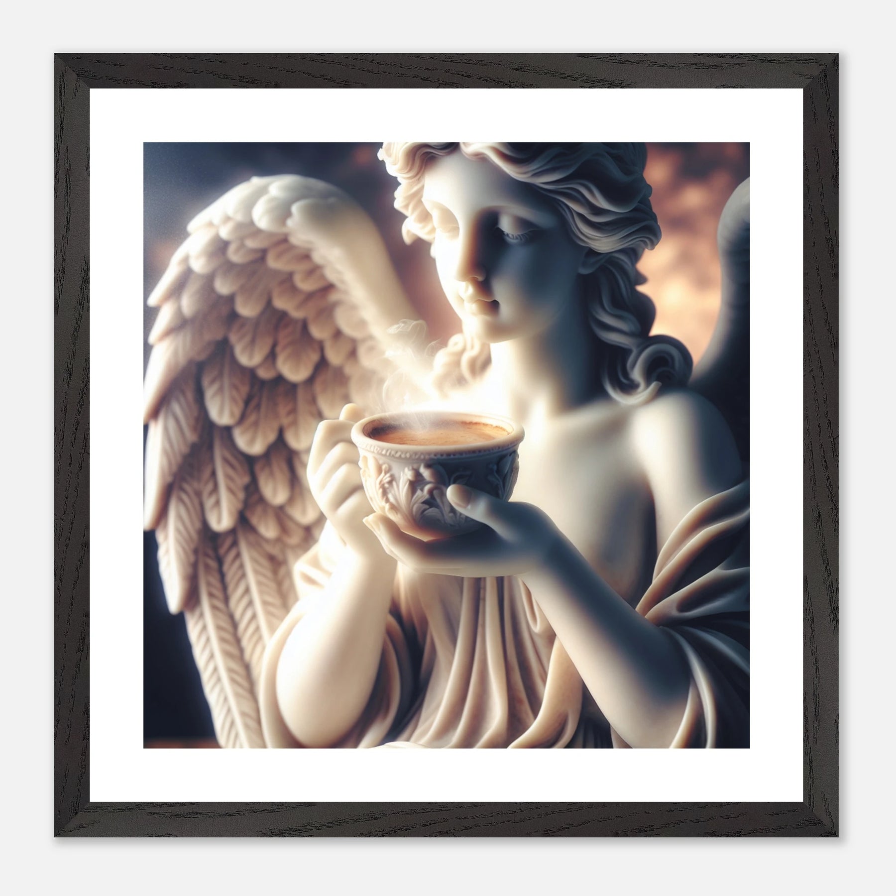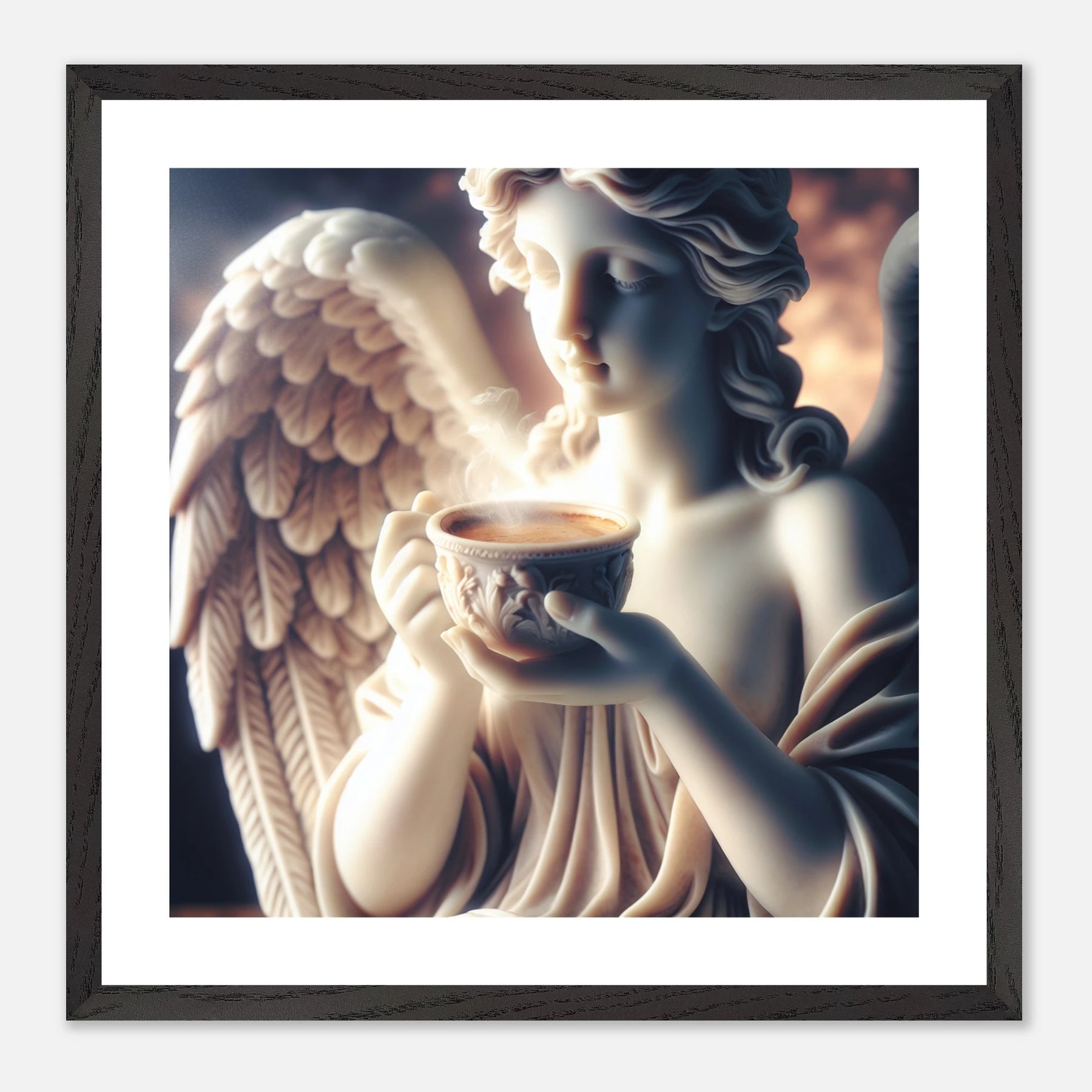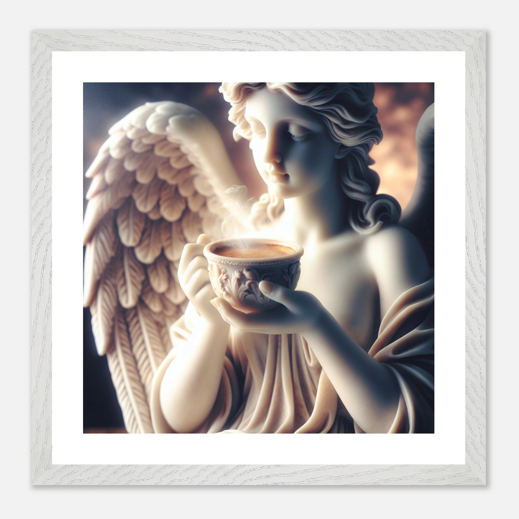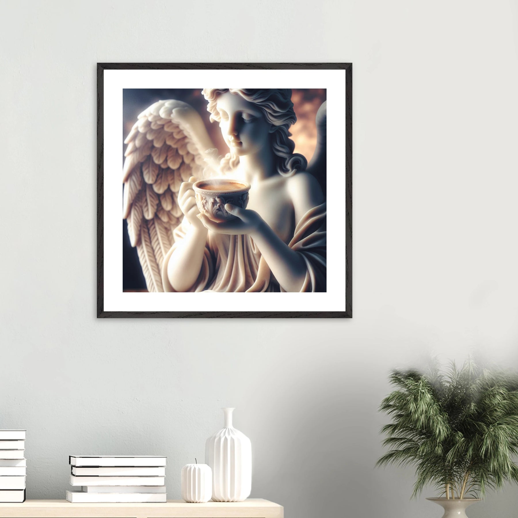 Premium Poster im Rahmen mit Marmorengel und heißen Kaffee – genussvolle moderne Ruhe & spirituelle Ästhetik für dein Zuhause | Dreaming Wings