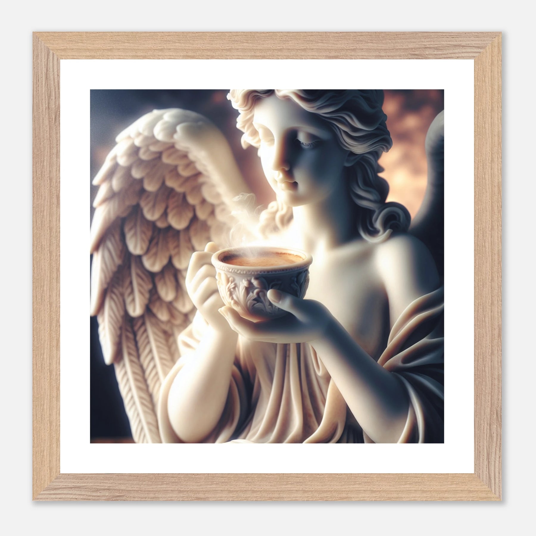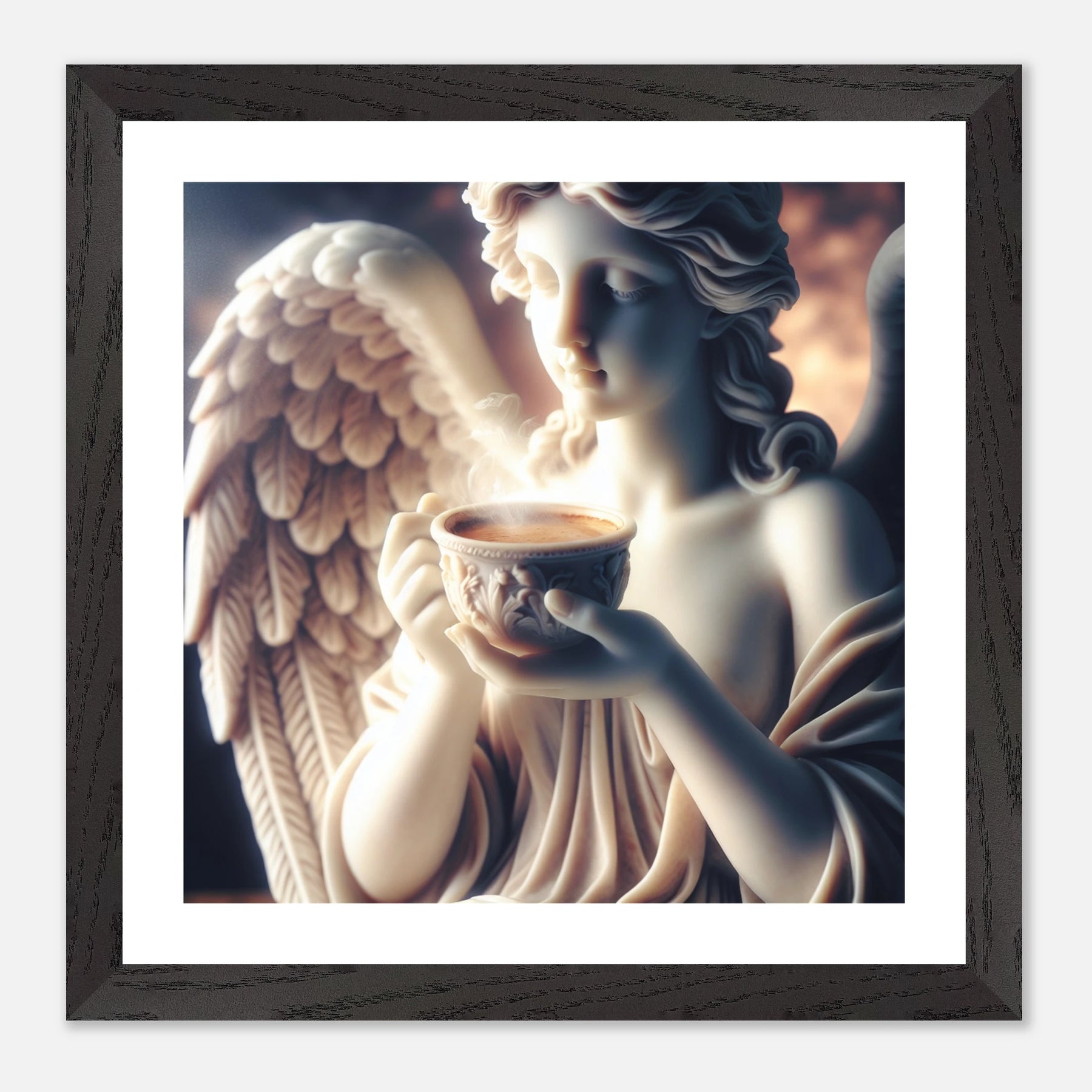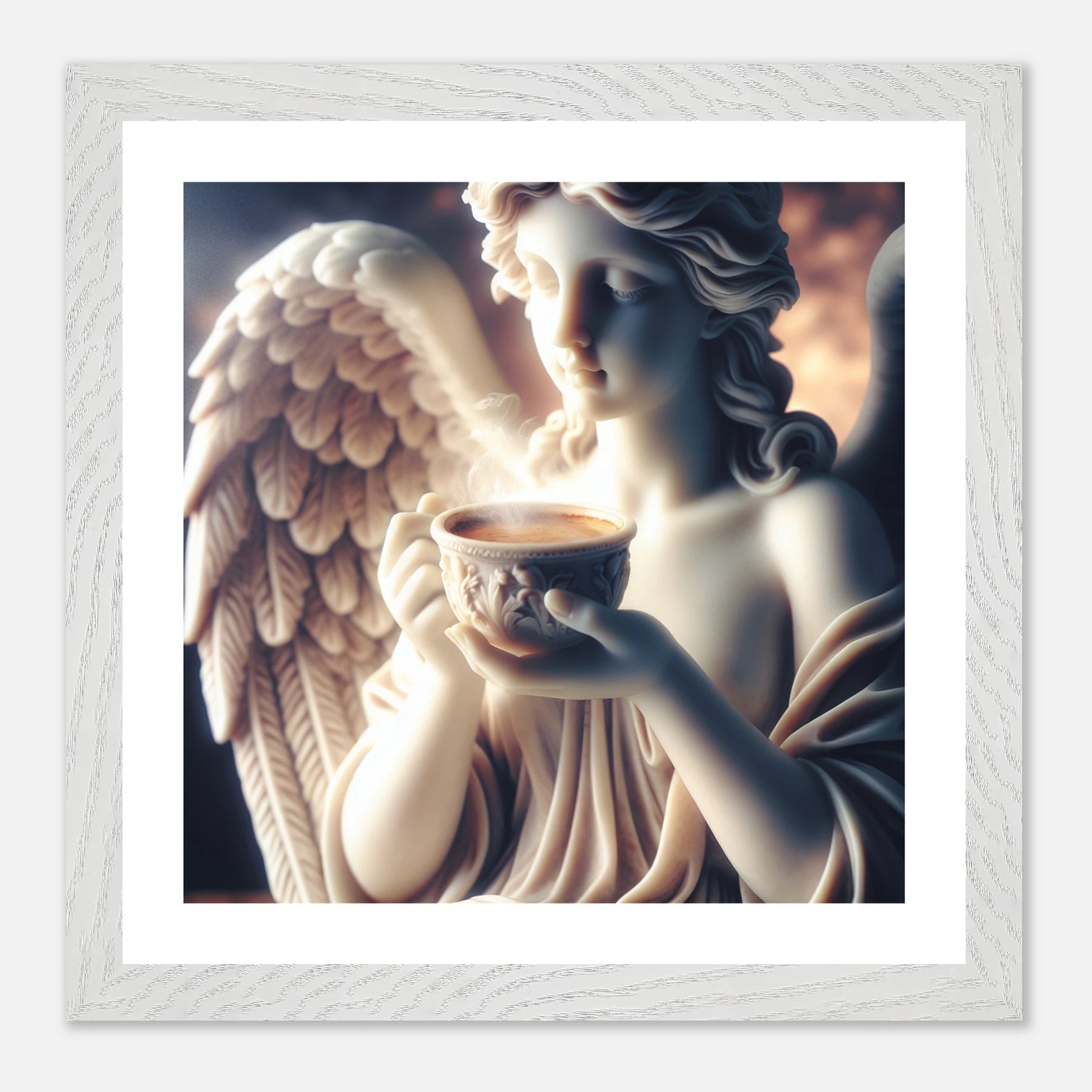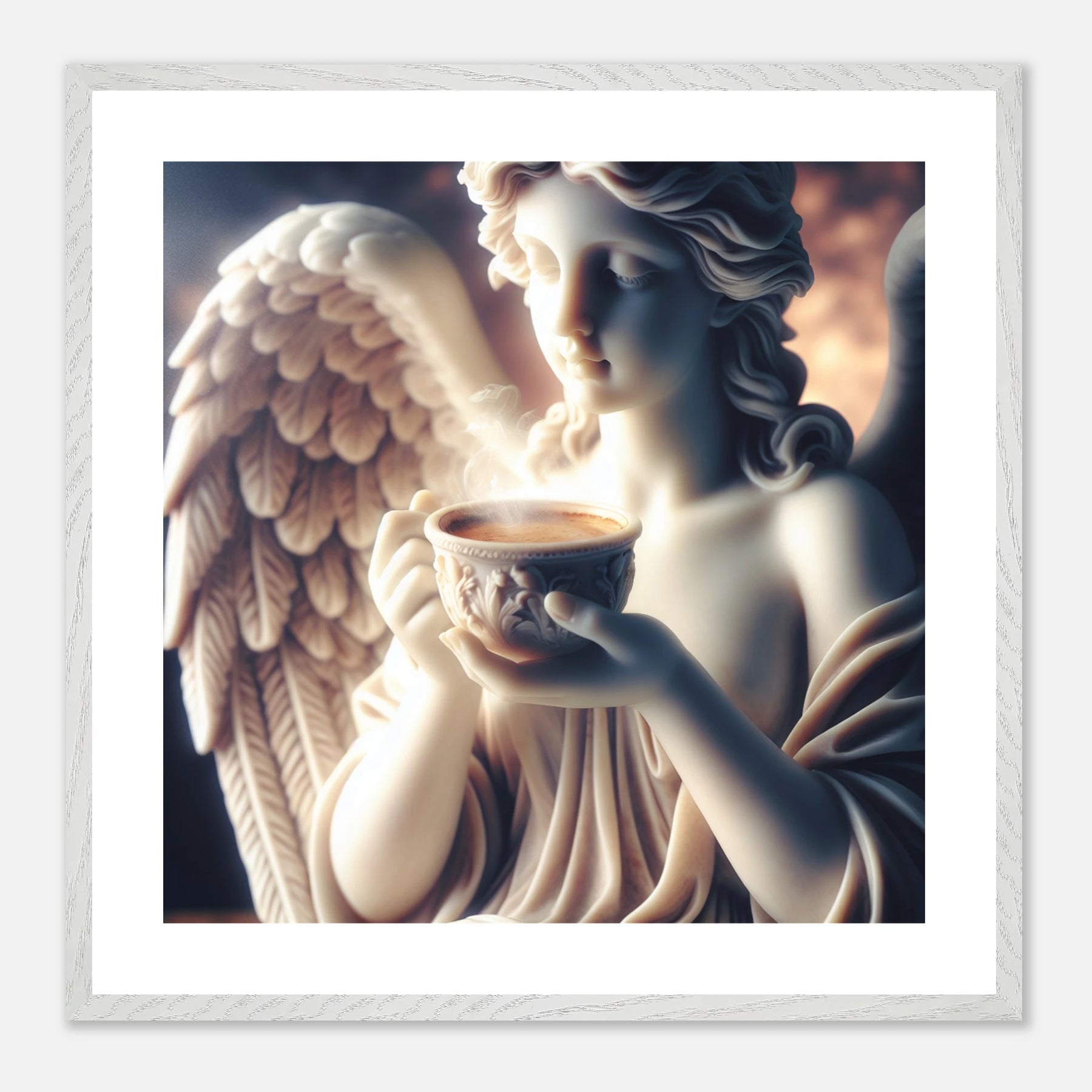 Premium Poster im Rahmen mit Marmorengel und heißen Kaffee – genussvolle moderne Ruhe & spirituelle Ästhetik für dein Zuhause | Dreaming Wings