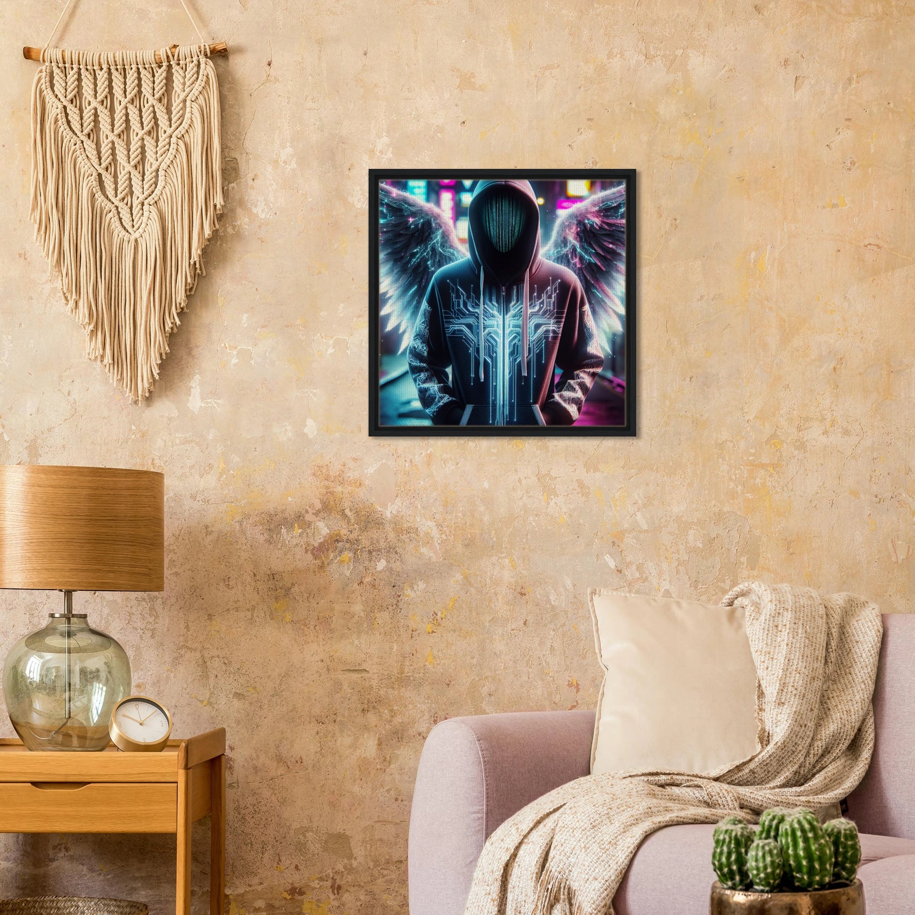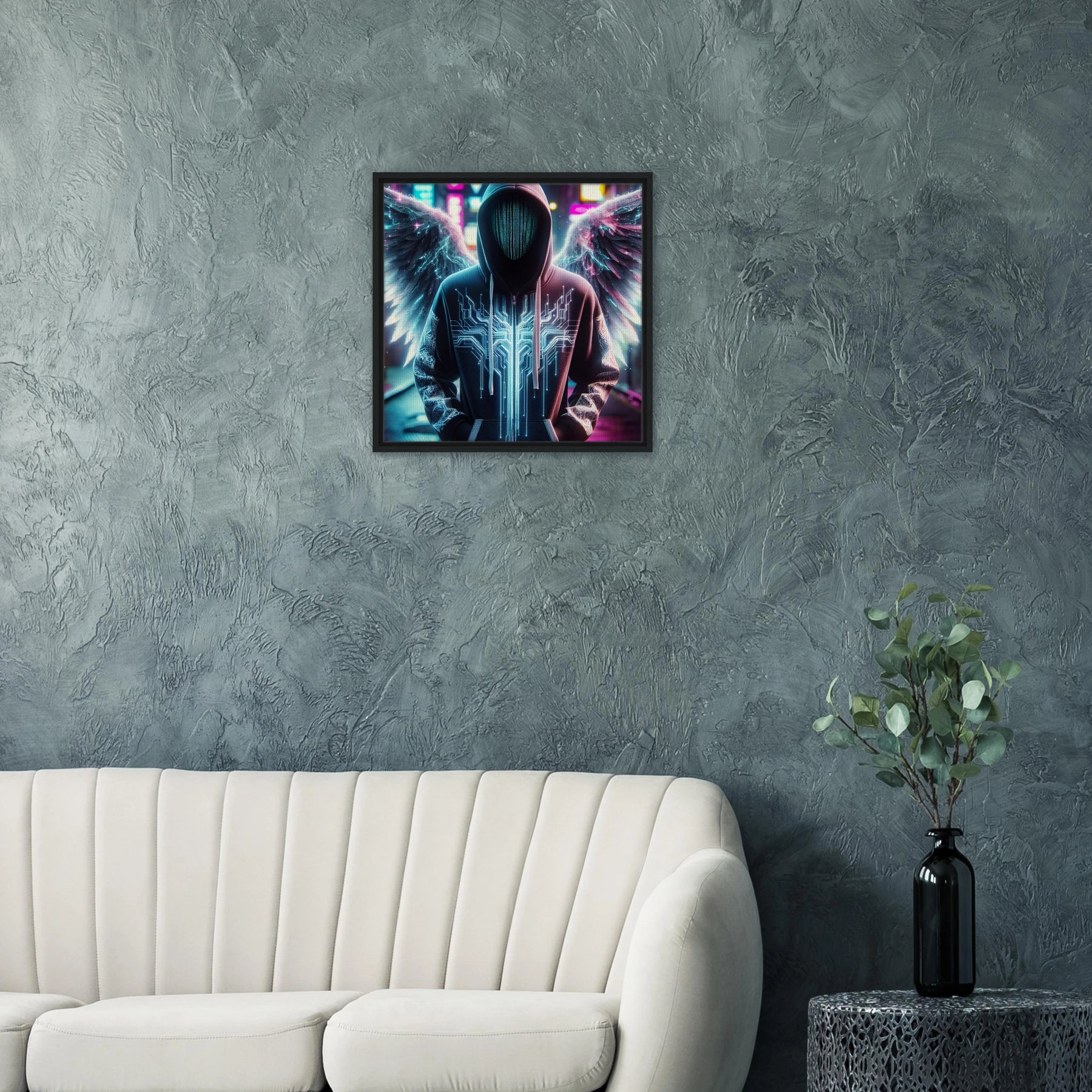 Diese gerahmte Leinwand zeigt einen Engel aus der Urban Angel-Serie – kraftvoll, ästhetisch und voller Tiefe. Die strukturierte Oberfläche bringt das Motiv besonders lebendig zur Geltung, der hochwertige Rahmen sorgt für eine elegante Galerie-Optik.