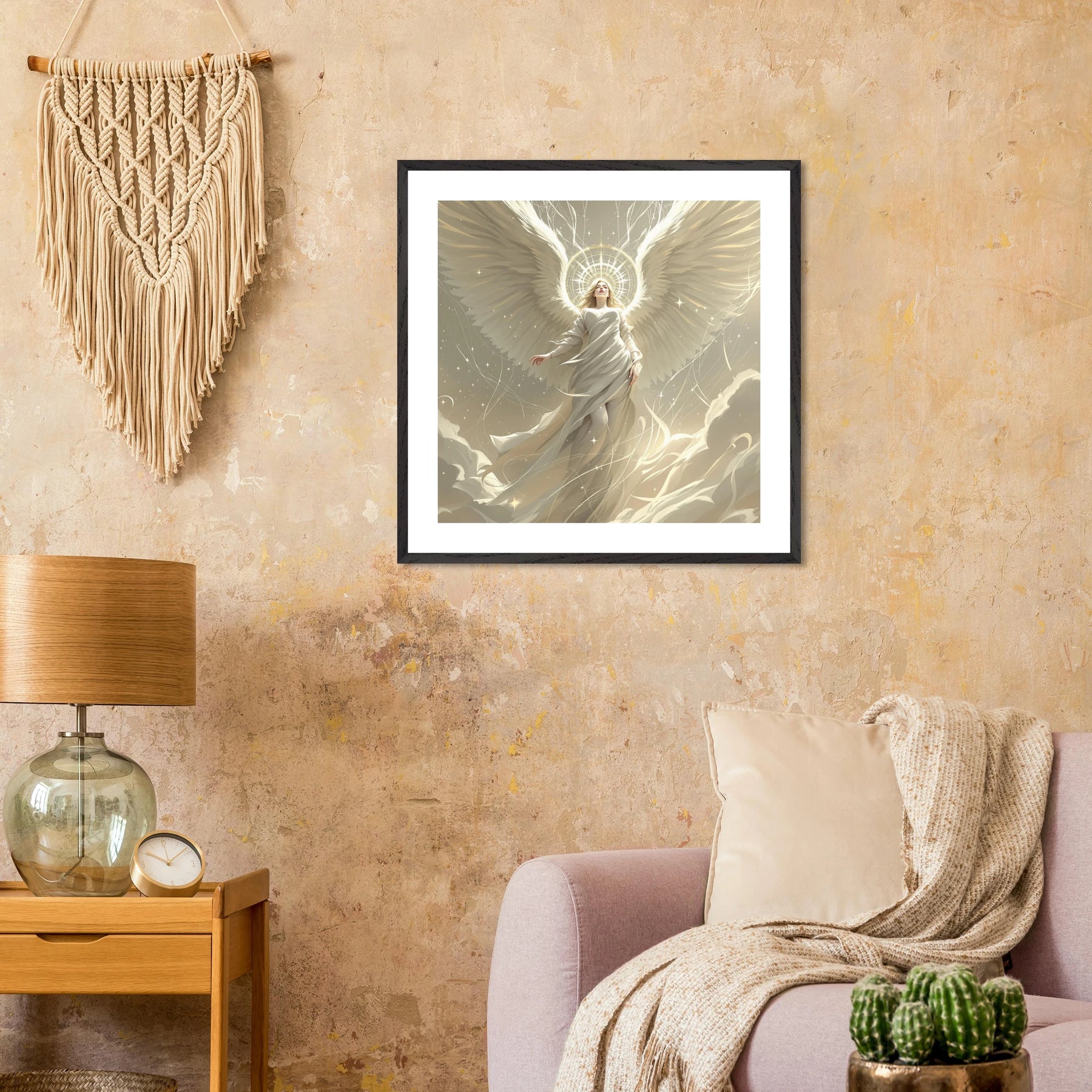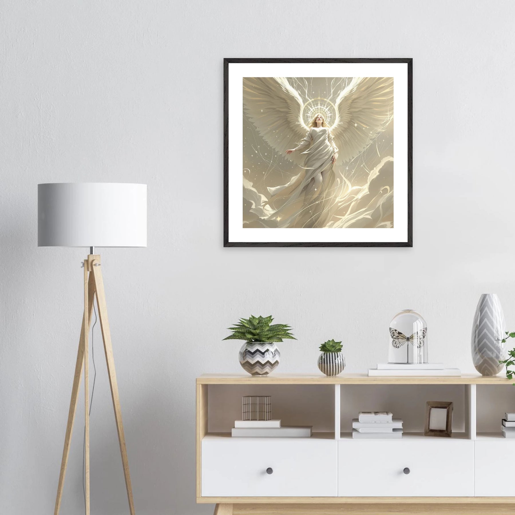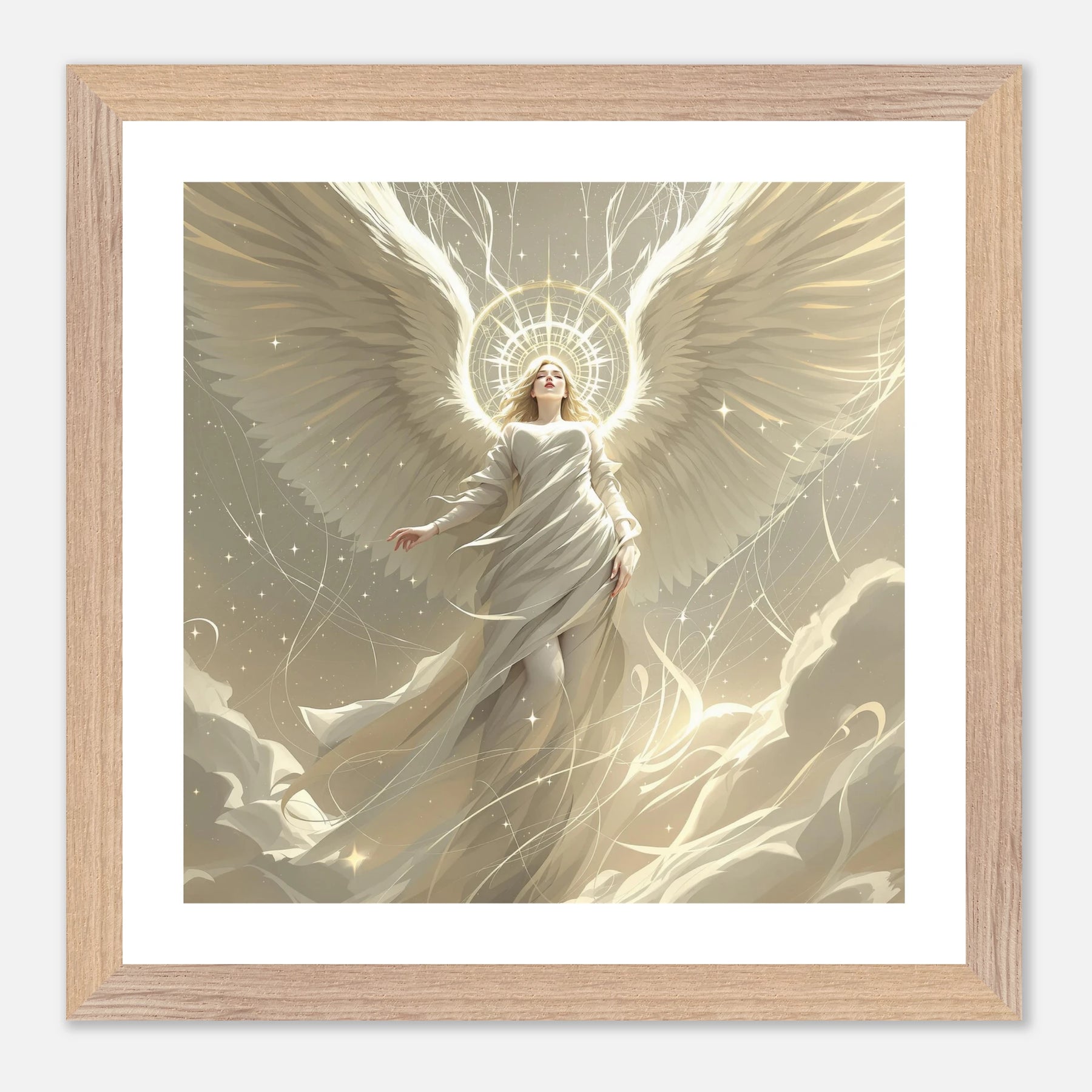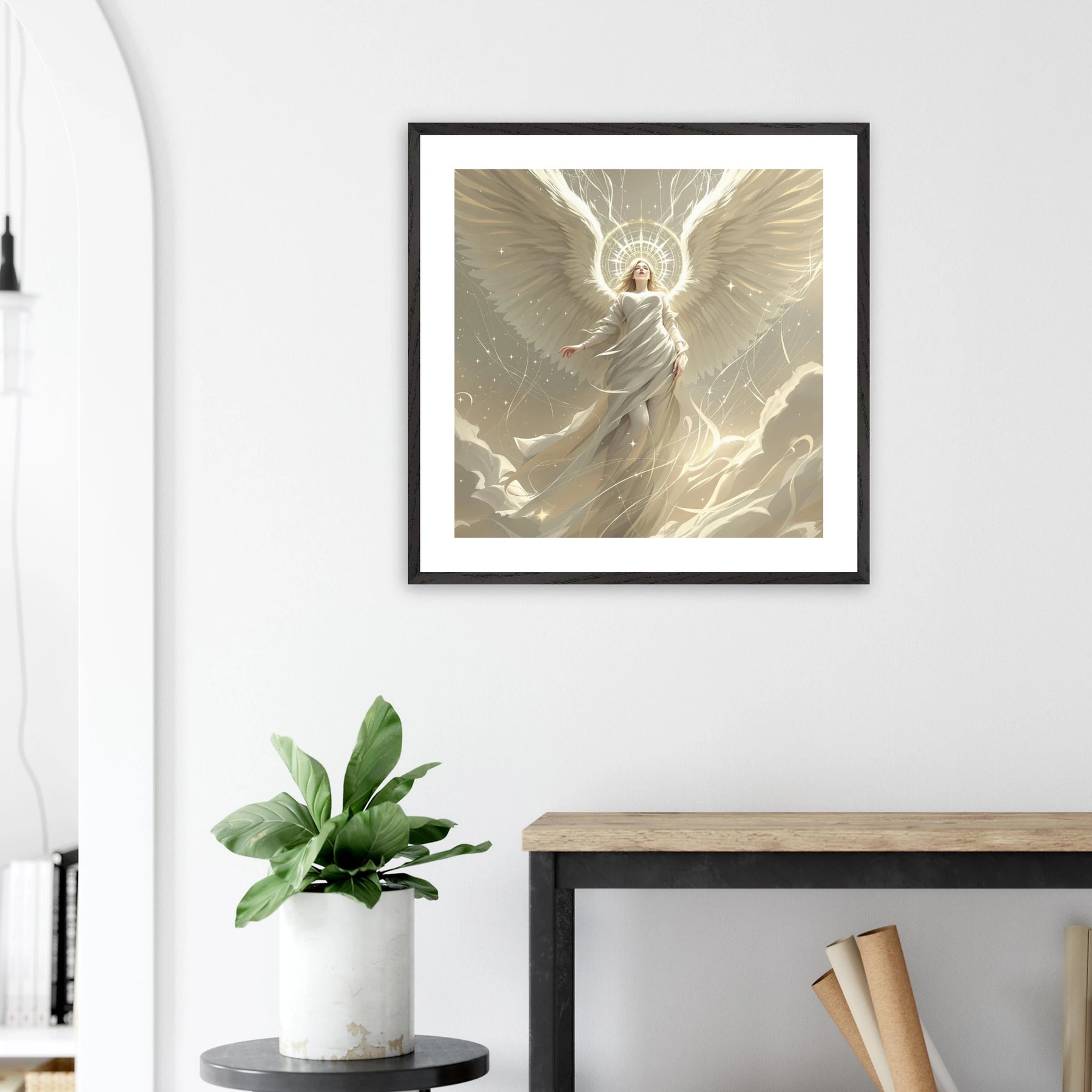 Dieses hochwertige Premium-Poster aus der Guardian Angel-Serie bringt Harmonie, Schutz und Licht in deinen Raum. Der elegante Holzrahmen unterstreicht das Motiv, während das matte Kunstpapier für ein ruhiges, hochwertiges Druckbild sorgt.