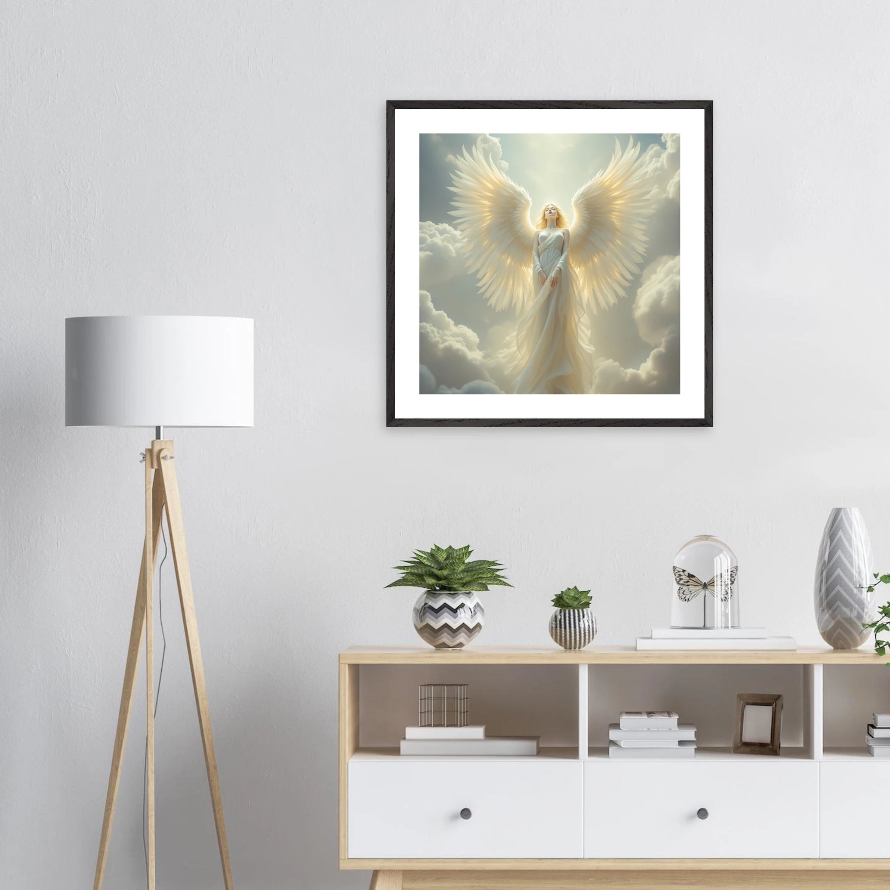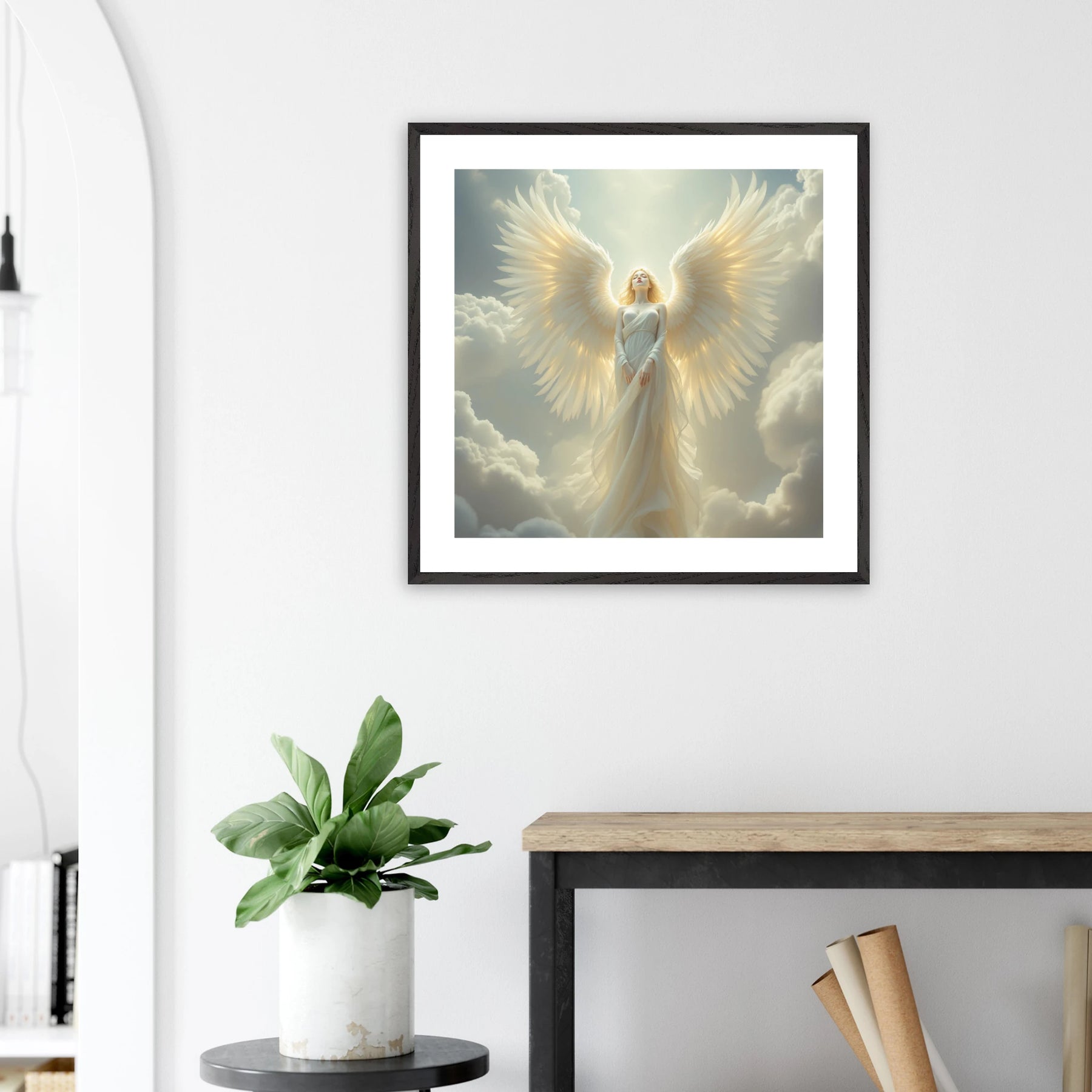 Dieses hochwertige Premium-Poster aus der Guardian Angel-Serie bringt Harmonie, Schutz und Licht in deinen Raum. Der elegante Holzrahmen unterstreicht das Motiv, während das matte Kunstpapier für ein ruhiges, hochwertiges Druckbild sorgt.